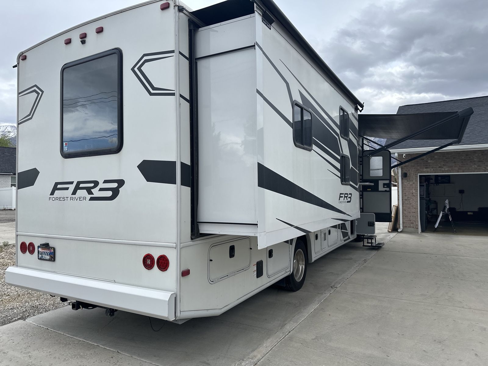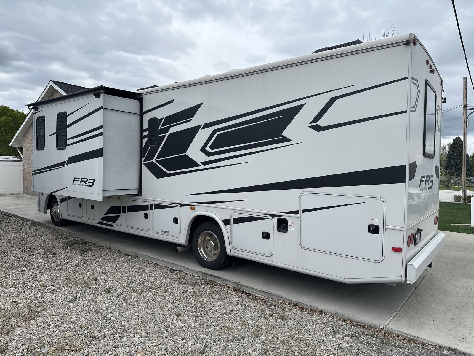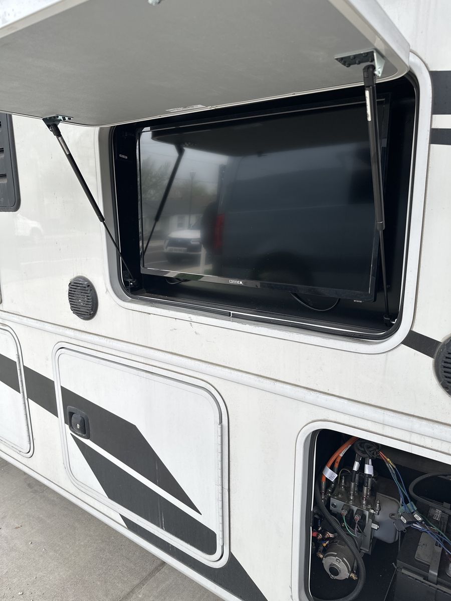 Selling our Motor Home. Lightly used. About 4 weeks total usage over the 5 years we have owned it. Everything functions and works on the motor home. Sleeps 10 and is 32 feet long. All devices have been done. It can tow if you are towing. We never towed anything. Has Apple car play. Outside TV for tailgating with speakers on the outside. Propane hook up outside. Has a generator, shower, inside and outside! Heating and 2 air conditioners!! Full kitchen with a large fridge and freezer. It has oven and 4 burner stove. Don’t miss out on this for spring and summer outdoor but luxury living. 4 total TV’s. Power awning with led lights. Automatic leveling system! No need to manually level this one! Full size RV king bed with mattress upgrade. Has a lot of nice things! Others on the market have 33,000 miles for almost couple thousand less than this one! I