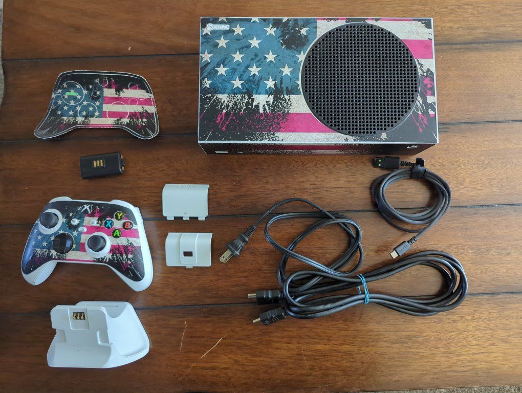 It has a American flag skin put on it that you can take off if wanted. I haven't been using it and could use the extra cash. Comes with remote, all needed cords, and if you want a charging station, but the rechargeable battery stopped working. Will take in consideration of trades of similar value. $250 obo
