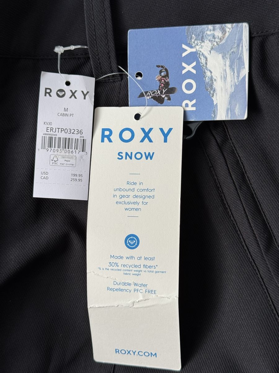 VenmoBrand new ladies “Cabin” snow ski snowboard shell pants by ROXY. Size medium. Slim fit. Black color. Waterproof with waist adjusters, multiple zipped front and back pockets, integrated gators, zippered vent panels at thighs, and zipper at cuff for easy fit over boots.
