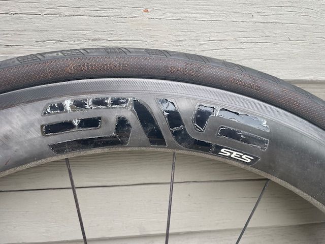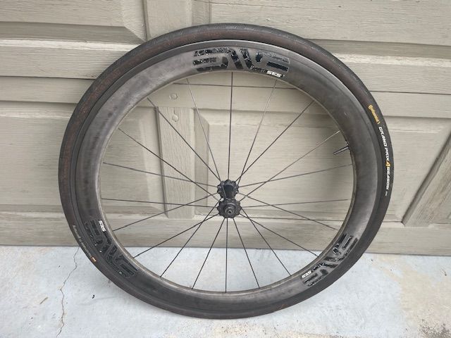 ApplePayThis is a 700c ENVE SES 4.5 carbon front clincher (rim brake) on ENVE hub. QR. 28mm Continental Grand Prix is in great shape.