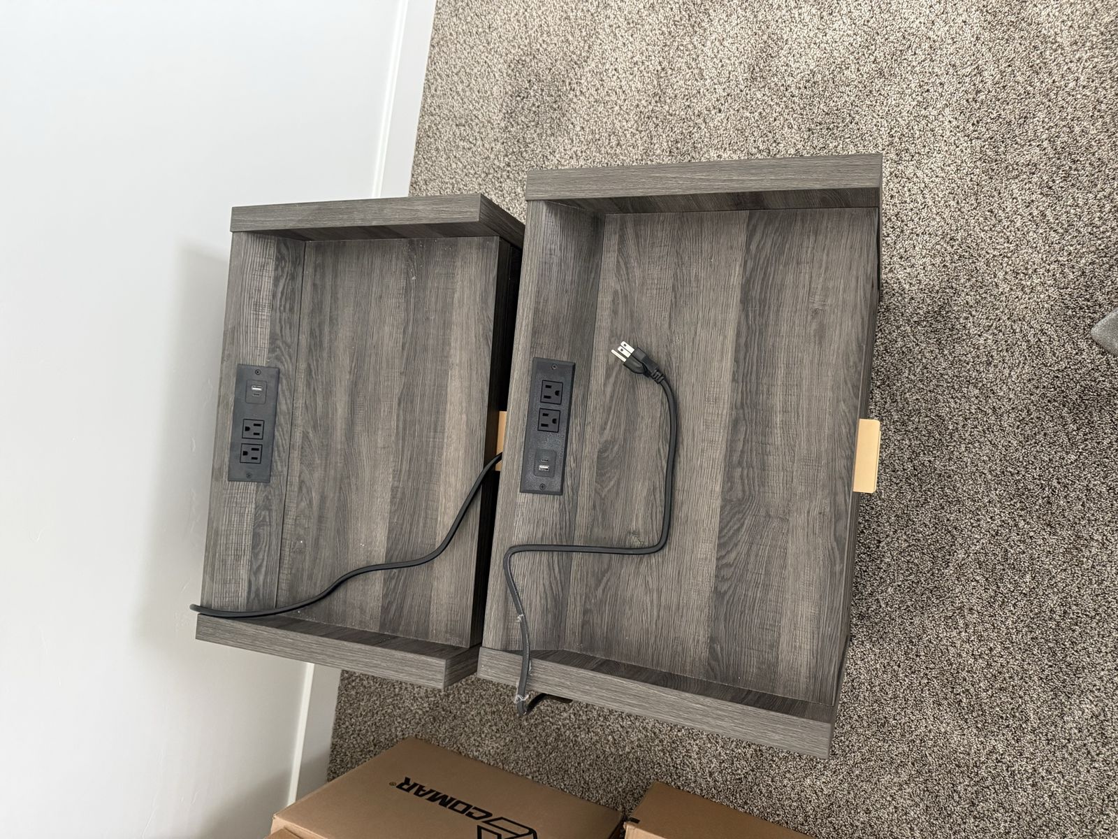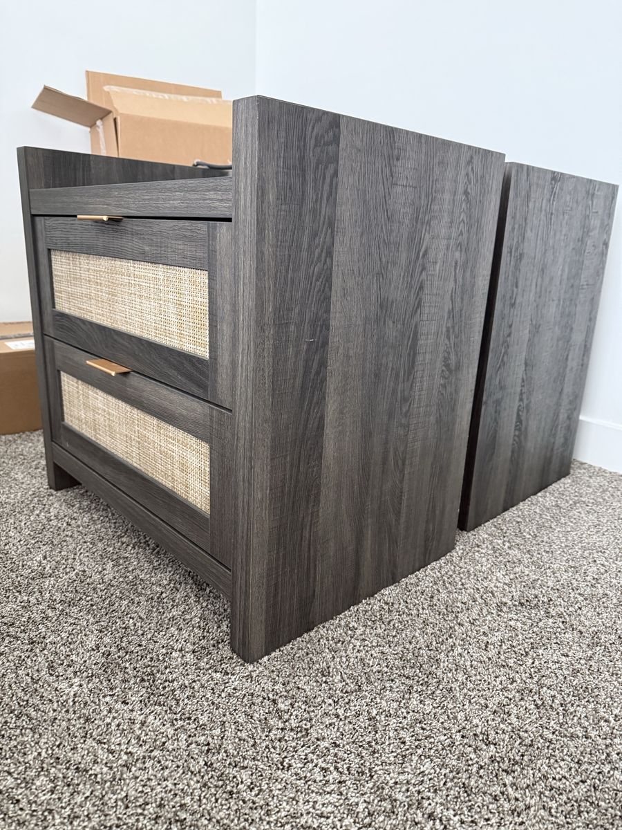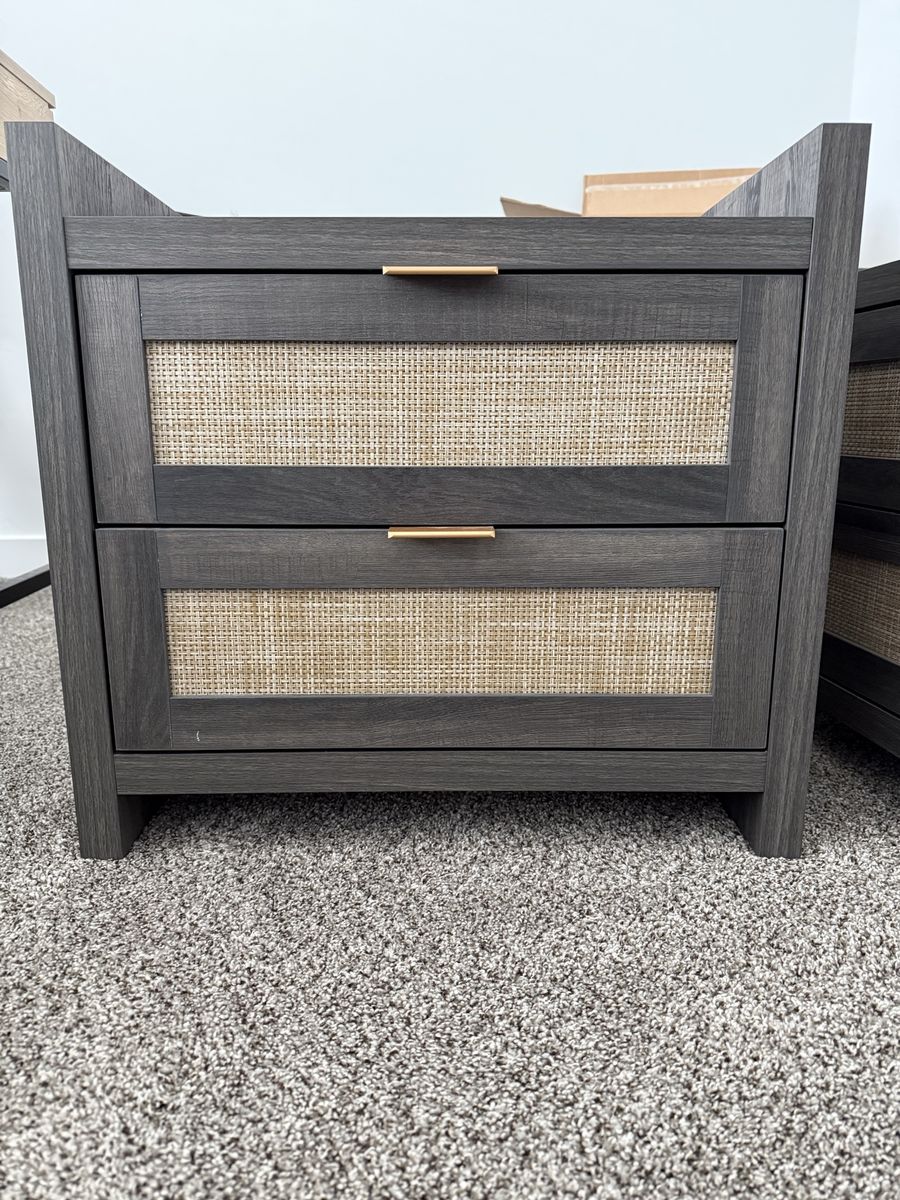 Matching night stands with power for charging. Two standard plugs, one usb, and one usb-c plug on each night stand. Two large drawers on each. Preferably sold as a set. $50 each or $75 for both