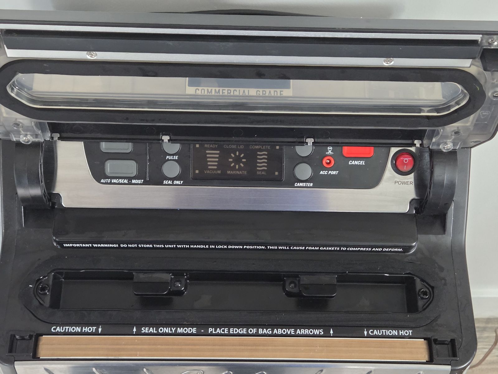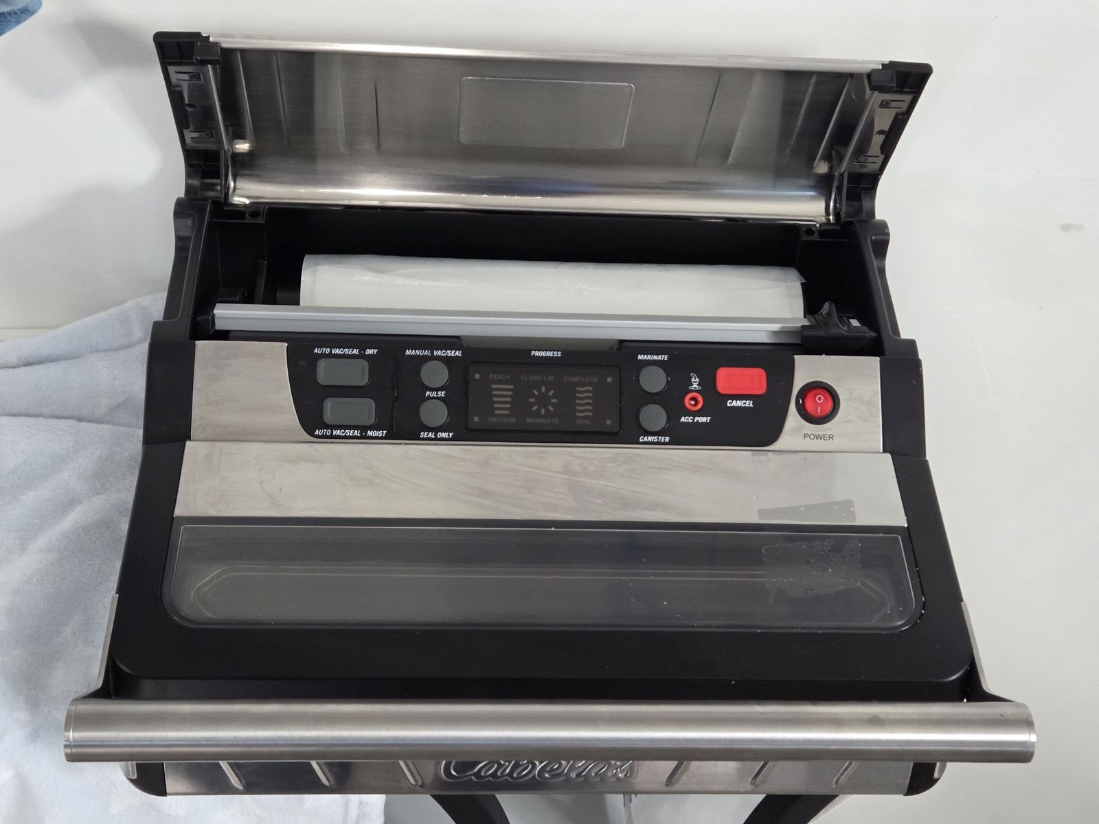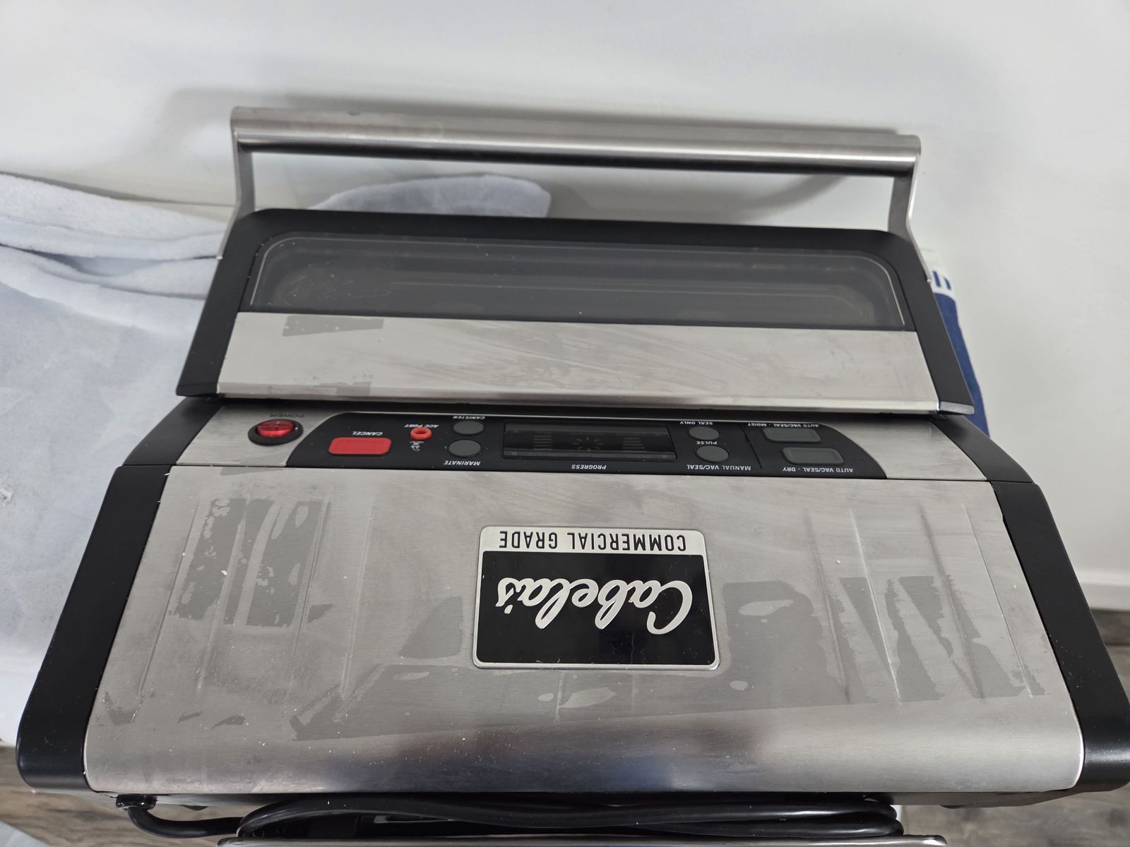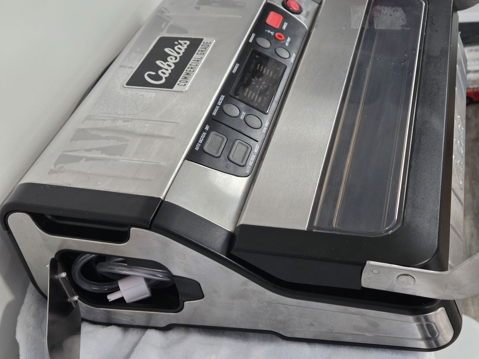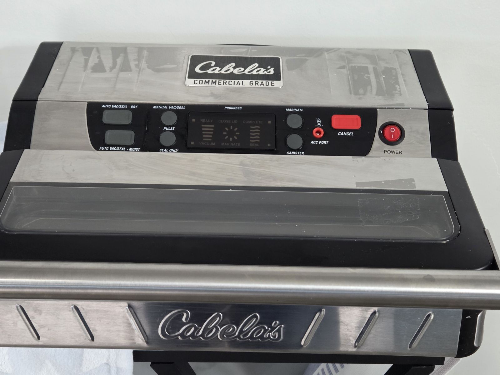 Cabela's Commercial-Grade Vacuum Sealer 12" PreOwned Only one time used. Cabela's Original Commercial Grade Cut To Size Vacuum Sealer Bag Roll included