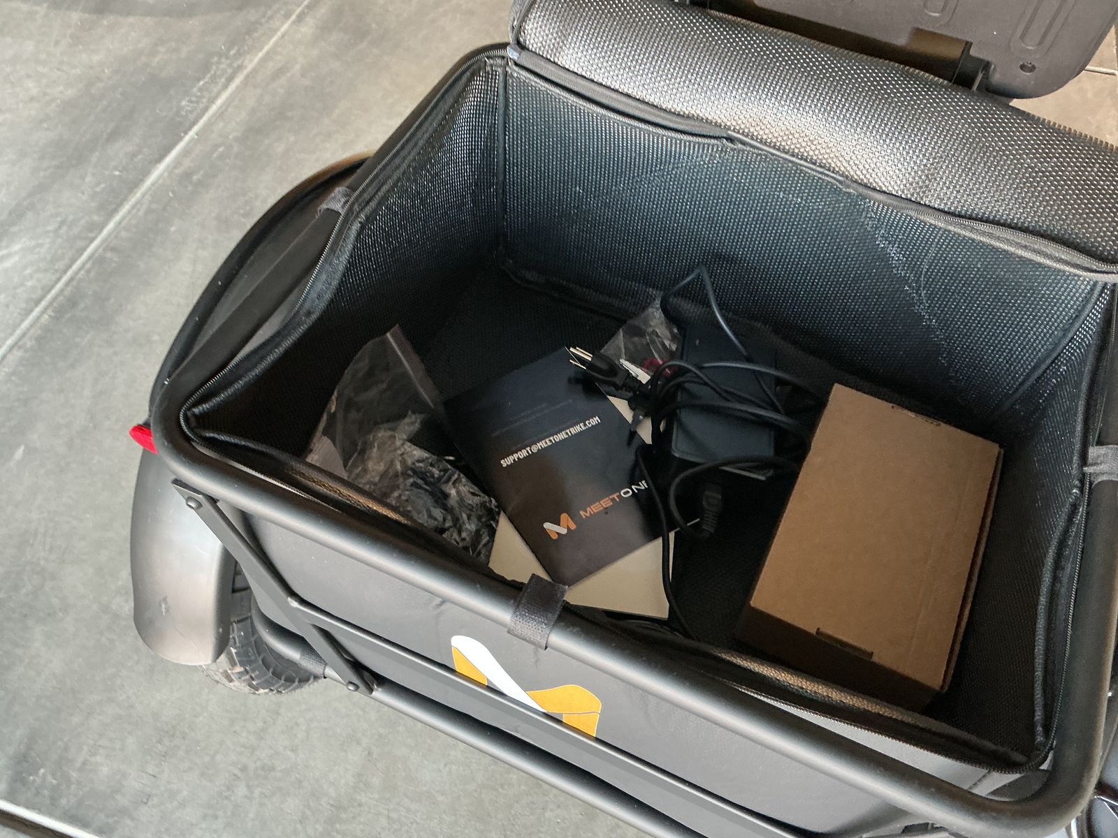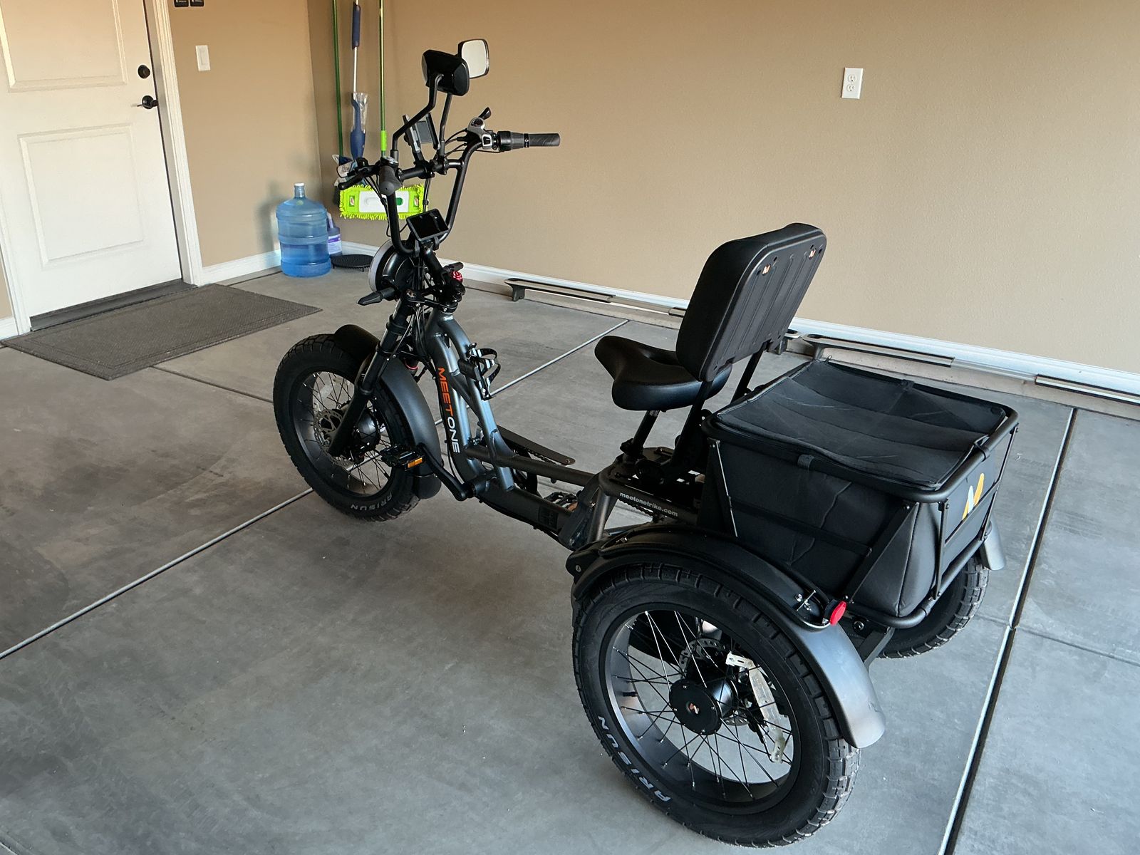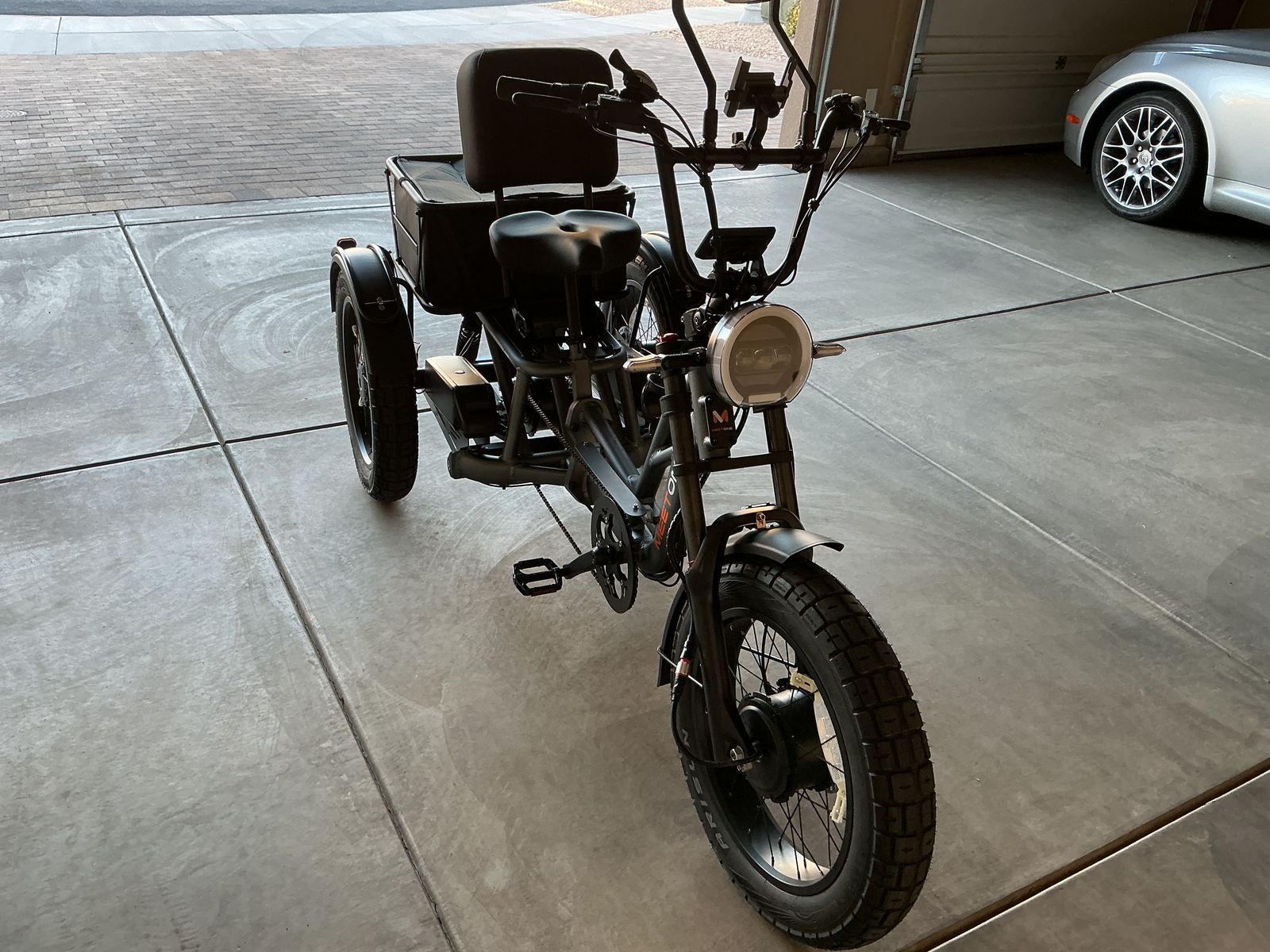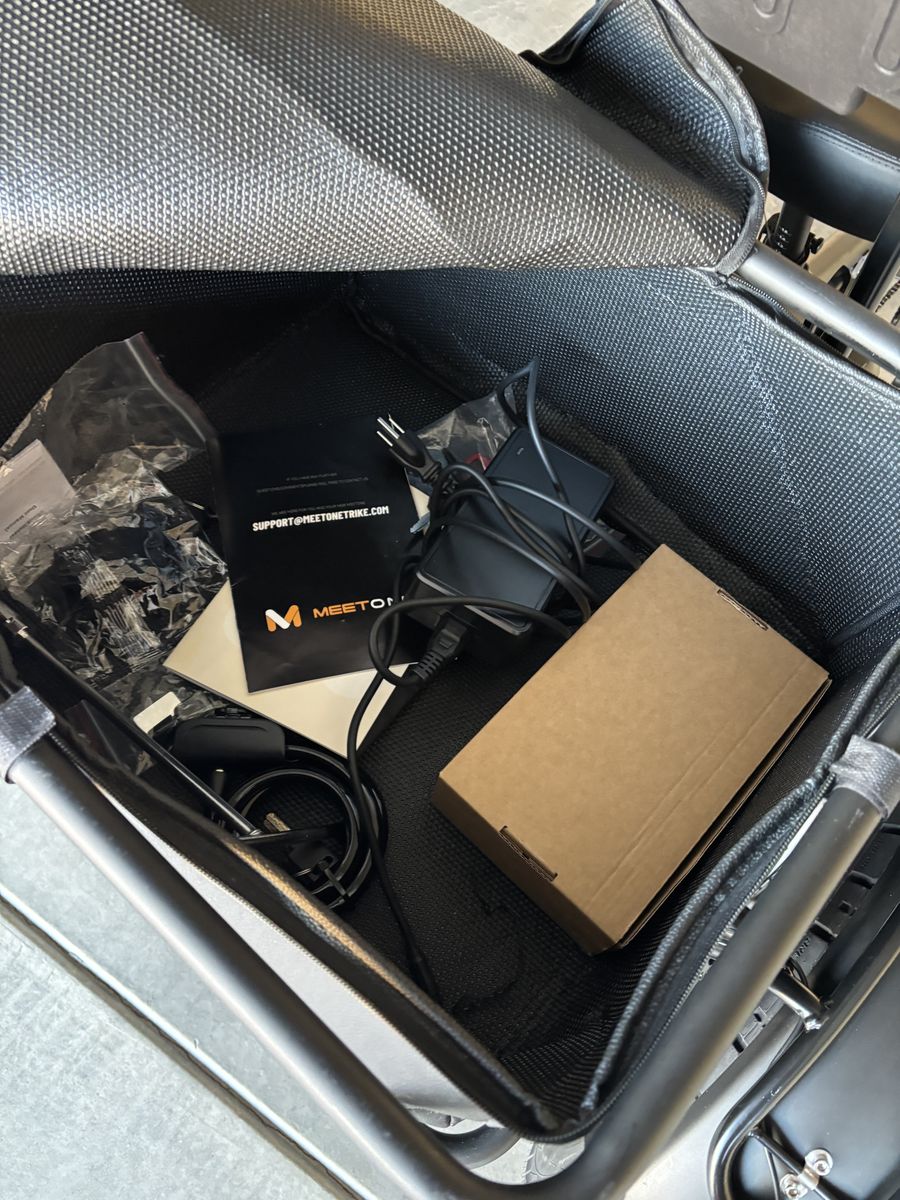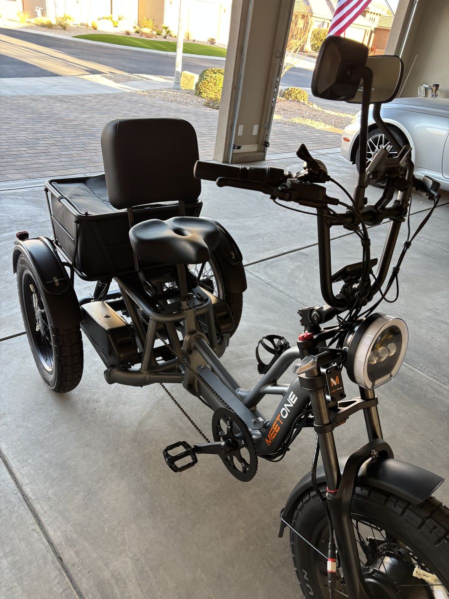 Venmomotor meet one electric trike, brand new! Has just 5 miles on it three speeds, seven gears, two batteries. Includes water bottle holder, cell phone holder. $3499