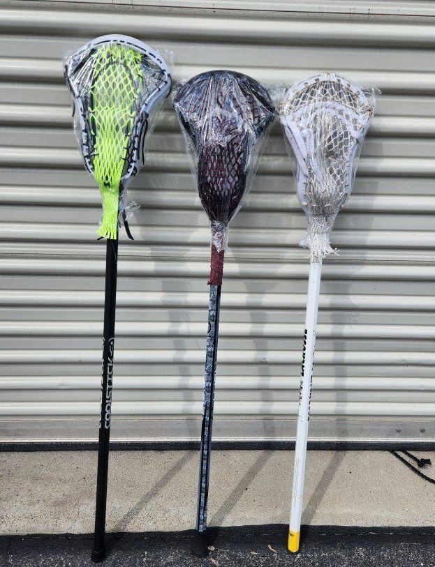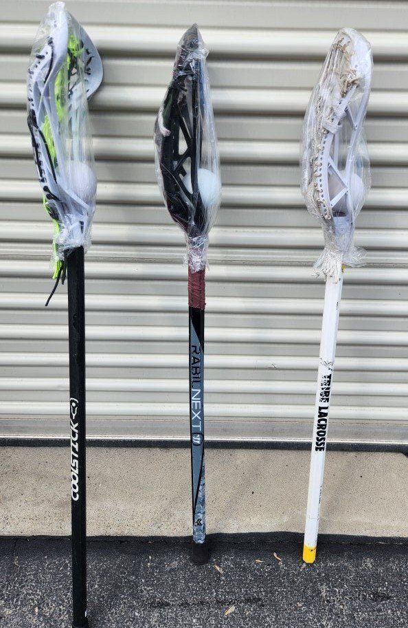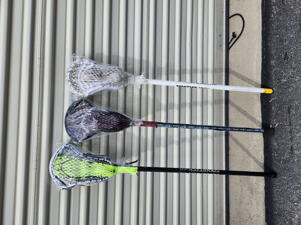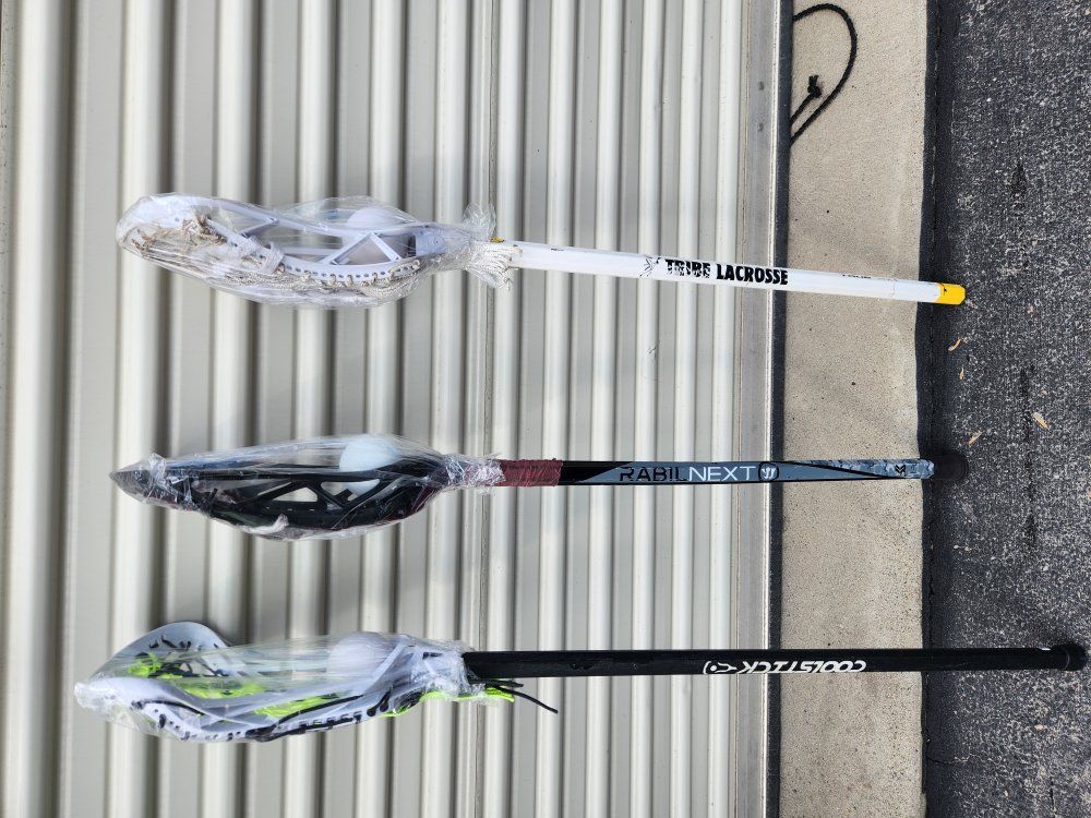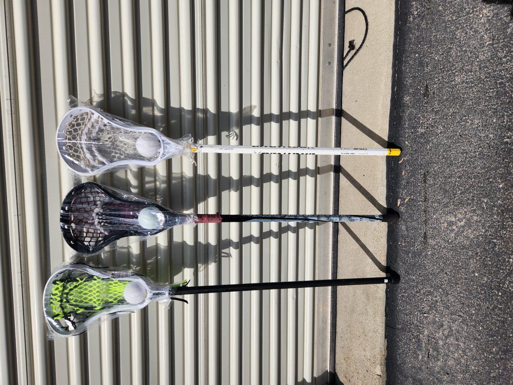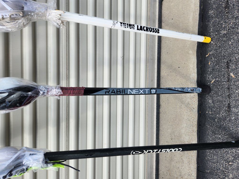 tribe lacrosse w/ball white head 7 1/2" x 12 1/2" total length - 40 1/2" good cond $35 ea