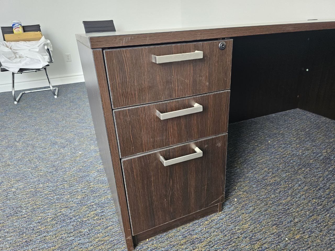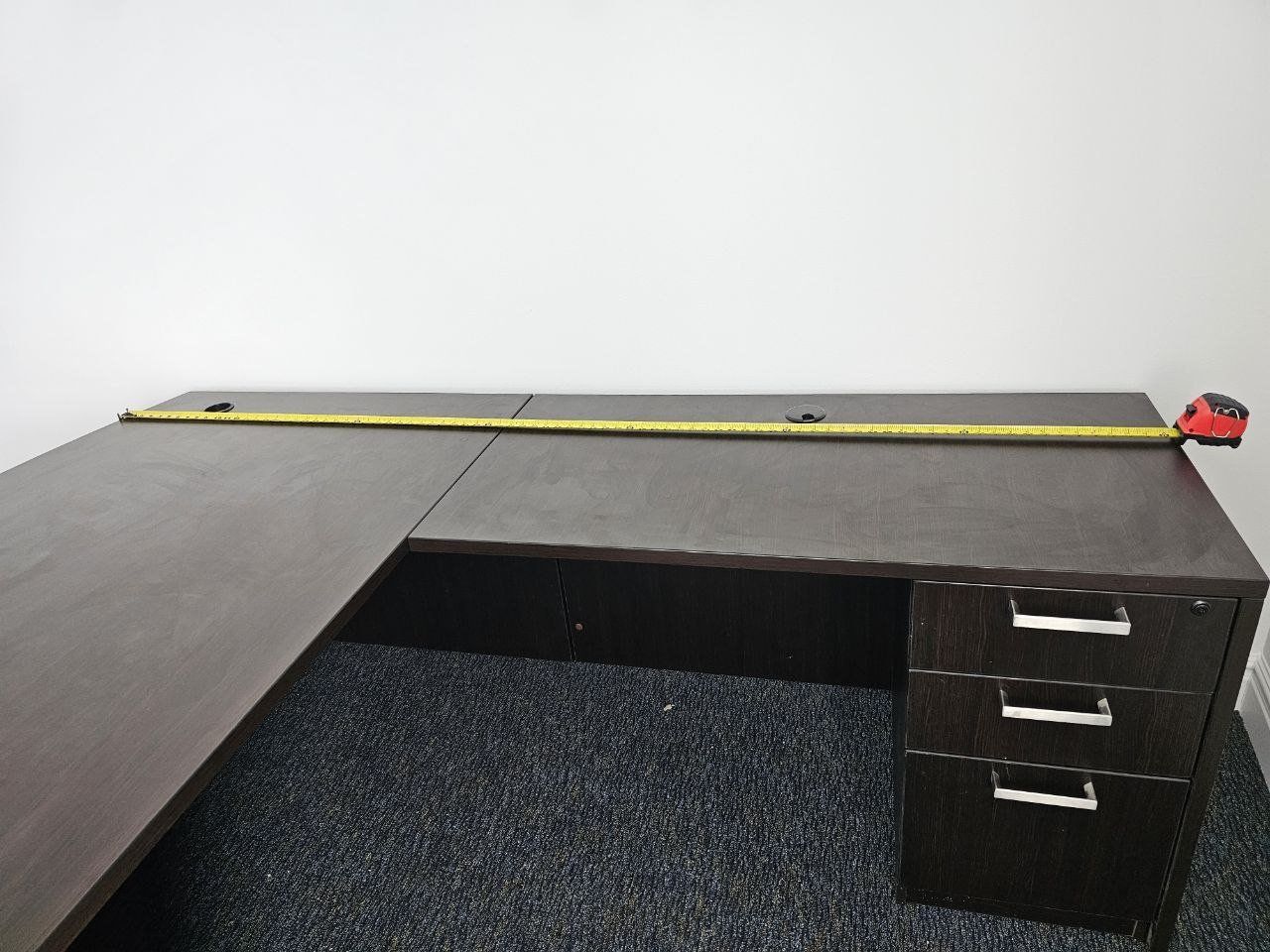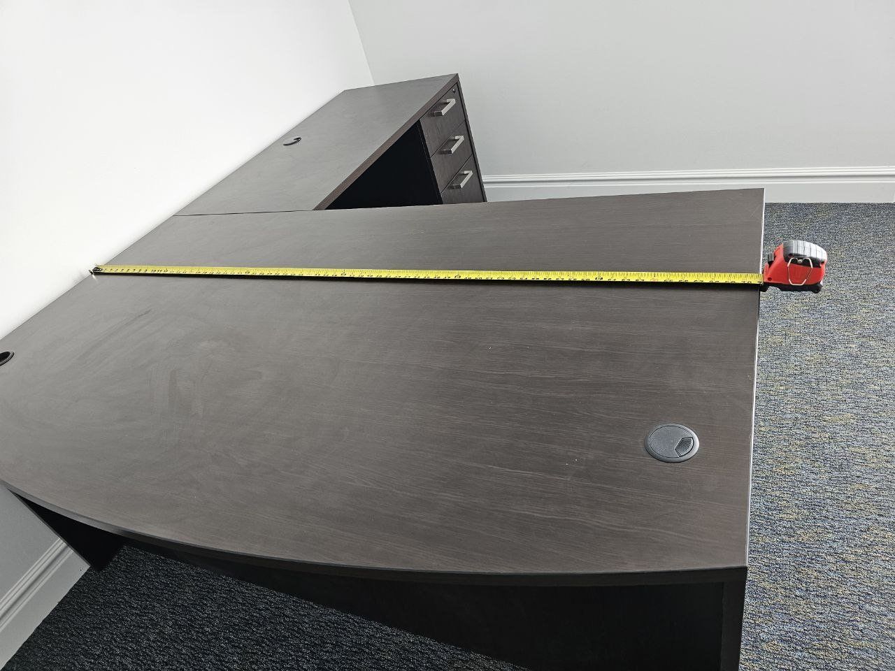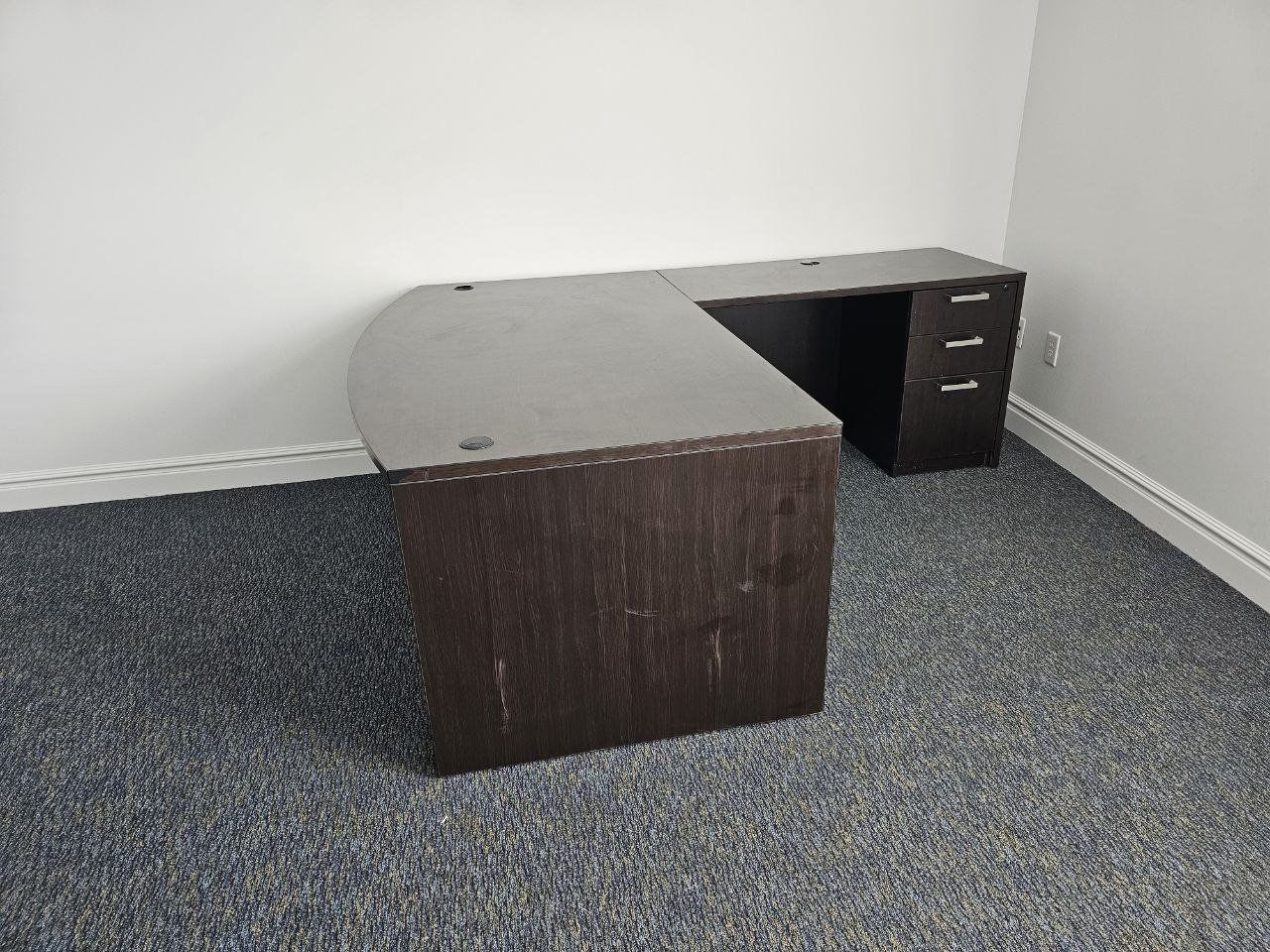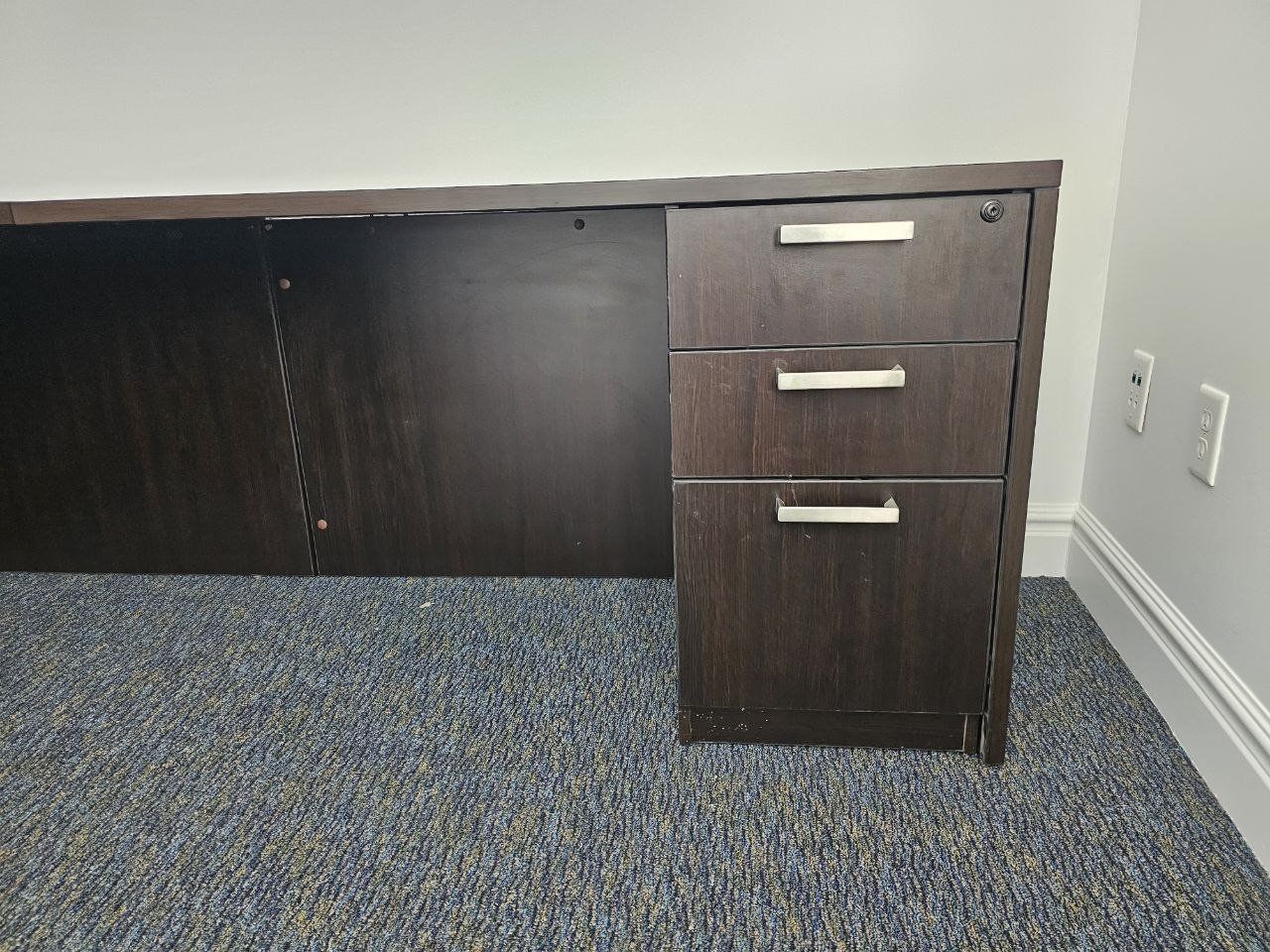 Venmoa large, dark wood desk, perfect for artistry, organization, or even just office use. it's very durable, it's nice wood. and heavy duty.