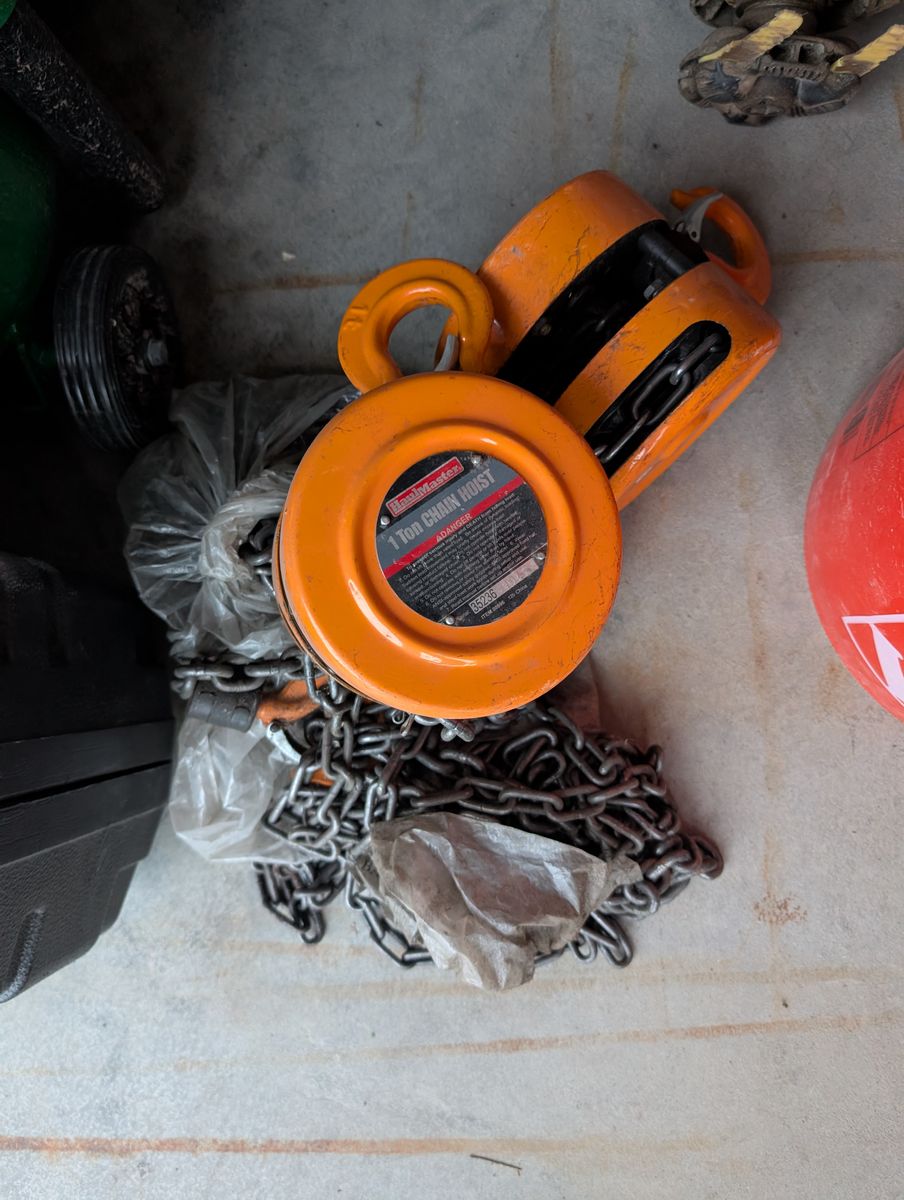 HaulMaster 1 ton manual chain hoists. Never used. These have been stored in my garage since purchase and are ready to go.