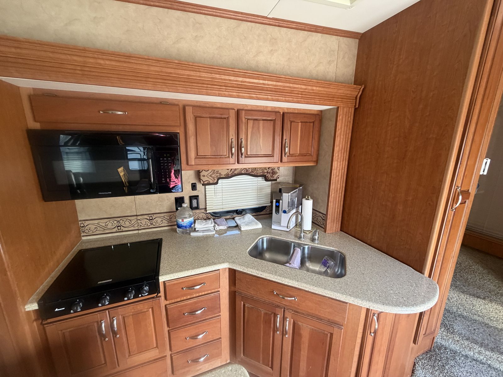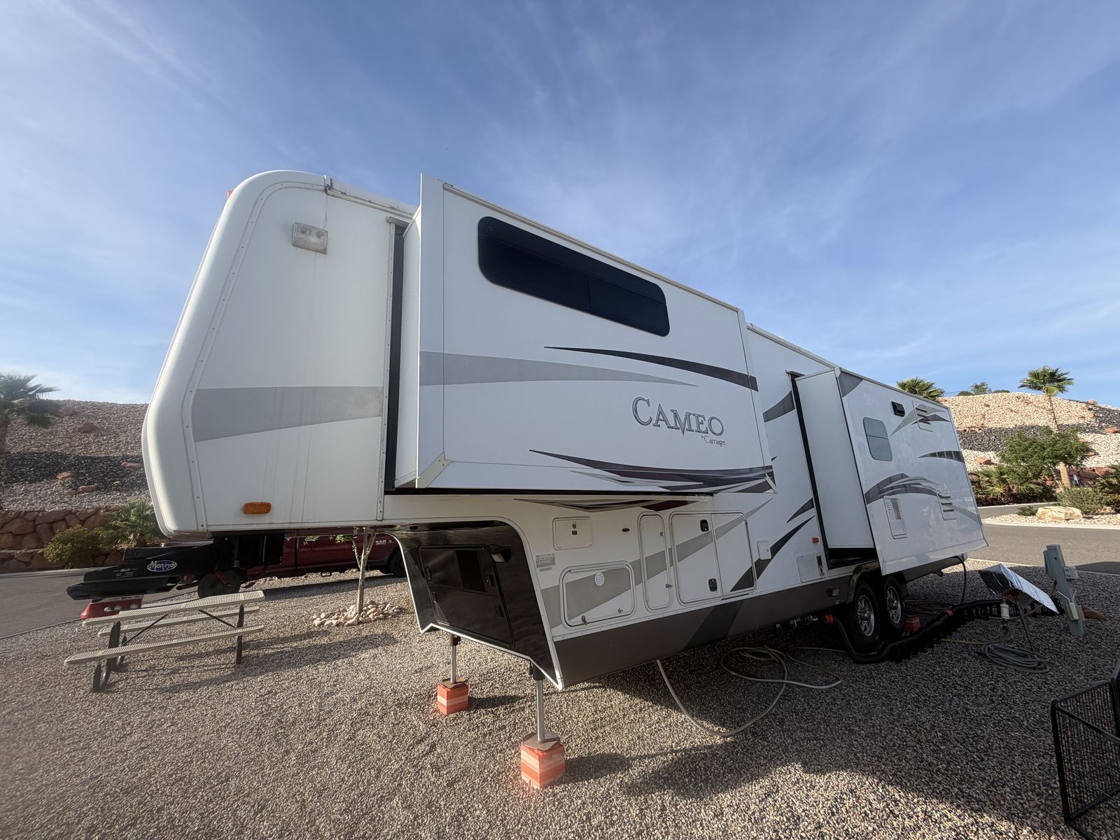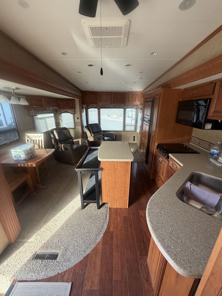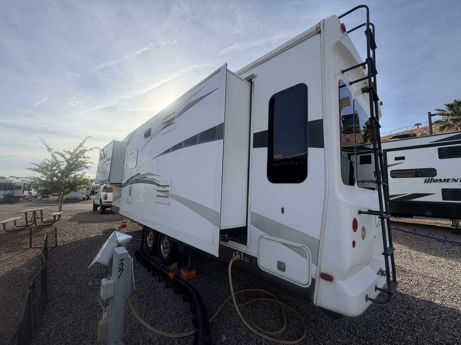 This has got to be one of the BEST BUILT 5th wheels EVER!! A true couples coach with Dual A/C washer dryer built in vacuum king size bed porcelain toilet NICE SIZE shower tons of storage inside and underneath! It is plumbed foran onboard generator new cooling unit 7.5 gallon propane tanks 42" tv with surround sound 2 easy chair recliners "BIGFOOT" auto level with individual rear controls outside shower and power awning. THIS IS A VERY CLEAN NICE trailer. If you are needing one for the mountain make sure to check this out! FINANCING AVAIL ALL TRADES considered