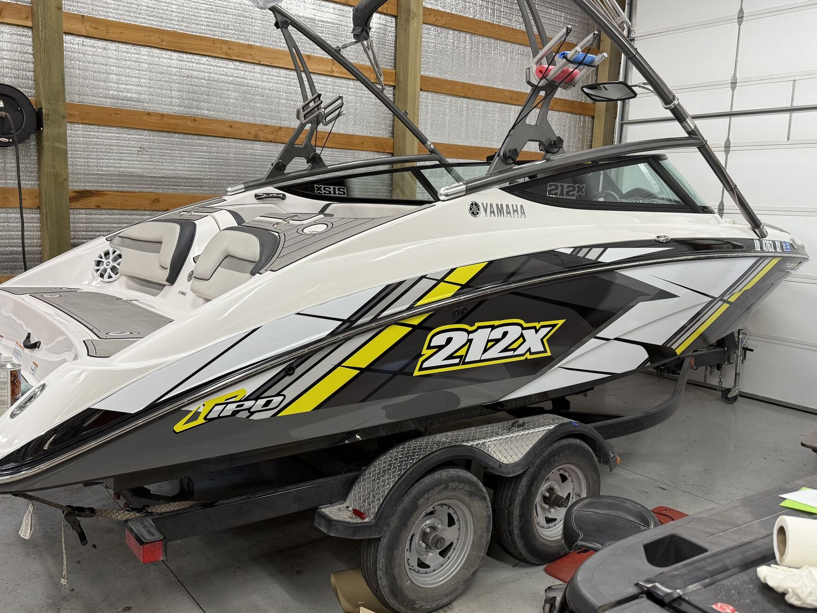 These are super hard to find. We looked for this exact boat for nearly two years before finding it. This is not your average 212x. This boat has been meticulously babied. It is garage kept only. It has been used and is not perfect, but nearly. There are a ton of upgrades that are not standard and we have put thousands into making it great. It has the Perfect pass GPS system (set your speed for your rider and go) ($1,300), upgraded stereo with all new speakers, tower speakers, amp, a second deep cycle battery system for all day music. ($1500) We have re-propped the jets for high altitude. ($3,000) Twin inline 4cylinder engines have 320hp and it gets up and on plane in about 3-4seconds. Cruises at 42MPH at Flamming George. Gets fantastic mileage. We can play for two to three days straight and not have to fill up. 50gal fuel tank. It has the Thrust vector fins with the lateral steering enhancement for easier maneuvering at the dock. There are upgraded ballast bags and pumps. It has two wake surfing fins to dial in the wave from the jet. (these were NOT cheap)($1500) We have placed non-slip decking throughout.($500) It was just wrapped at the end of last season with a one-off wrap. ($1800) There won’t be another boat out there with the same one. It’s a real eye catcher and pulls comments everywhere we go. Comes with both the water proof travel cover and a winter storage cover. There is a bow keel guard for beaching and not tearing up the bottom.($300) Trailer has brand new tires just put on.($400) They haven’t even seen the road yet. Has a spare up front already. Comes with the built in ballast from the factory plus we have added three more Fat sack bags and high speed pump for dialing in the wake for surfing ($1500+) Folding tongue gives you 3’ extra space in the garage. Has hydraulic assist brakes on the trailer. We don’t need to sell this boat. We are only thinking about getting a bigger one because our family size is growing and we need the extra seating capacity. You won’t find another 212x like this. Boat is still in winter storage, so I’m going to update the hours (around 300) and interior pics as soon as I can. Boat is located in Soda Springs, ID. Asking $52,000