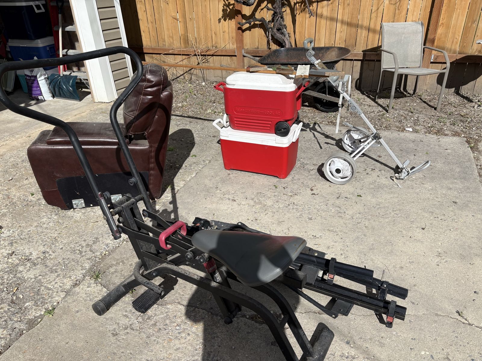 Looking to clear out some items in garage. Coolers, exercise stuff, and home furnishings.