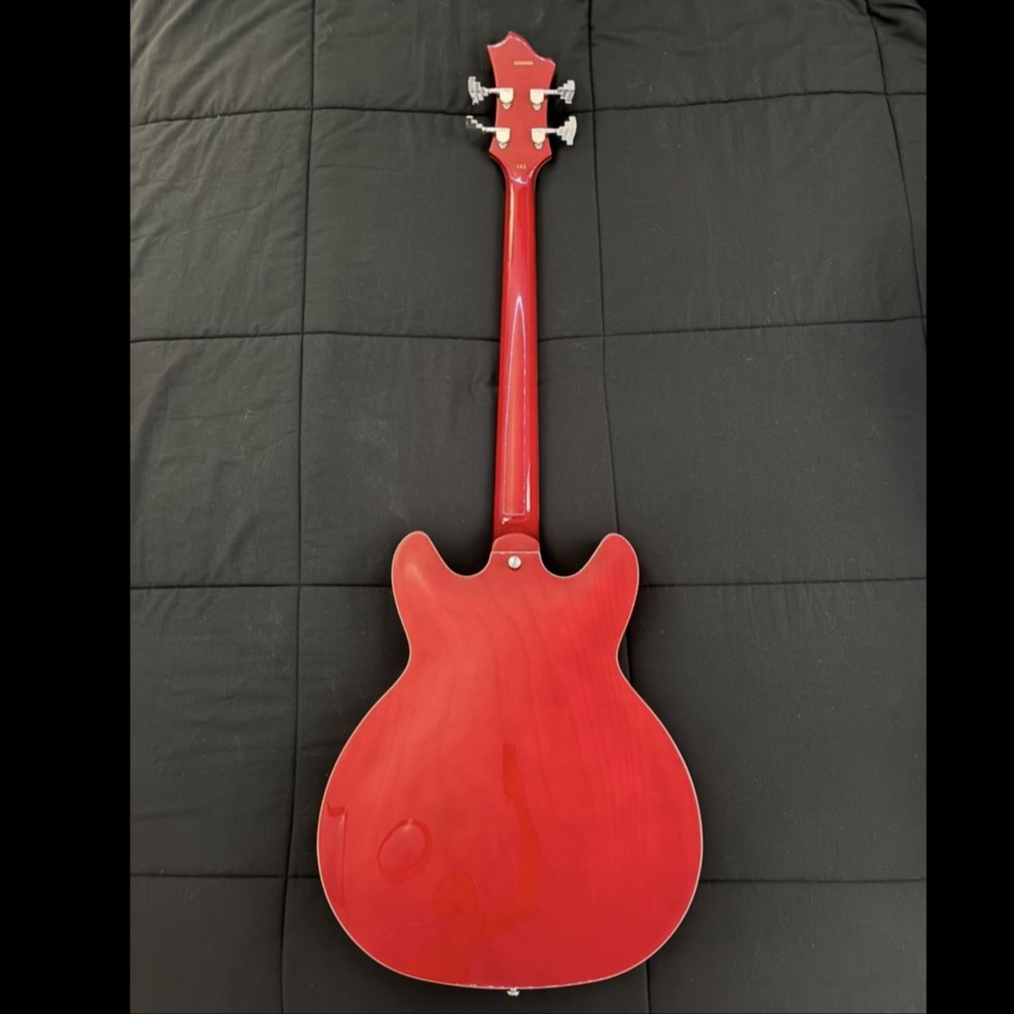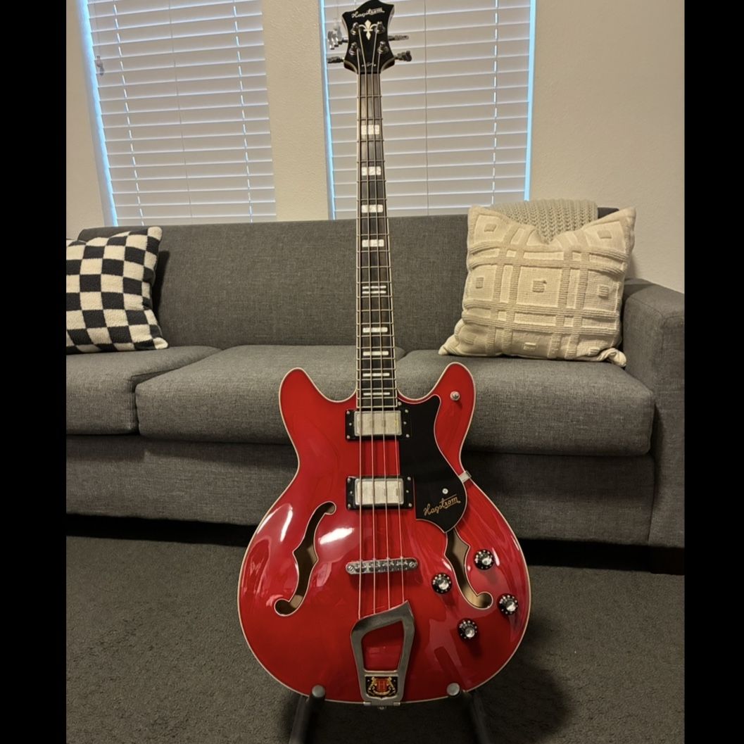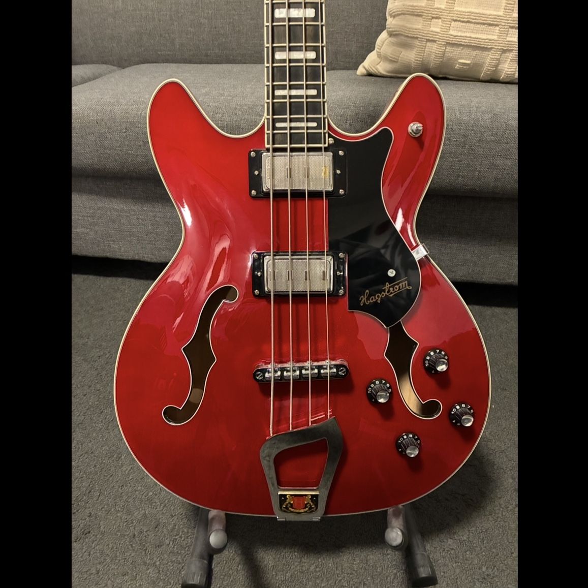VenmoBeautiful cherry colored Hagstrom Viking Bass. Usually sells for $1400 new, and around $700 used, but selling for $500 because of a minor cosmetic fault that can be seen on the upper pickup in the last photo. Called guitar center, and it is completely cosmetic. Other than that it is perfect.