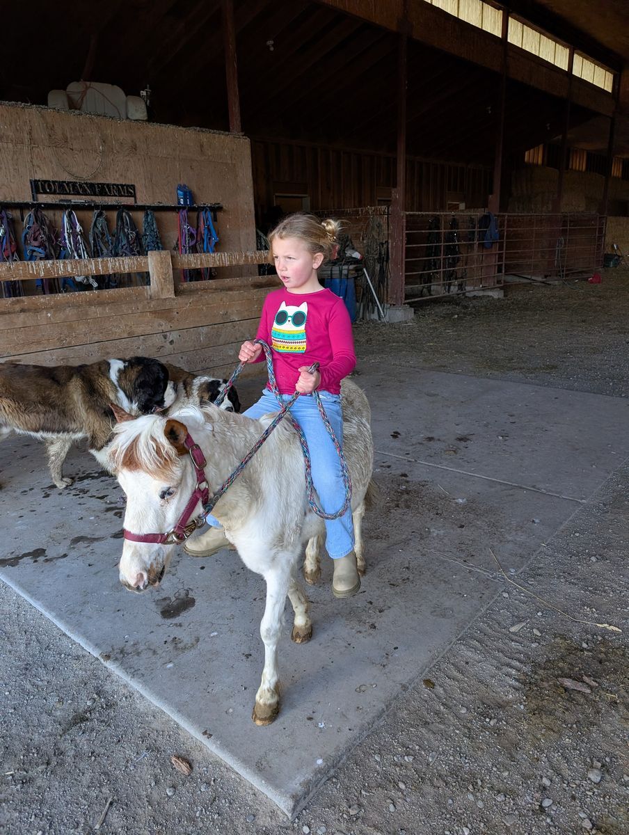 My little 5 year old rides this pony bareback with a halter and drives it all by herself. It's super sweet and broke! Amish trained.