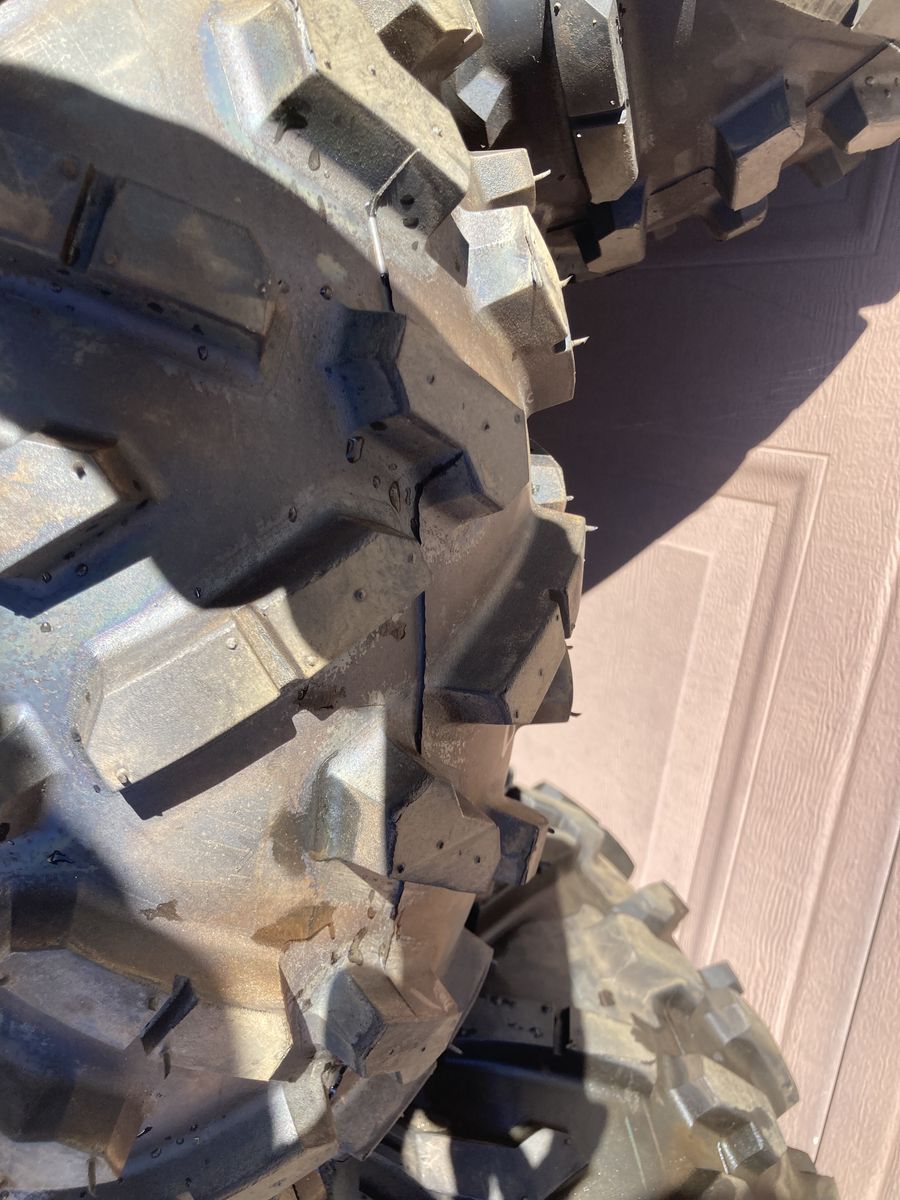 Came stock on my ride, swaped out immediatly after arriving home from dealership. they have 1 mile on them. Brand New just stored for a couple years. 2 front 28x9.00-14 & 2 rear 28x11.00-14, Bighorn tires, still have knobbys on the tread. Willing to seperate. 400 just tires or just wheels