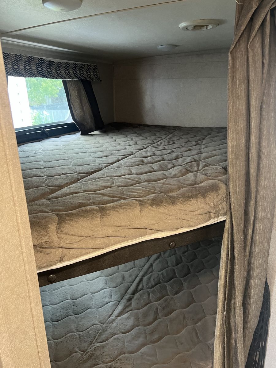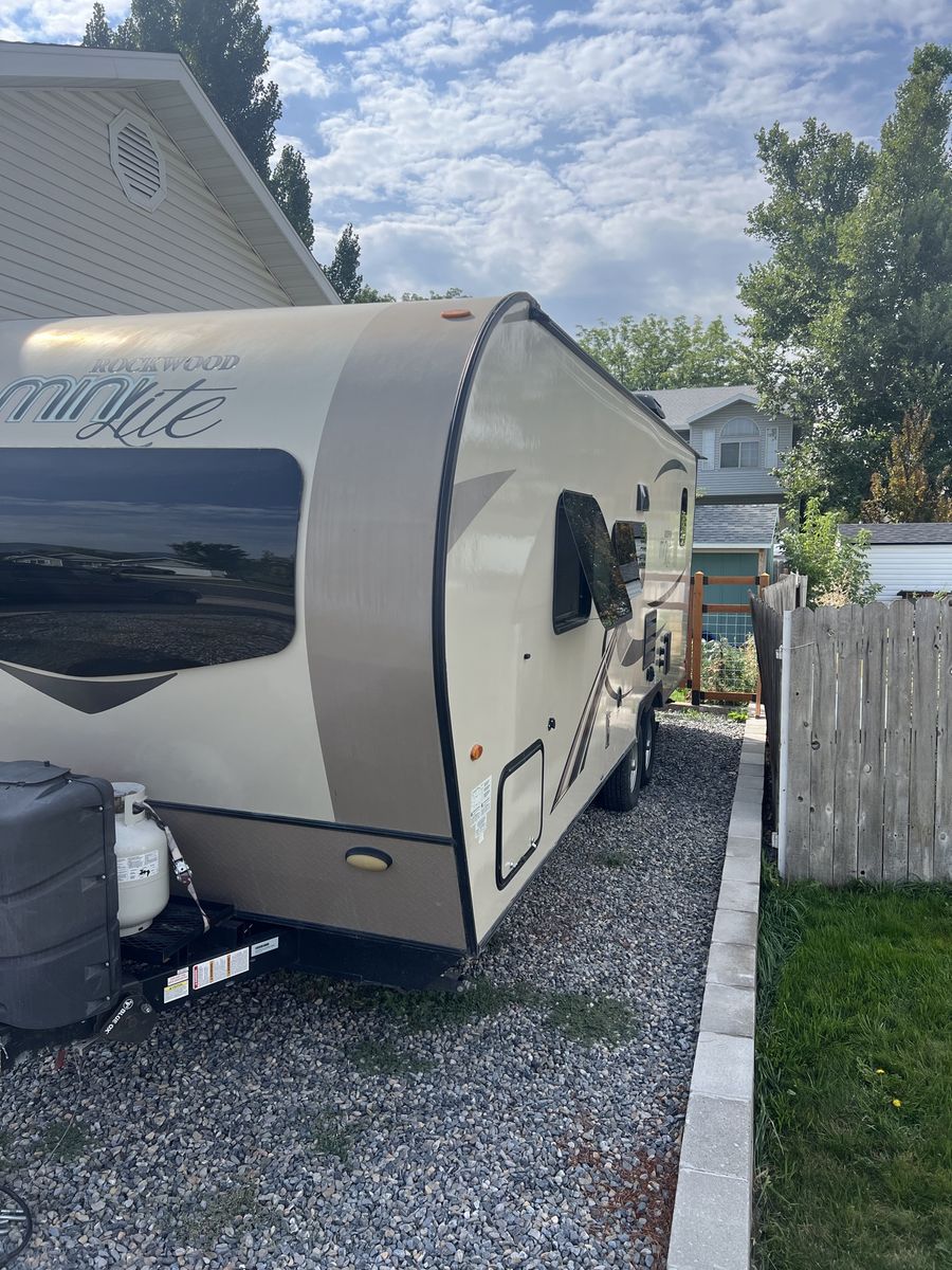 2018 Rockwood Mini Lite 2508 bunkhouse in clean, well-maintained condition with a professionally installed Victron electrical system and 200Ah lithium battery, making it a strong off-grid capable camper. This is a lightweight, half-ton towable trailer with a great family layout including double-over-double bunks, a front Murphy bed that converts to a sofa, and a dinette that also converts to a bed, comfortably sleeping 6–8. The unit features a full bathroom with tub/shower, power awning, A/C, heat, refrigerator, stove, and microwave. The no-slide design keeps the trailer lighter, simpler, and more reliable—especially for off-grid use.