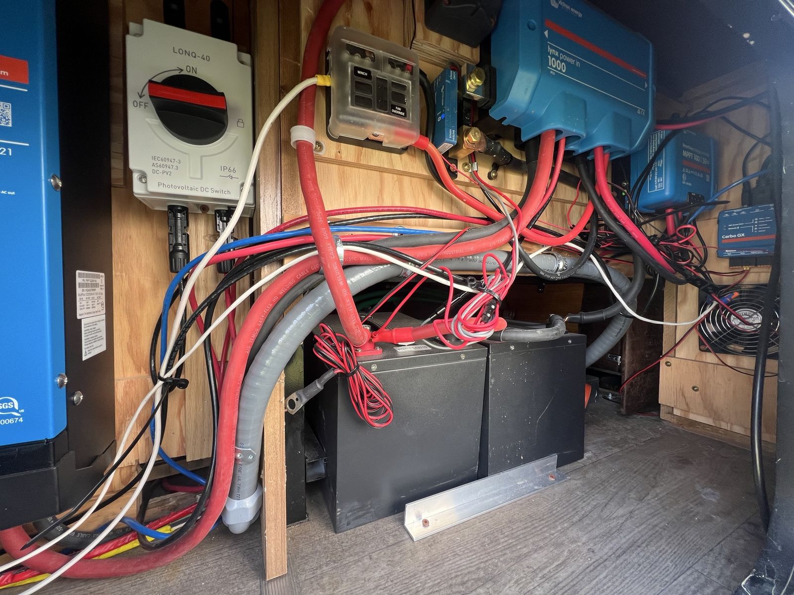 The electrical system has been upgraded with a Victron MultiPlus inverter/charger (2000W), Victron Lynx distribution system, Victron Cerbo GX monitoring system, and Victron solar charge controller, along with a 200Ah lithium battery bank. It is wired for portable ground-deployed solar panels and provides reliable off-grid capability far beyond a standard factory setup. Comparable Victron-based systems like this typically cost several thousand dollars to install, making this a great option for anyone looking to skip the time and expense of upgrading a stock trailer.