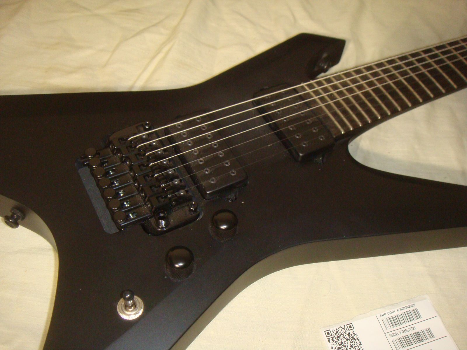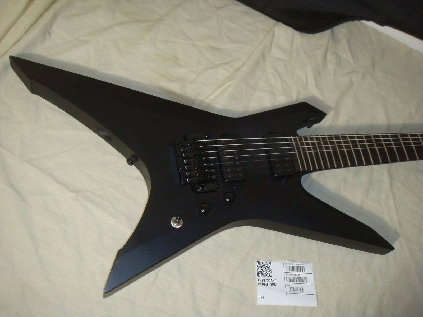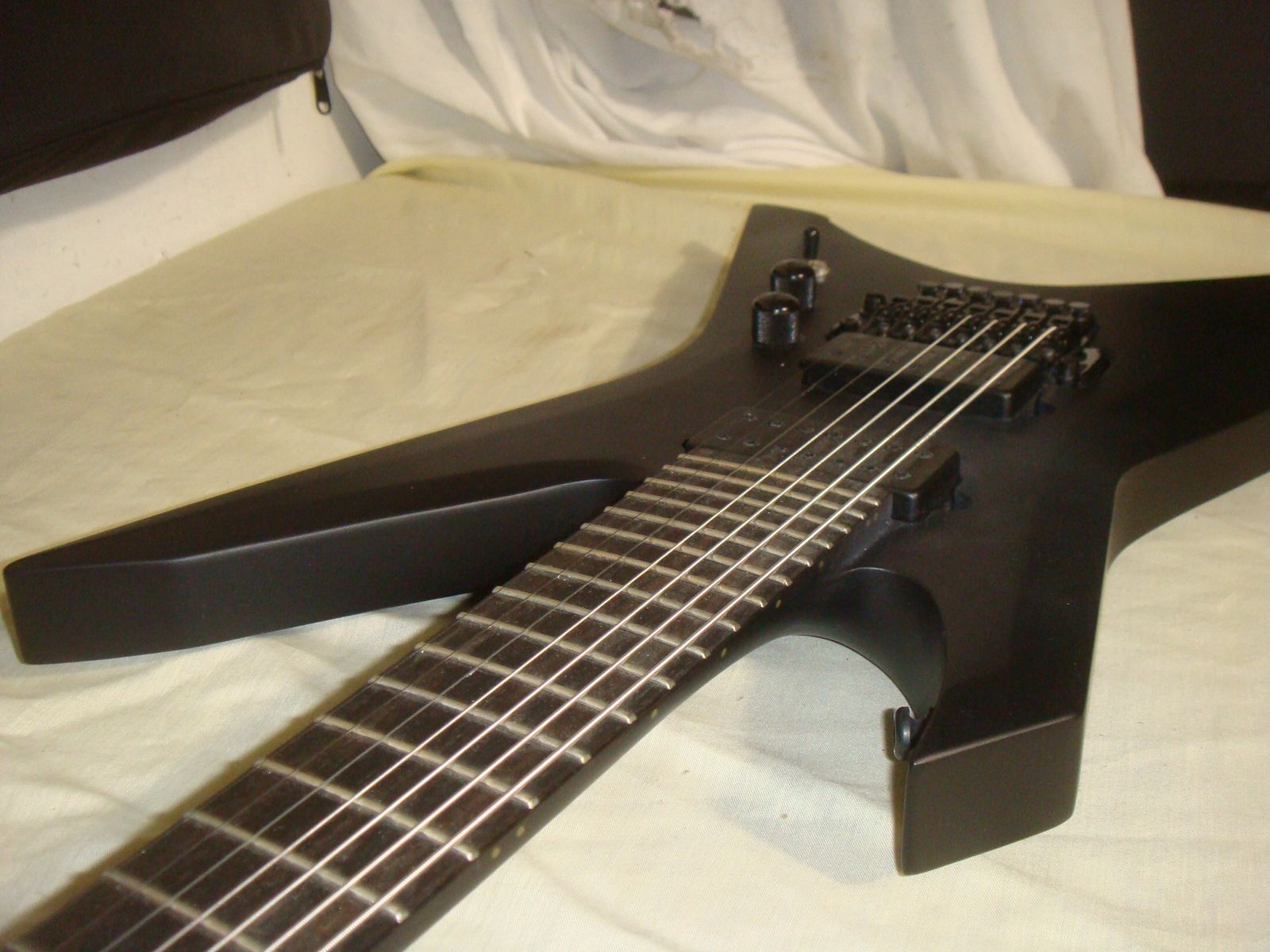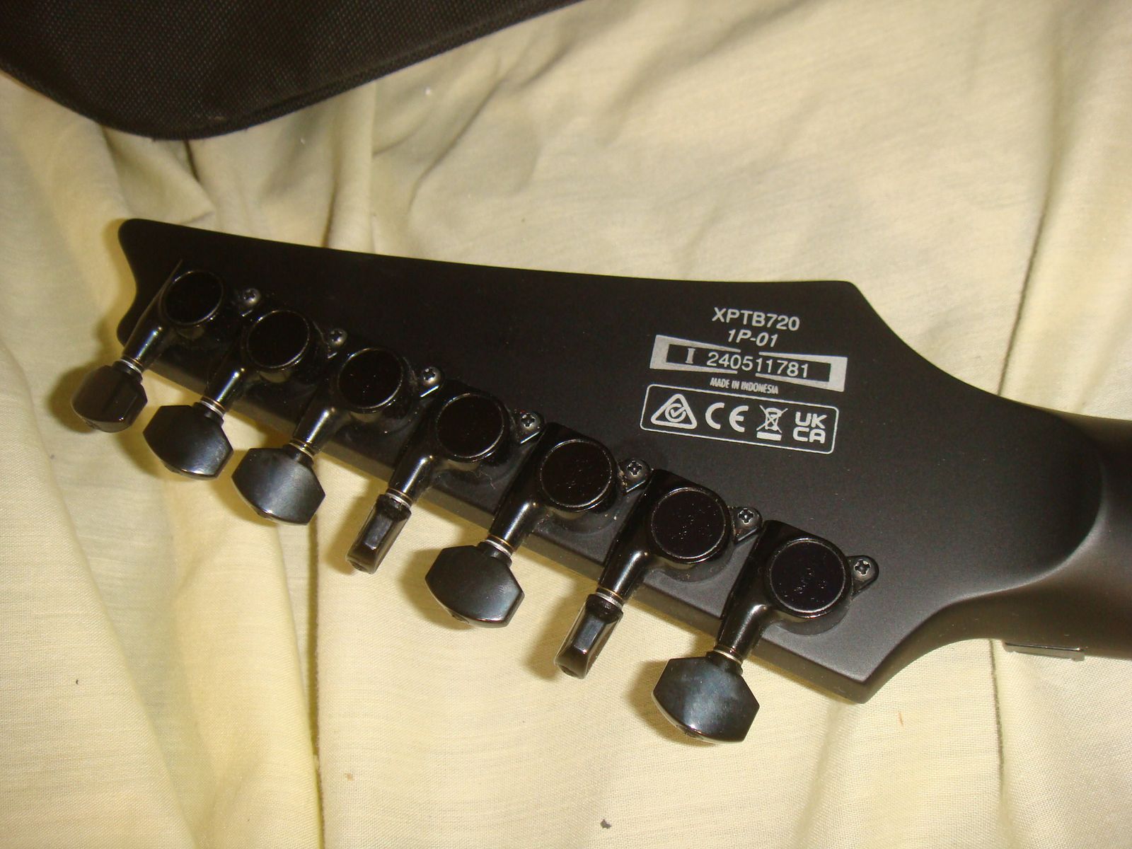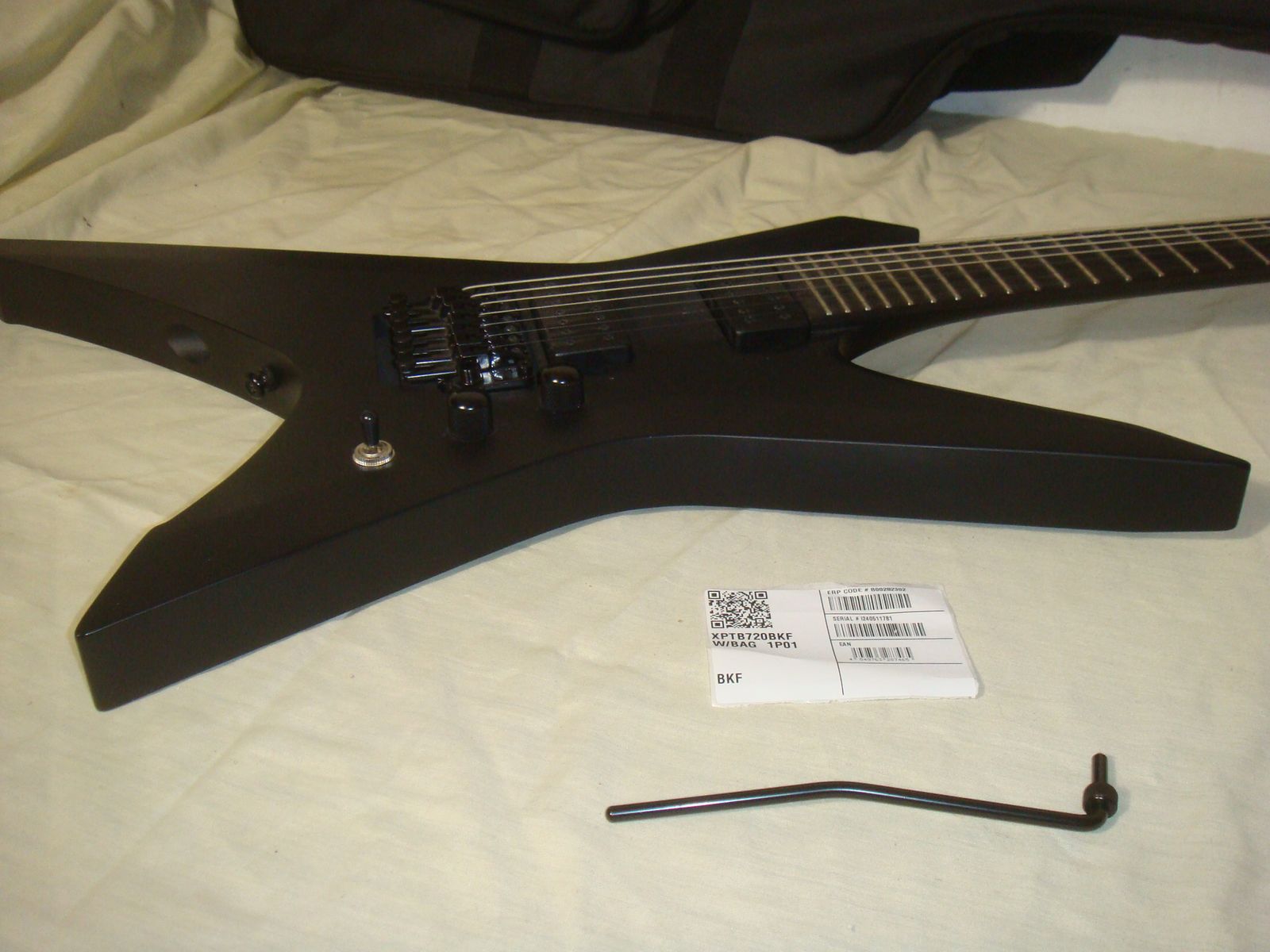 IBANZ XPTB720-BKF IRON LABEL XIPHOS 7-STRING ELECTRIC GUITAR WITH GIG BAG -FLAT BLACK. This is a very lightly used electric guitar that is absolutely beautiful and physically in like new condition! It comes with the custom gig bag shown and whammy bar. We did notice that the action is very low, causing some fret buzz on the lower note strings (only the lowest/largest 3 strings, and only in the highest registers), so it might need some setup or a truss rod adjustment. Otherwise it's excellent!