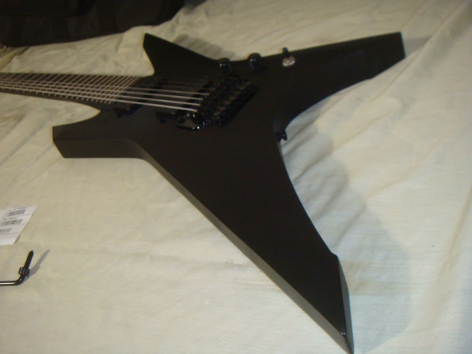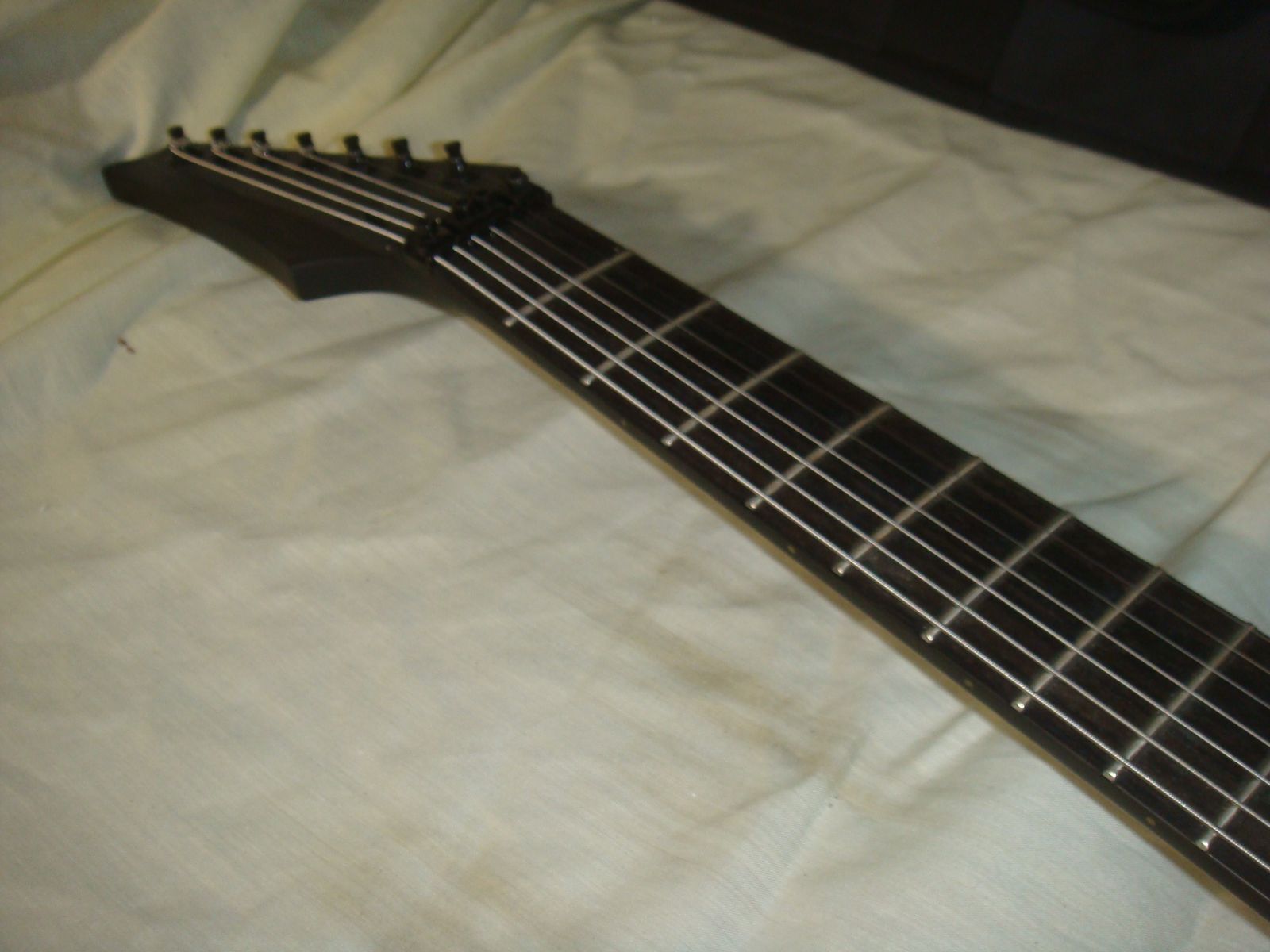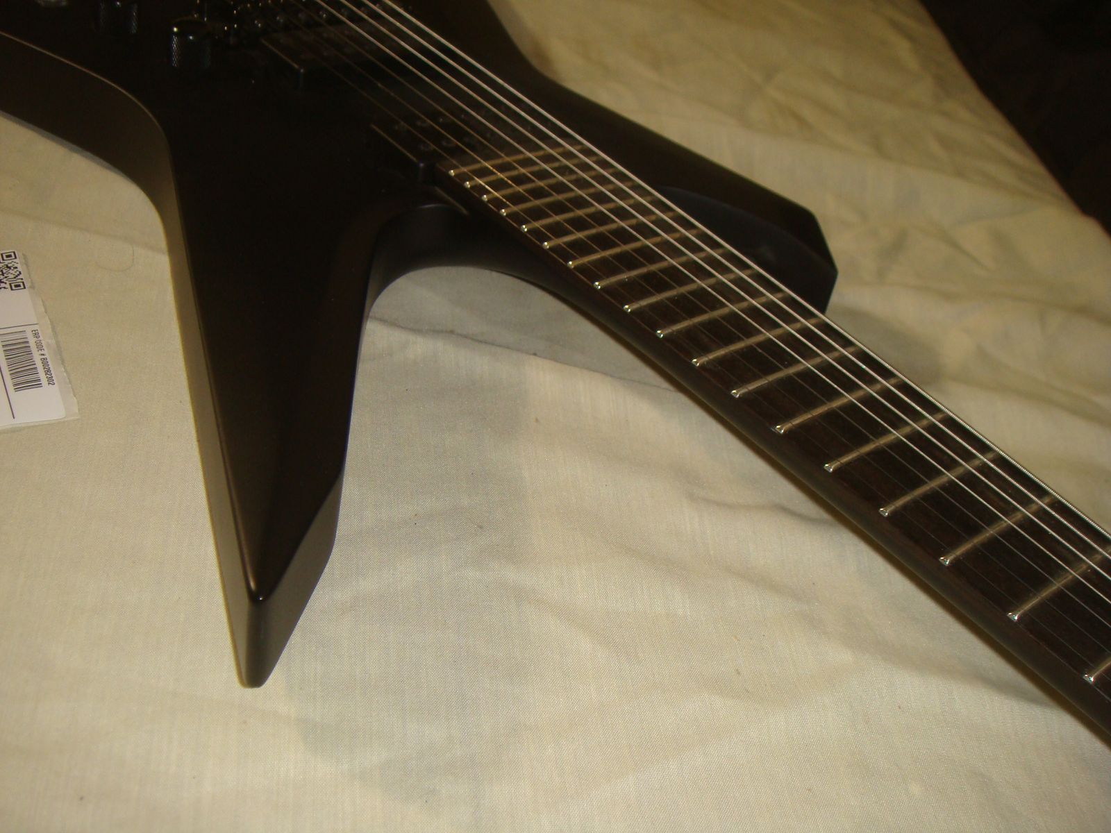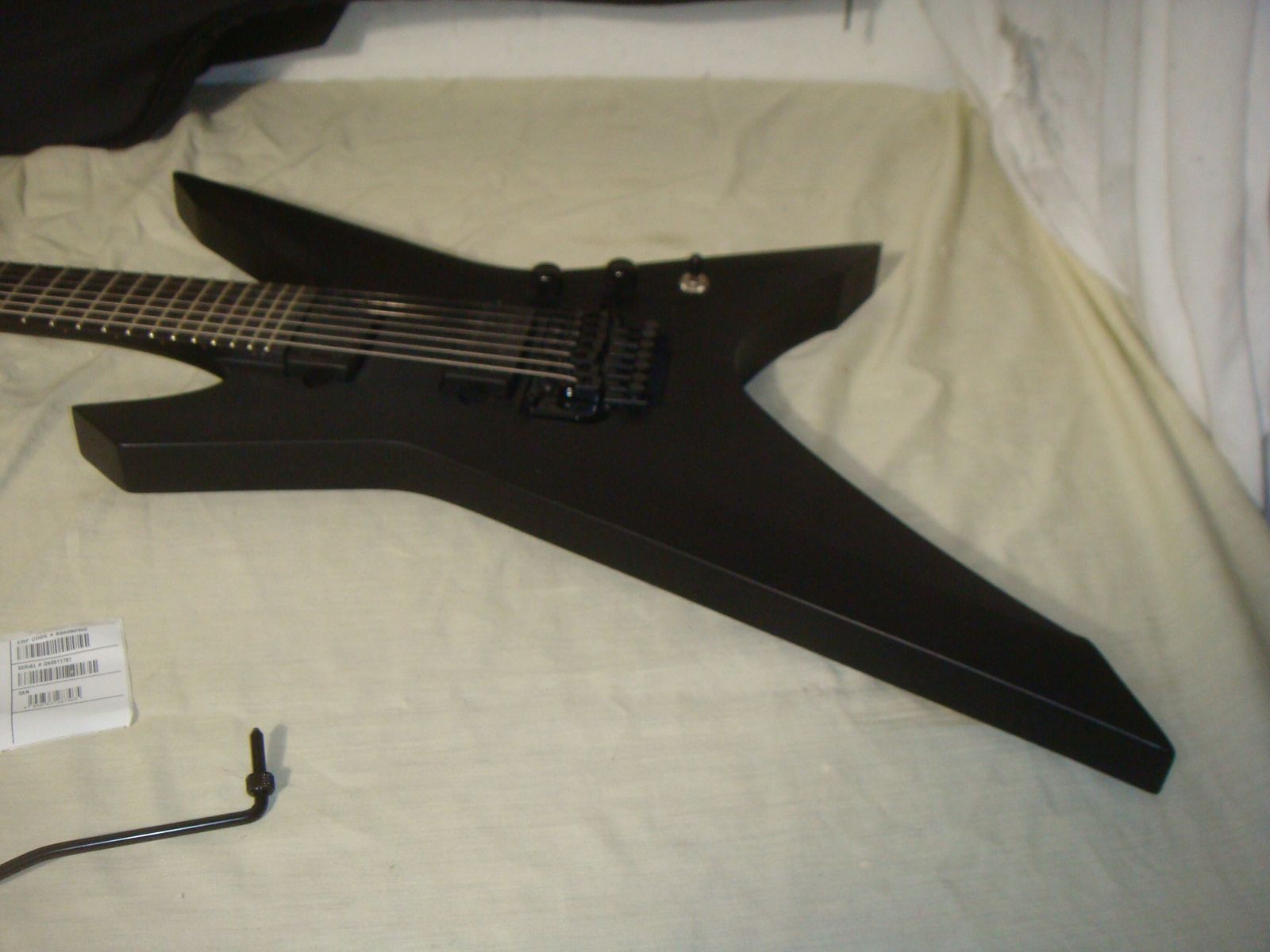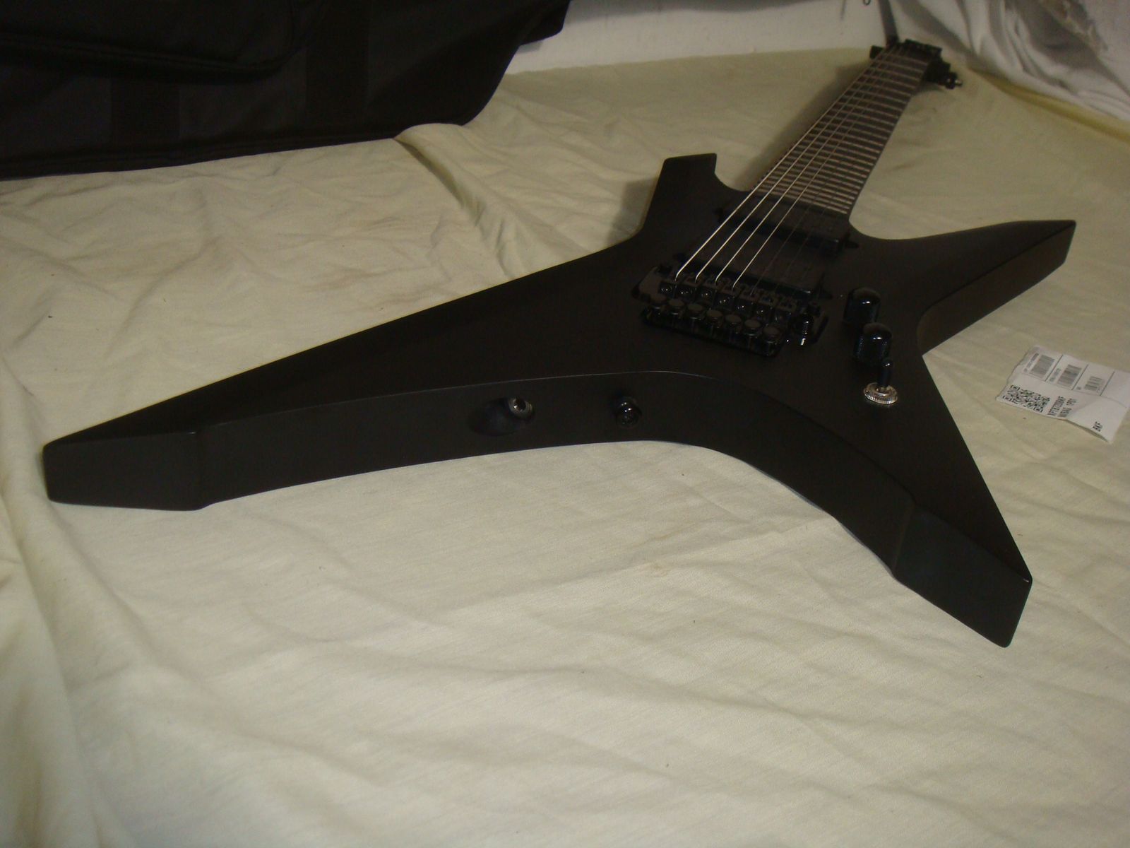 IBANZ XPTB720-BKF IRON LABEL XIPHOS 7-STRING ELECTRIC GUITAR WITH GIG BAG -FLAT BLACK. This is a very lightly used electric guitar that is absolutely beautiful and physically in like new condition! It comes with the custom gig bag shown and whammy bar. We did notice that the action is very low, causing some fret buzz on the lower note strings (only the lowest/largest 3 strings, and only in the highest registers), so it might need some setup or a truss rod adjustment. Otherwise it's excellent!
