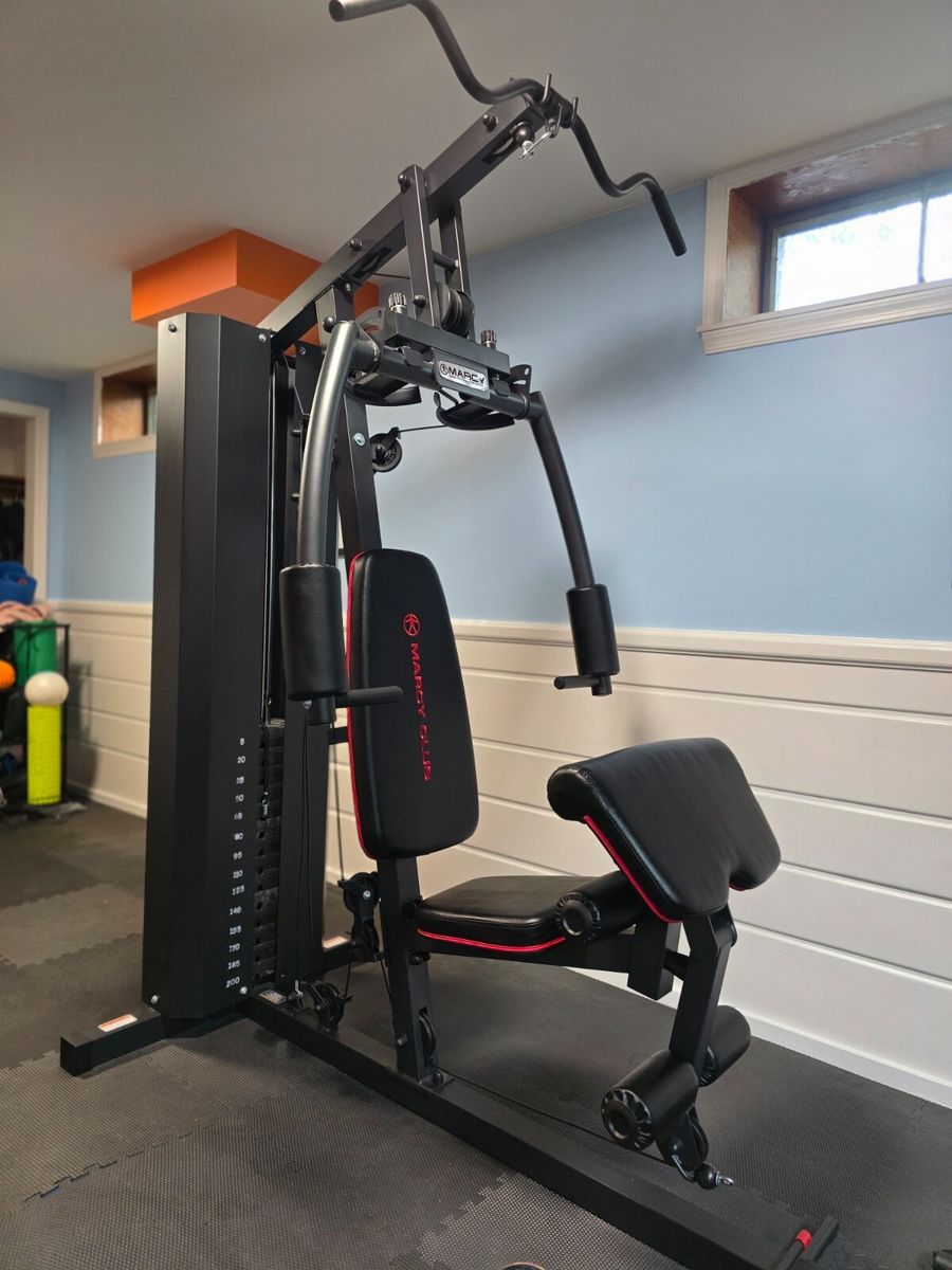 home gym, workout machine, multi station gym, weight machine, cable machine, strength training, fitness equipment, gym equipment, Marcy gym, full body workout, bench press machine, lat pulldown, leg extension, home workout, exercise machine, weight stack gym, resistance training, garage gym