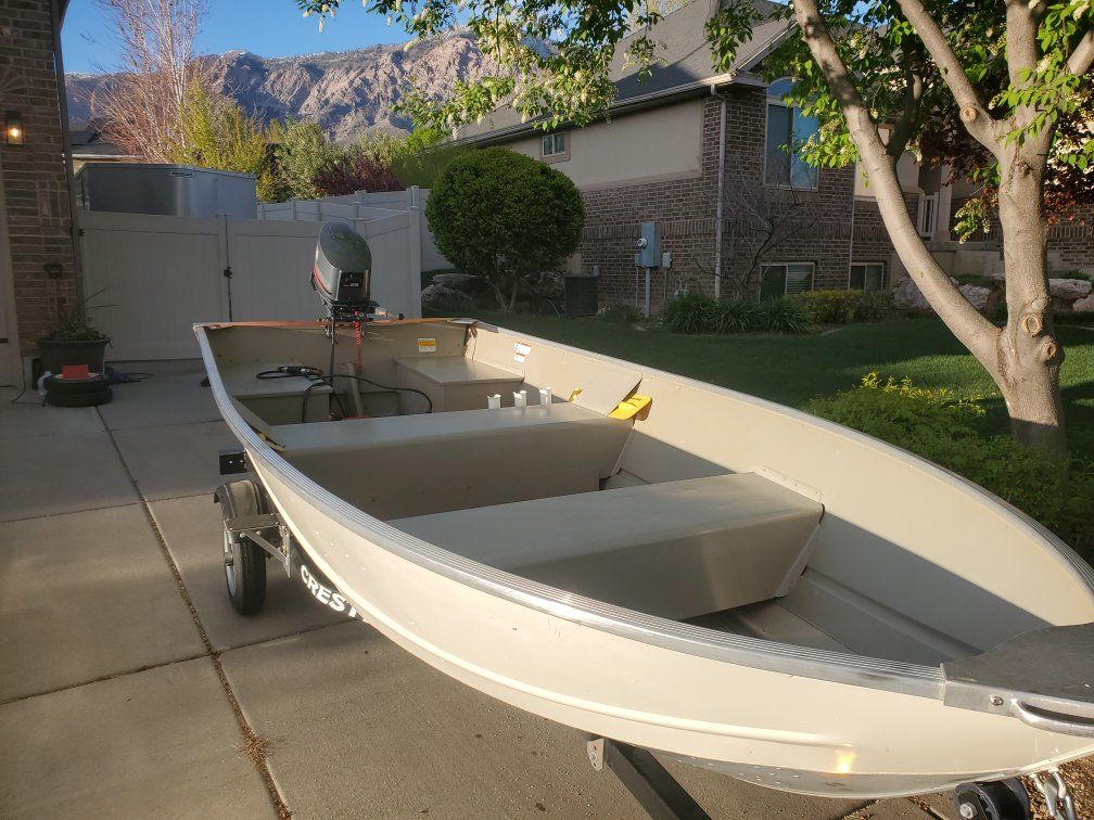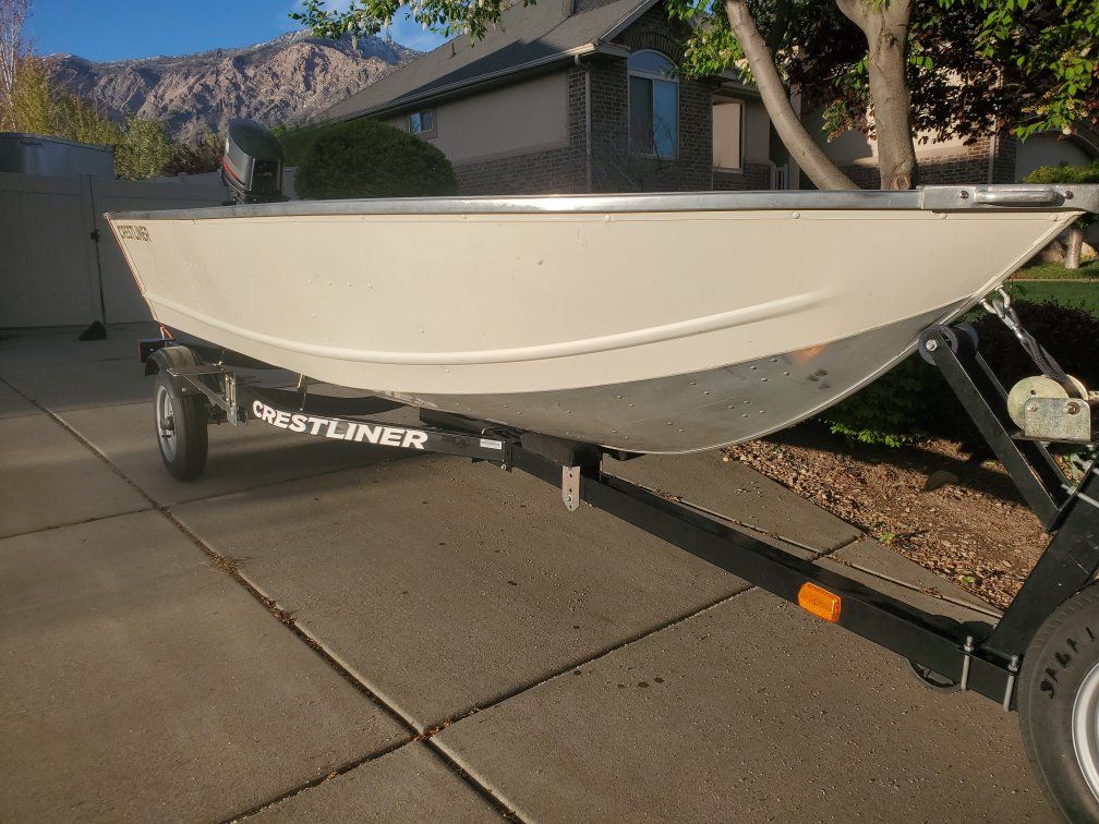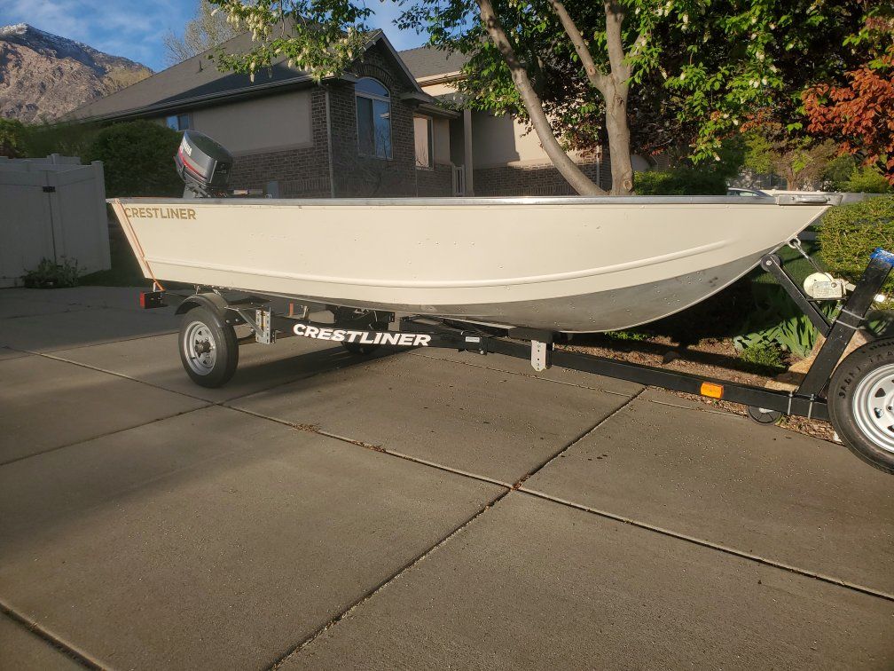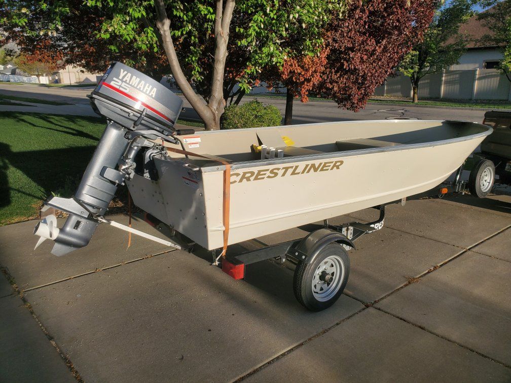 Beautiful 14' Crestliner fishing boat. Boat is powered by a 25 hp yamaha 2 stroke. Motor was serviced last fall. Boat has a new gas tank and new fuel line. Boat has a couple clamp on swivel fishing seats and two clamp on downriggers. There's a spare tire on the trailer. Throw your fishing gear in and get on the water. rated for 5 people. $5900.