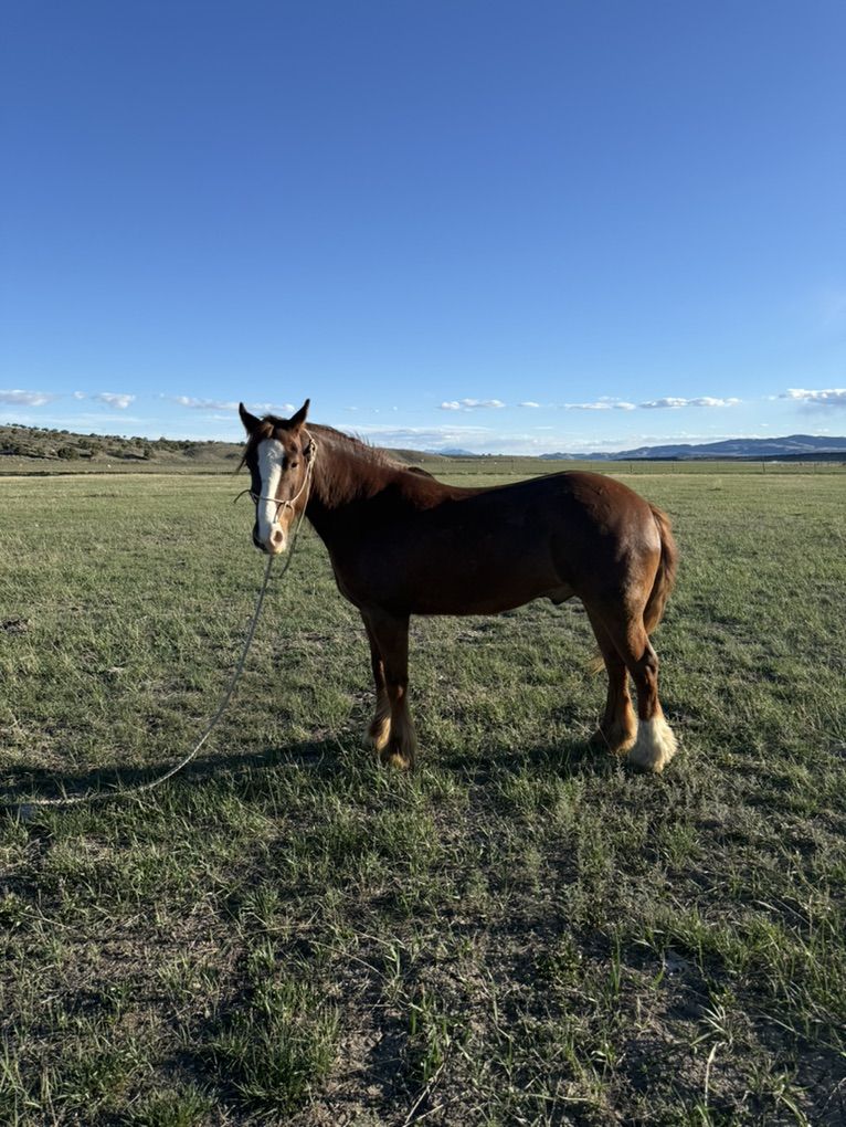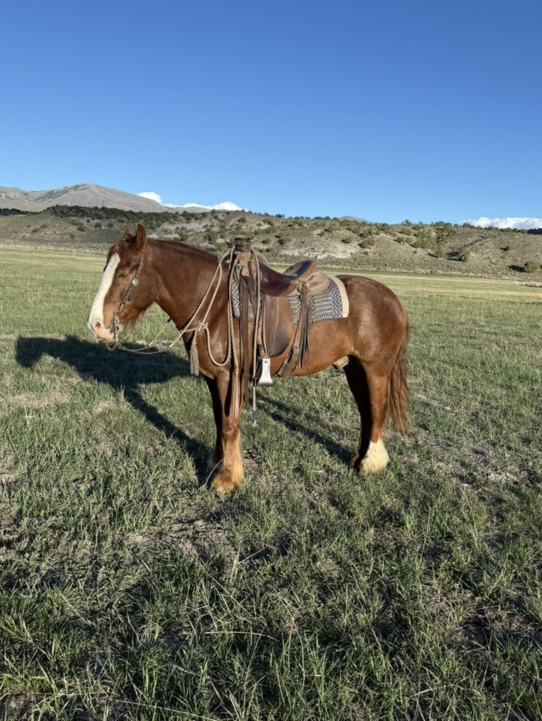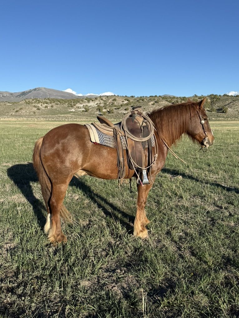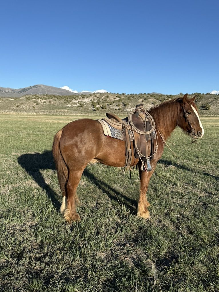 I’ve got a 4 year old Gypsy cross. He’s super gentle. Easy to be around. I’ve shipped cows on him, and roped calves on him. He’s got a smooth trot across big big country. He also has a smooth lope. Plenty of go in him. But doesn’t mind if you wanna pull up and just walk along. He’s gentle to be around. Good mind on him. No tire kickers. You don’t cone across these ones very often