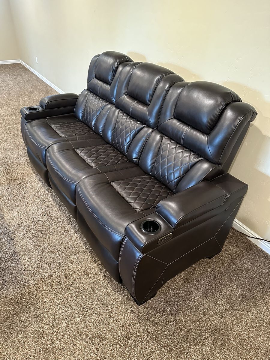 VenmoBlack fully electric couch. middle folds back up into extra seat.