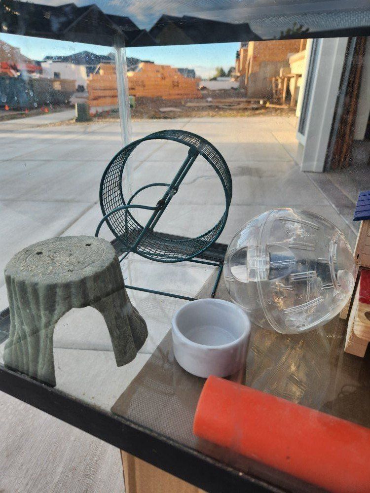 This is a 30" by 13" by 13" aquarium with reptile cover. Perfect setup for a small hamster, mouse, reptile. Comes with all the items in the photo.