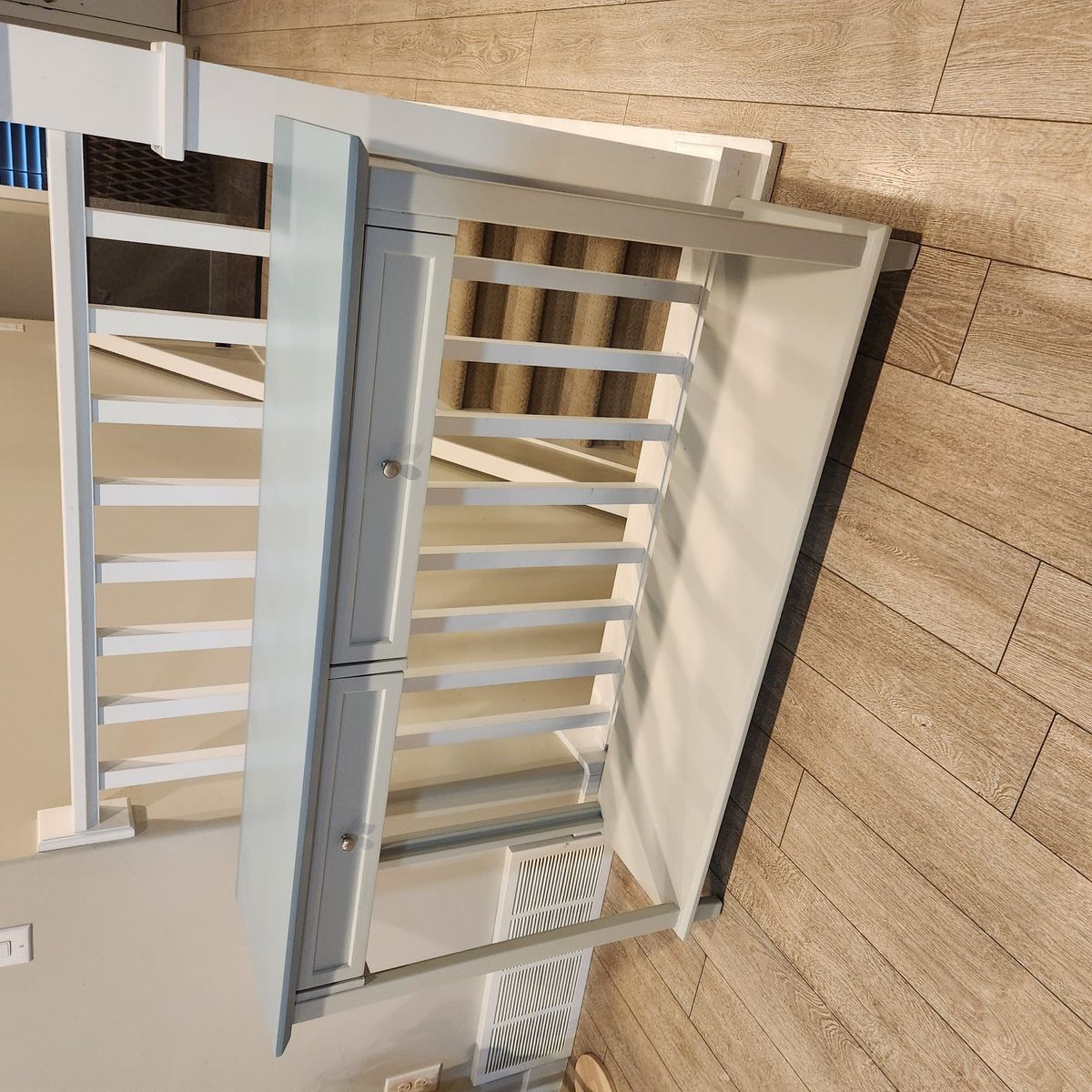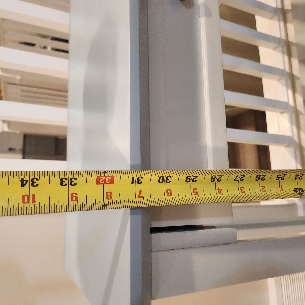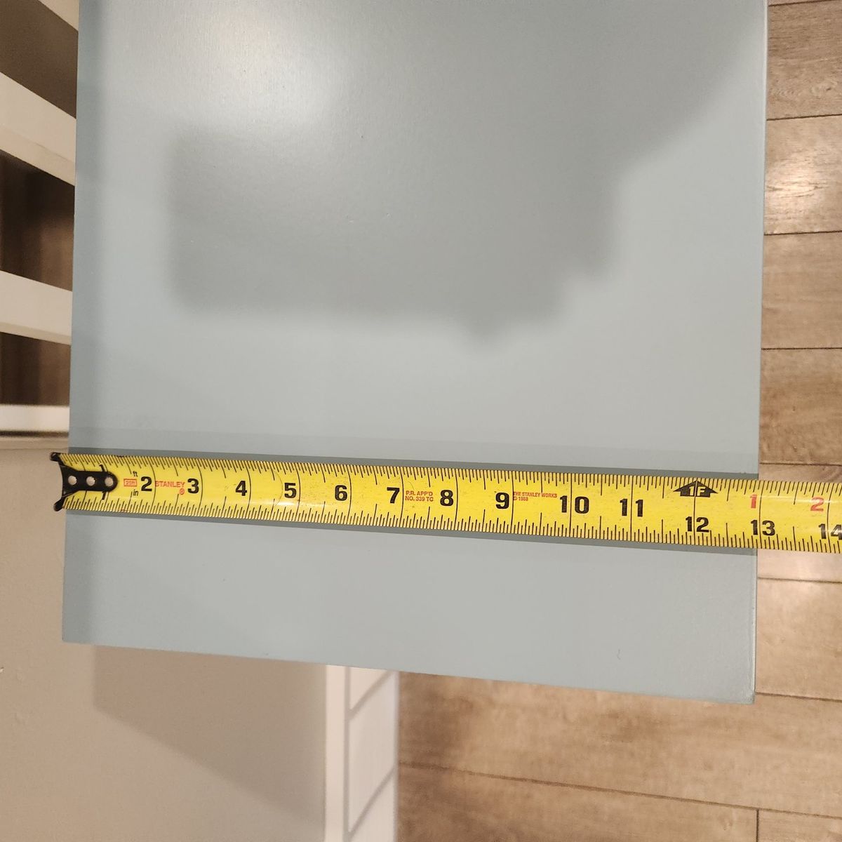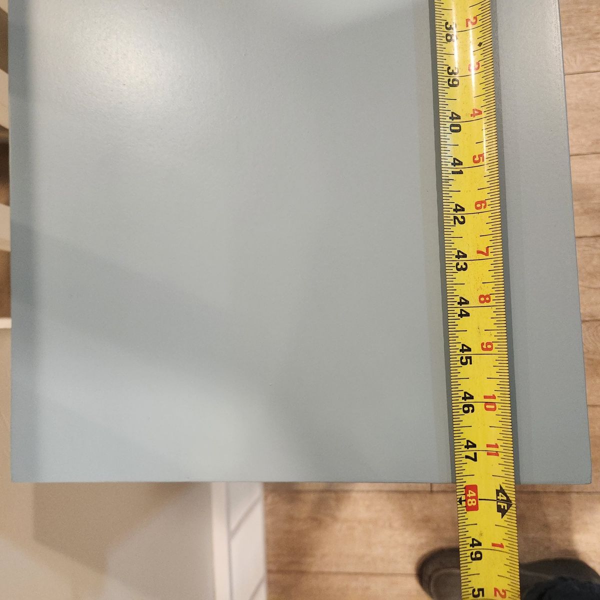 VenmoJust sanded down and sprayed with a 2 tone Sherwin Williams enamel. Light Grey and powder blue. 14 inches deap. 4 feet long. 31 inches tall. no smoking home.