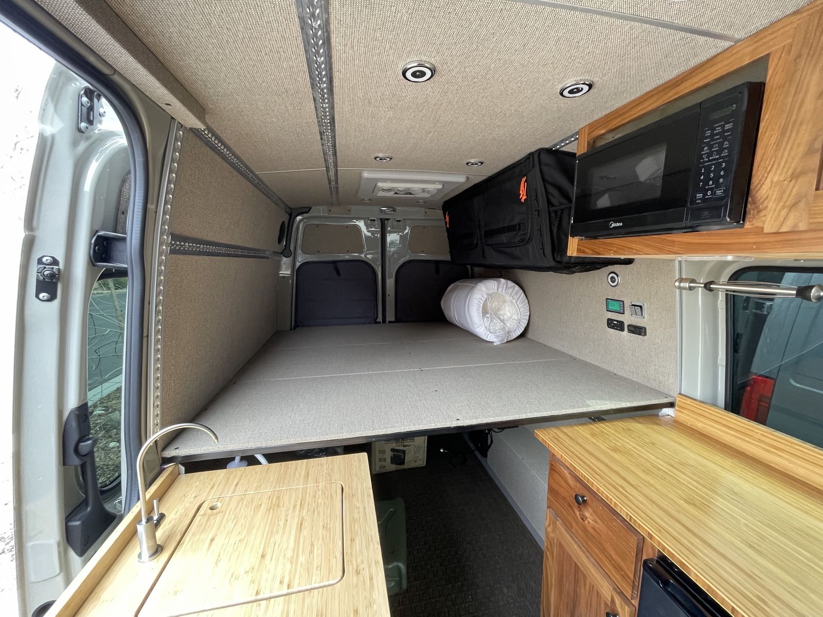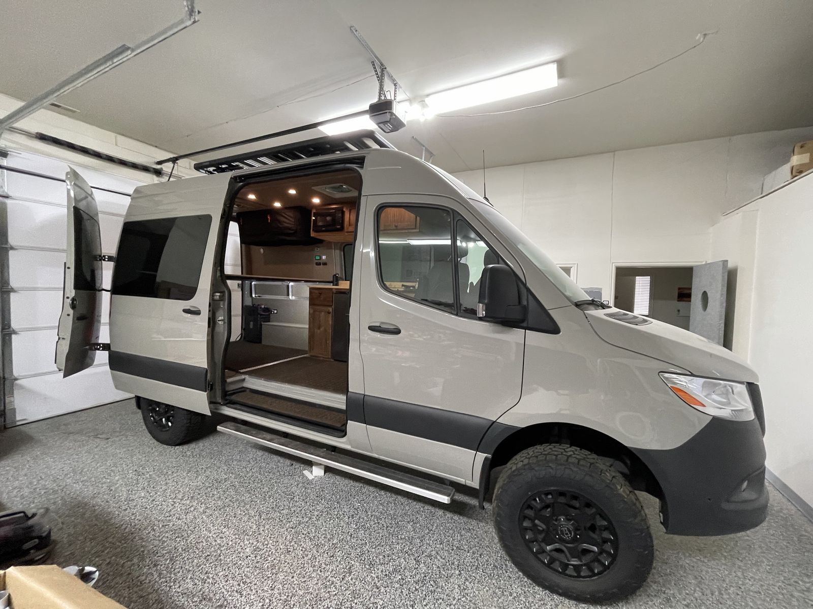 Sale Pending - Almost Brand new 4x4 4WD 144” Mercedes sprinter 2500 only 5000 miles on the odometer with a custom professional build, roof rack, ladder, solar panels, 12 volt rooftop AC, max air fan, 12 volt fridge, induction cooktop, water system, 200 watt invertor, custom black walnut cabinets, bike storage, bed, swivel seats, bamboo table, running boards, diesel heater, custom tires and rims. More options available Spiritvans.com 435-760-1385