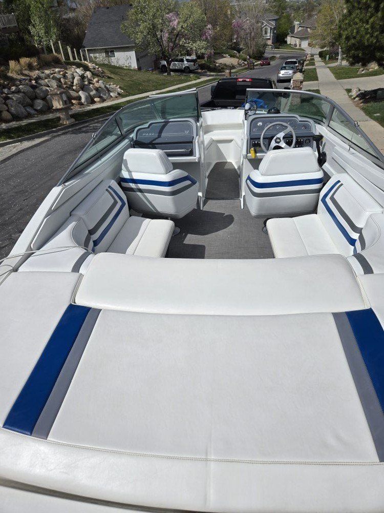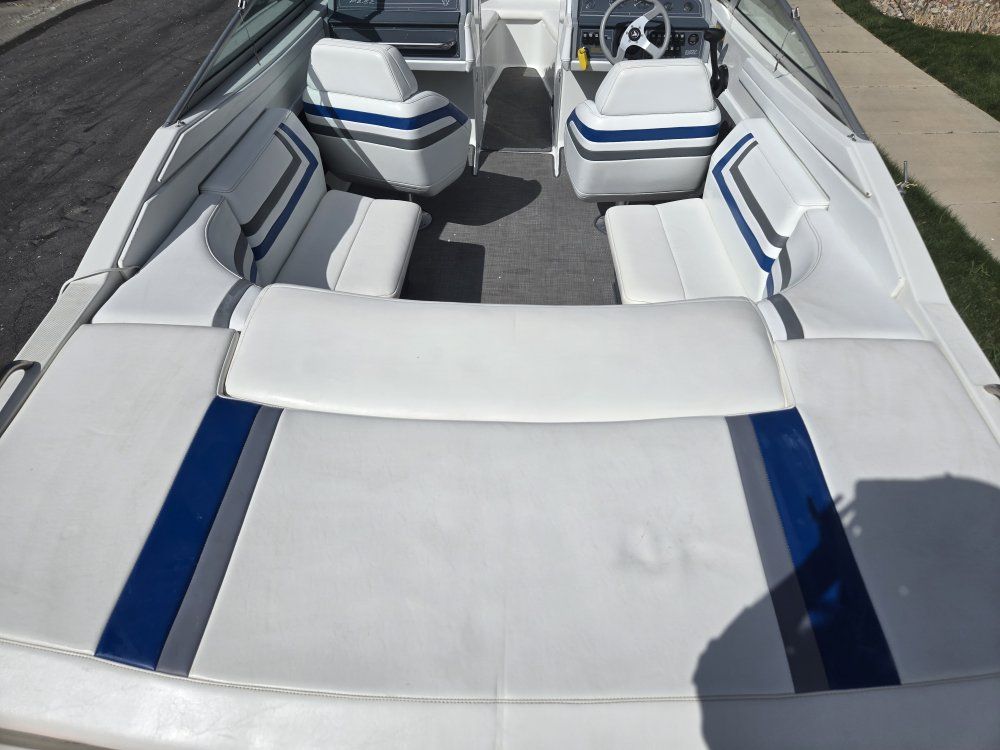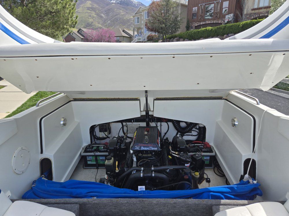 Second Owner. Oil changes and winterization every year. Only taken 3 to 4 times a year. Mercury Bravo 3, 7.4 Engine with 788 Hours Ulpostry and floor covering well maintained. Cover in great shape, no tears. Plenty of storage. Working stereo system. Title in hand. Trailer in good shape. Runner boards carpeting recently replaced with all new tires. More willing to take it for a spin at near Lake!! Loved it for many many years!!!!