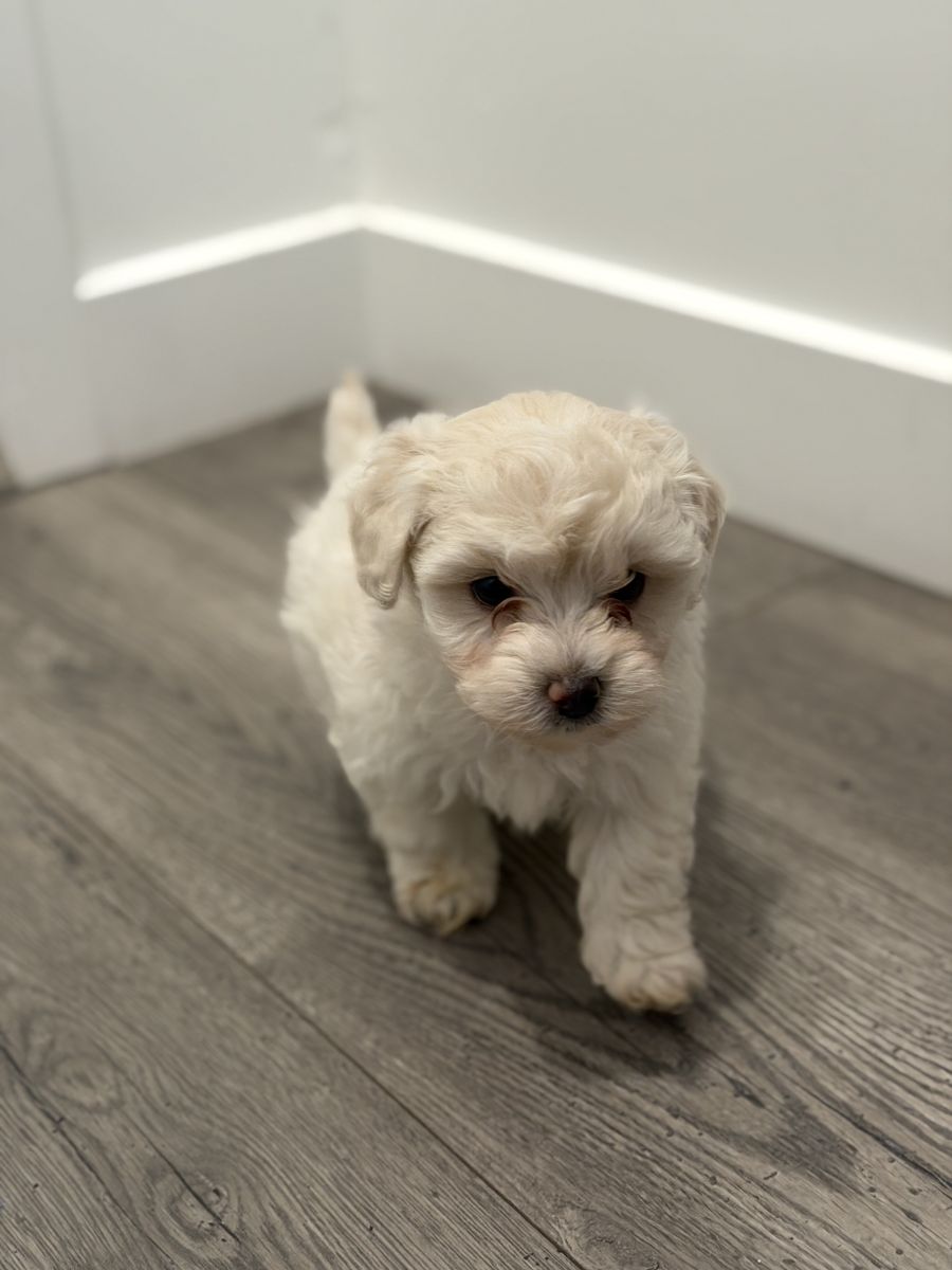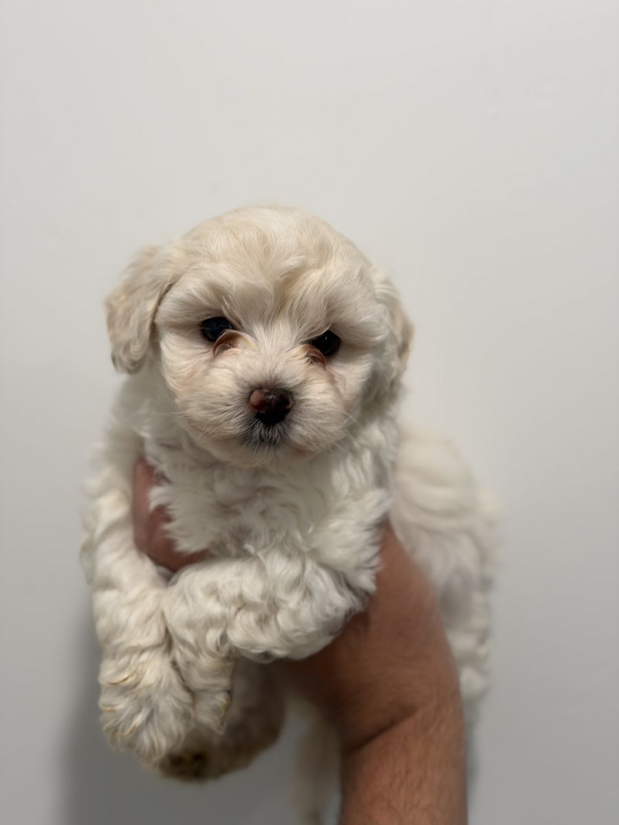 These puppies are a mix of Maltese and Poodle, known for being incredibly affectionate, intelligent, and perfect companion dogs. Lap dogs and family dogs! They don't require taking out all the time, walks, runs, etc. They're meant to be on your lap, cuddling with you or the kids. They’ve been raised in a loving home and are very social, playful, and used to people.