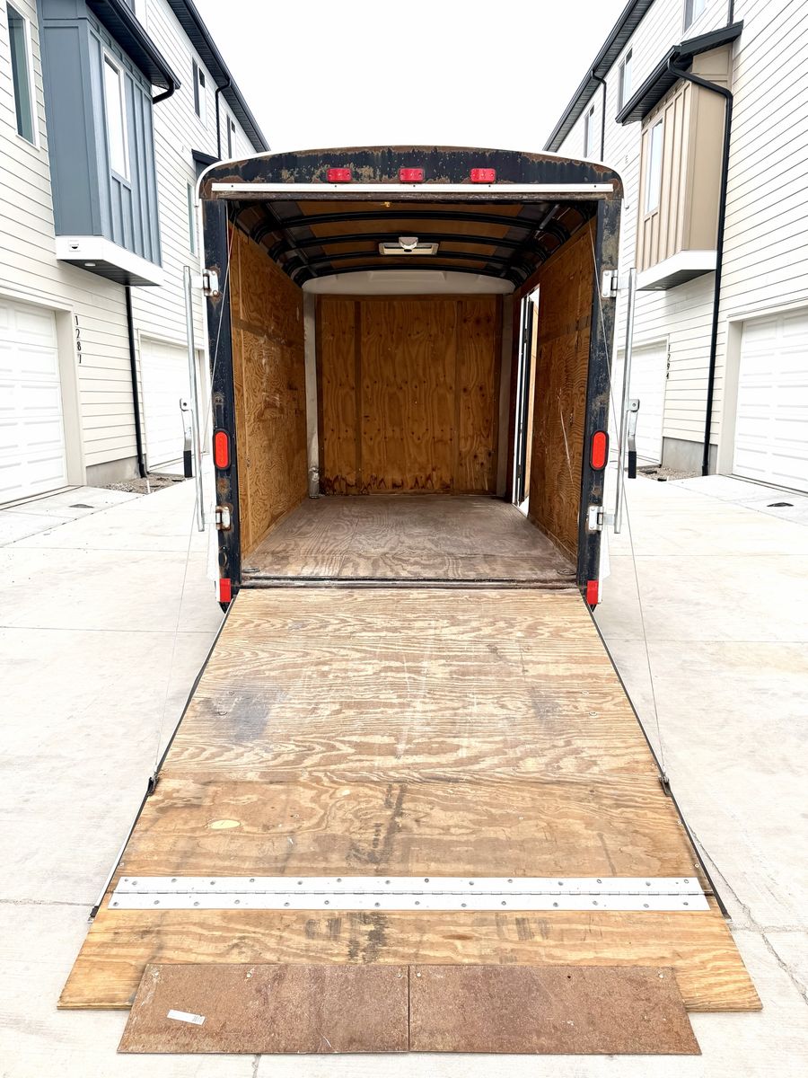 2009 6x10 Interstate Load Runner Enclosed Trailer. Spring Assist Rear Ramp Door. Side Man Door. 74” Interior Height. Floor D-Rings. Roof Vent. 4Pin LED lights. Newer Tires. Front Jack. 2” Coupler. Clean Utah Title. Cash Only. $2800.