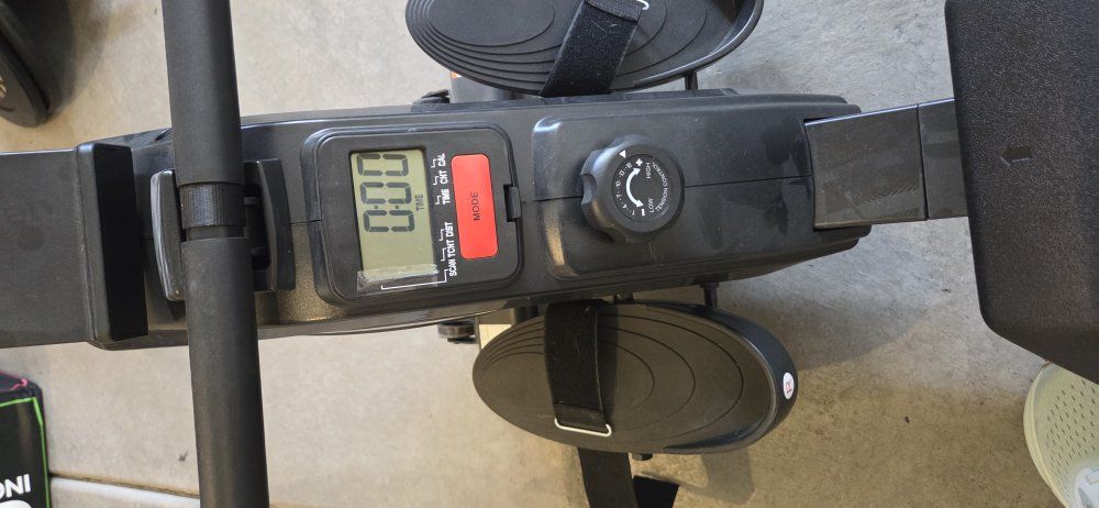 rowing machine works great. adjustable tension. monitoring calories, rows, and distance. no longer use but was perfect and compact.