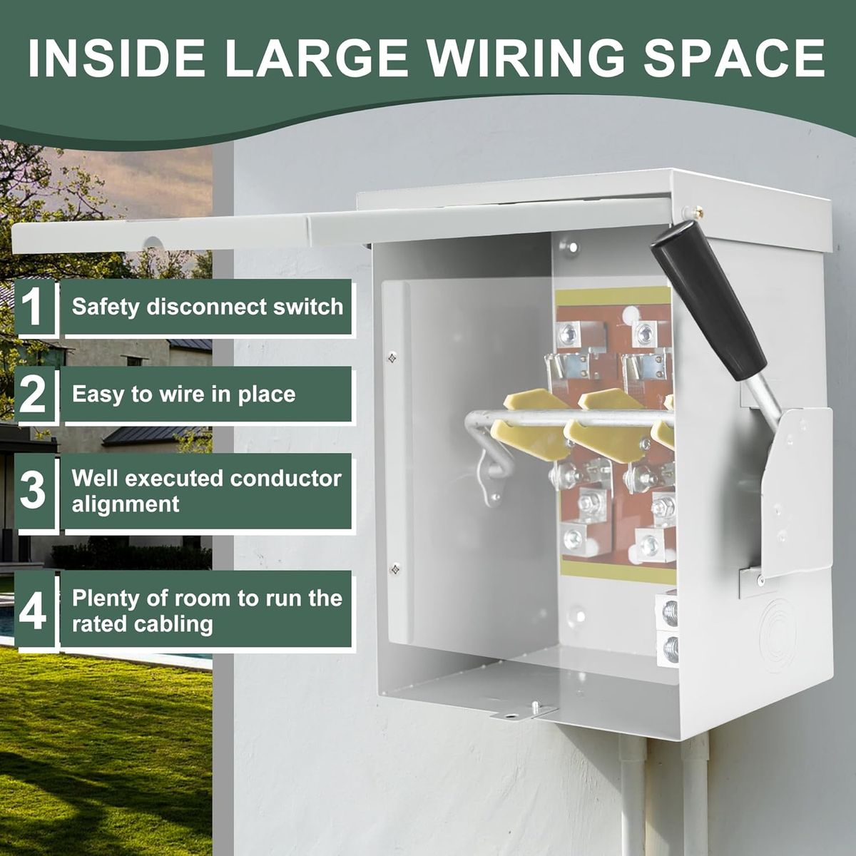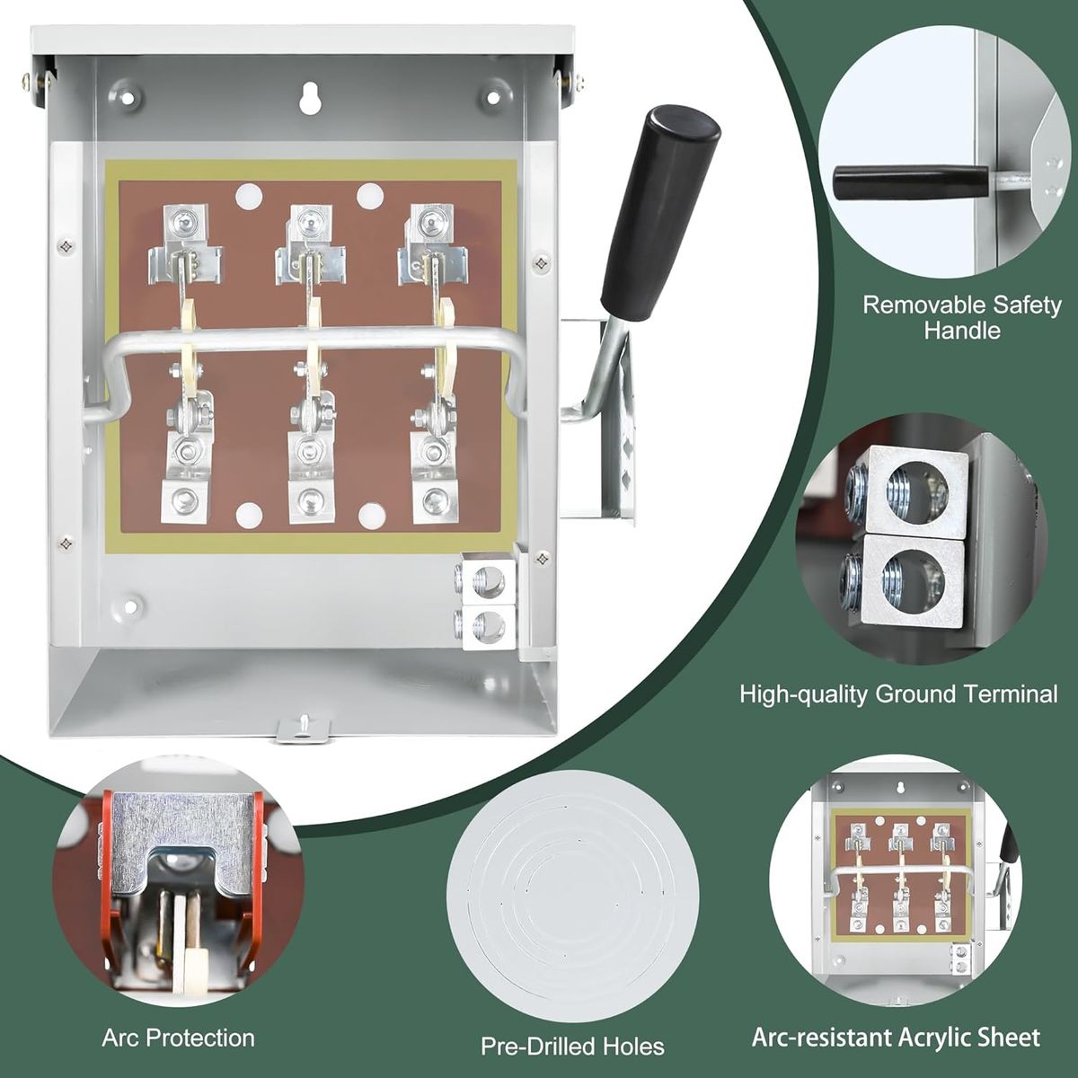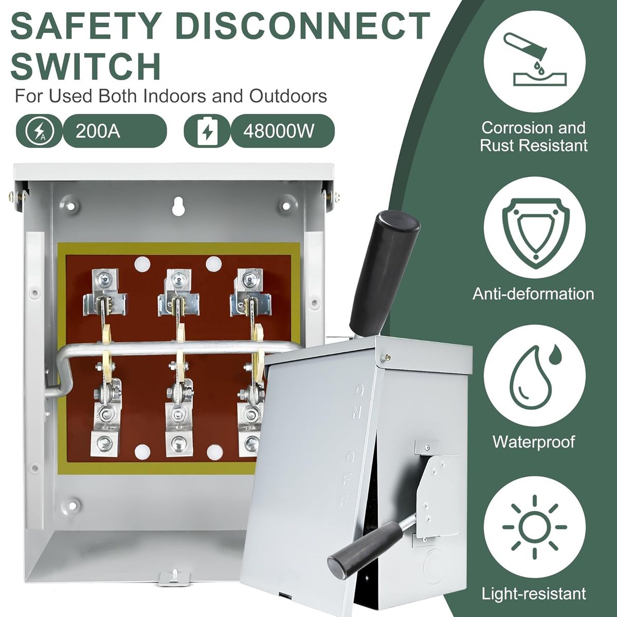 ApplePay200 Amp General Safety Switch, 3 Pole Non-Fused AC Disconnect Switch Box, NEMA-3R Enclosure, Anti Corrosion and Rust Prevention with Ground Kit for Outdoor&Indoor (200A-3P)