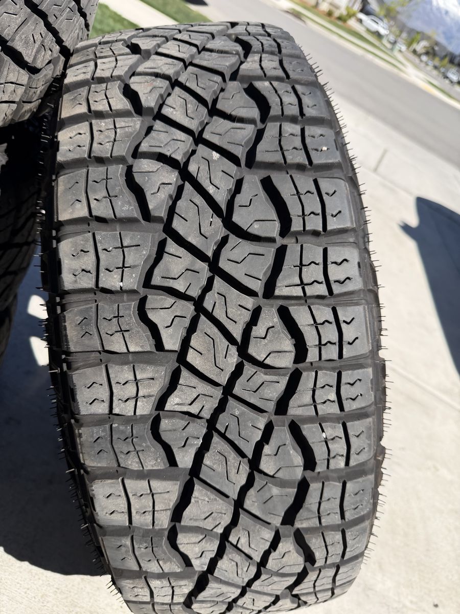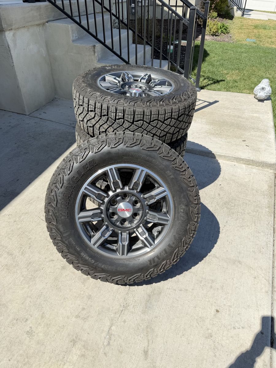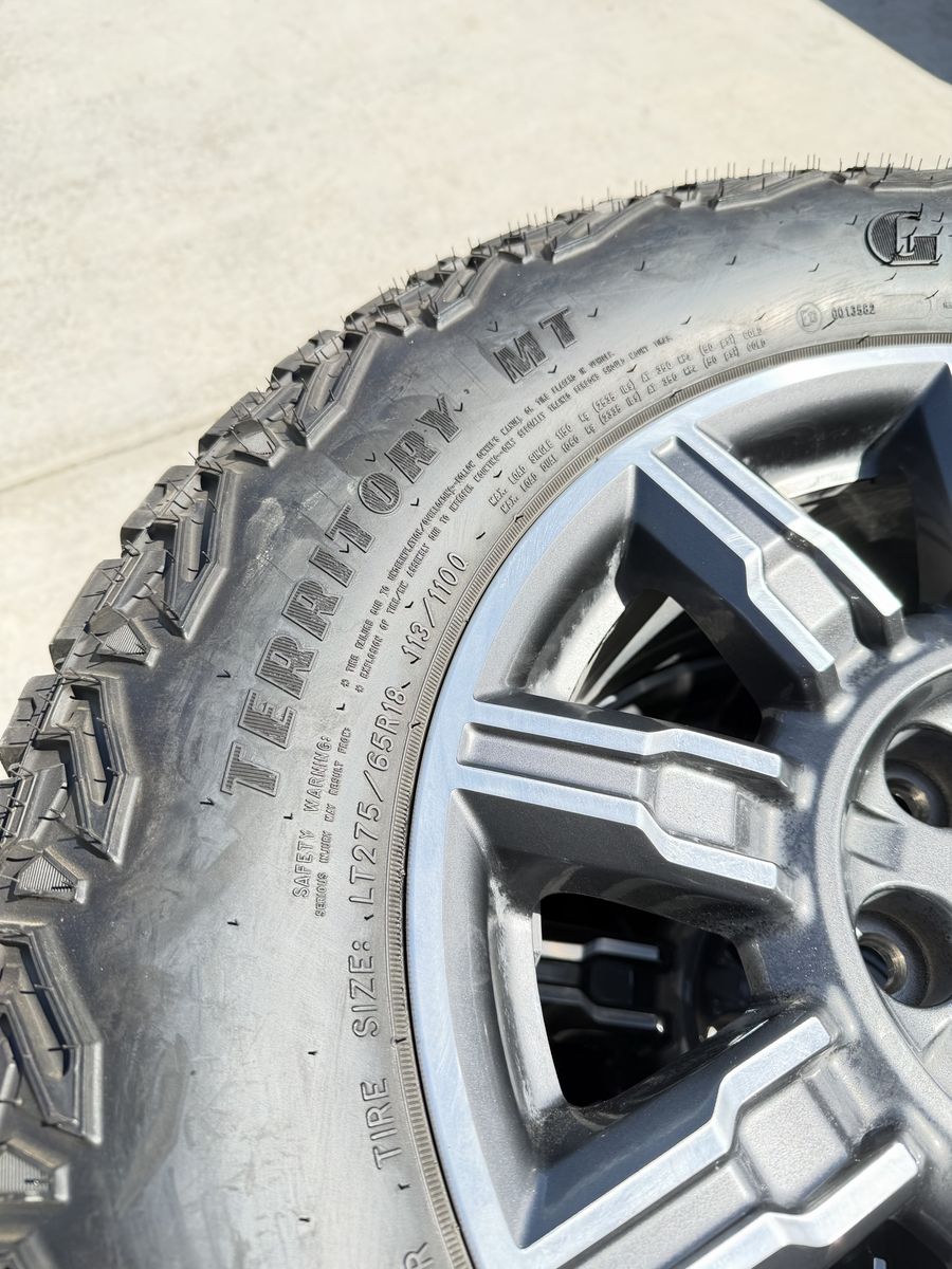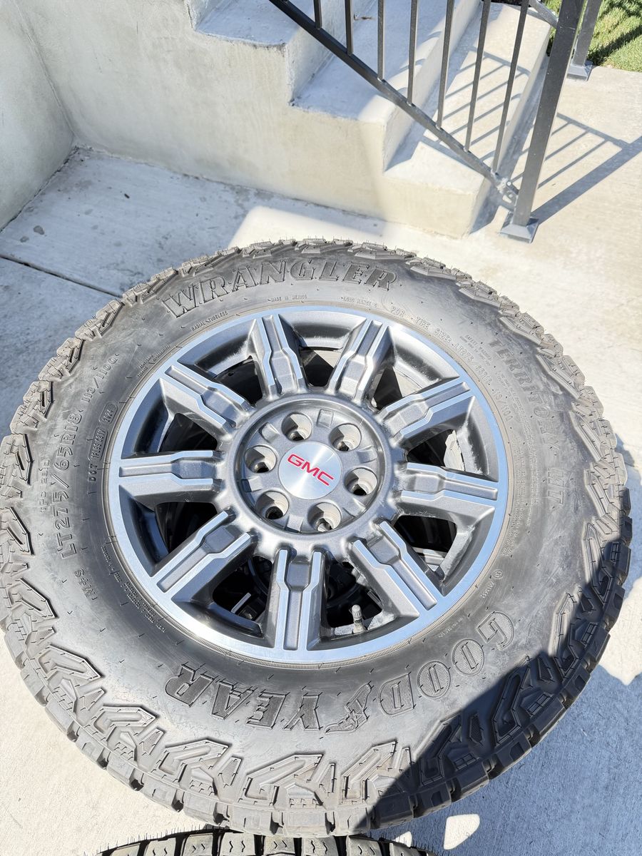 ApplePaySet of 4-Gmc Sierra 1500 AT4 Rims and Tires 275/70R18 Goodyear Wrangler Territory Almost new only 5000 miles on them in excellent condition,asking $1700 obo Comes with lug nuts and sensors I can sell the rims or tires separately Bolt pattern 6-5.5/6-139.7 They will fit Chevy Silverado Tahoe suburban avalanche Colorado GMC sierra Yukon Denali Escalade Dodge Ram 1500 Text anytime 385-402-2292