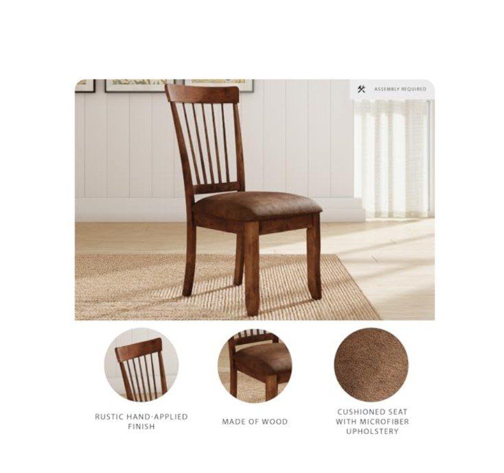 RUSTIC HAND‑APPLIED FINISH: The warm hand‑applied finish on this set of upholstered dining chairs adds character and blends easily with a variety of decor, giving your space a welcoming, lived‑in feel.