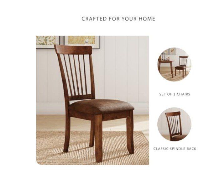 Signature Design by Ashley Berringer | Spindle Back 18" Dining Chairs (Set of 2) – Rustic Light Brown with Upholstered Cushioned Seat