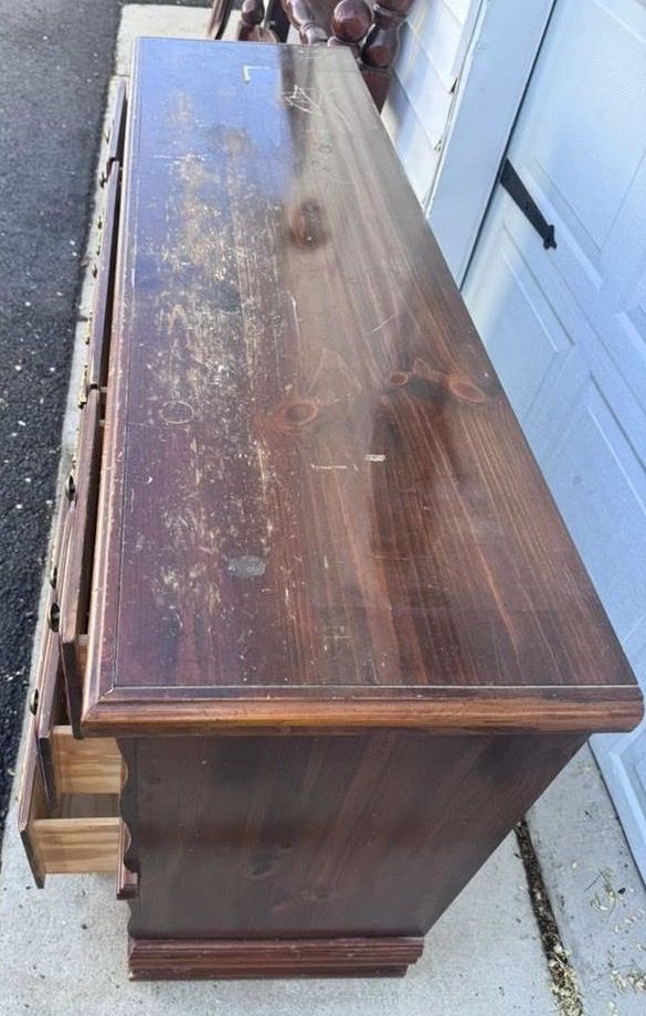 VenmoSolid dresser! The top is rough but drawers are good. Willing to deliver for $50.