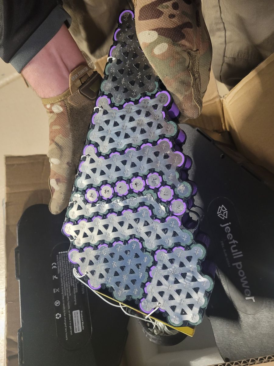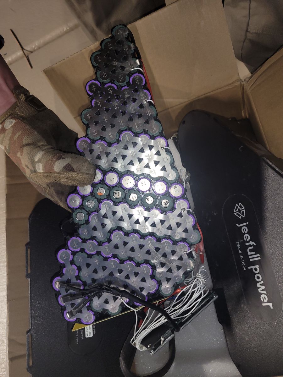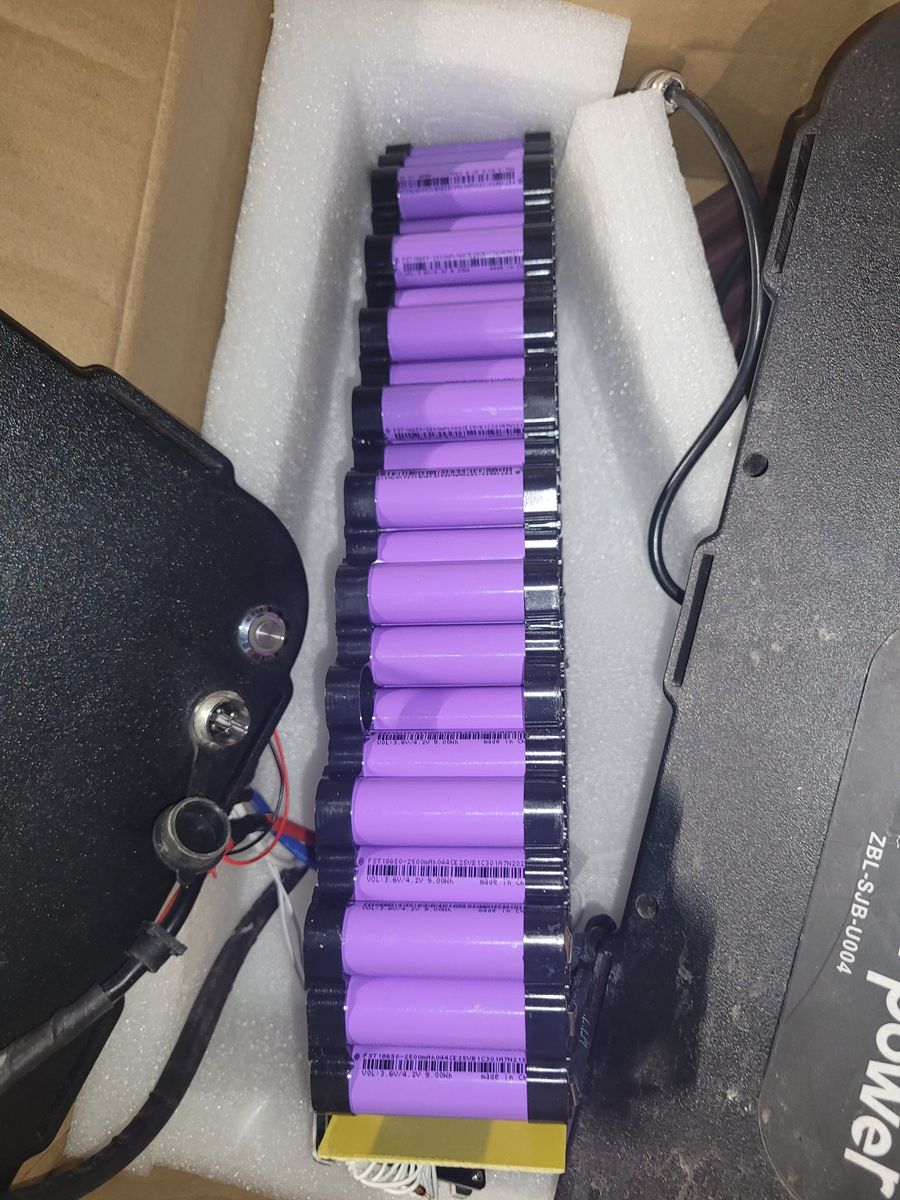 This is a 52V 40AH ebike battery. All cells are good except for one rack. You can fix it or use it for individual battery cells. Charger included. Extra (good) cells included. View photos.