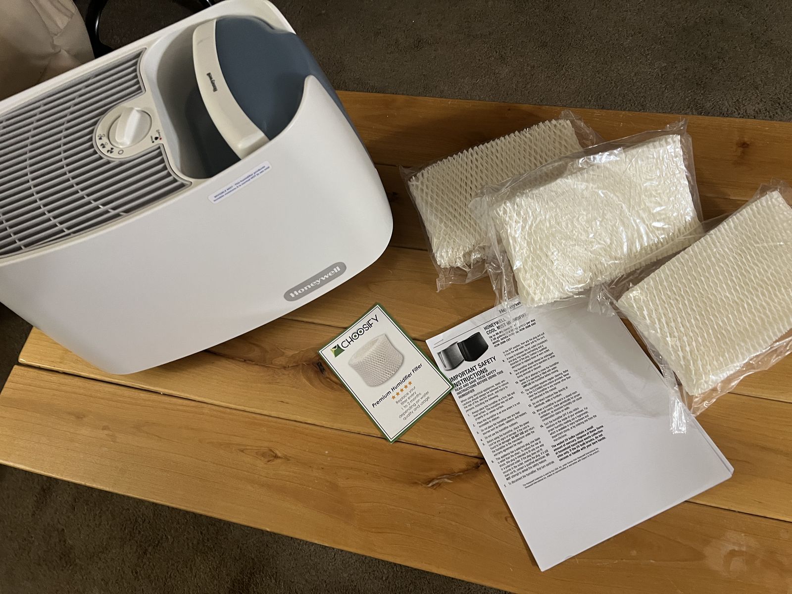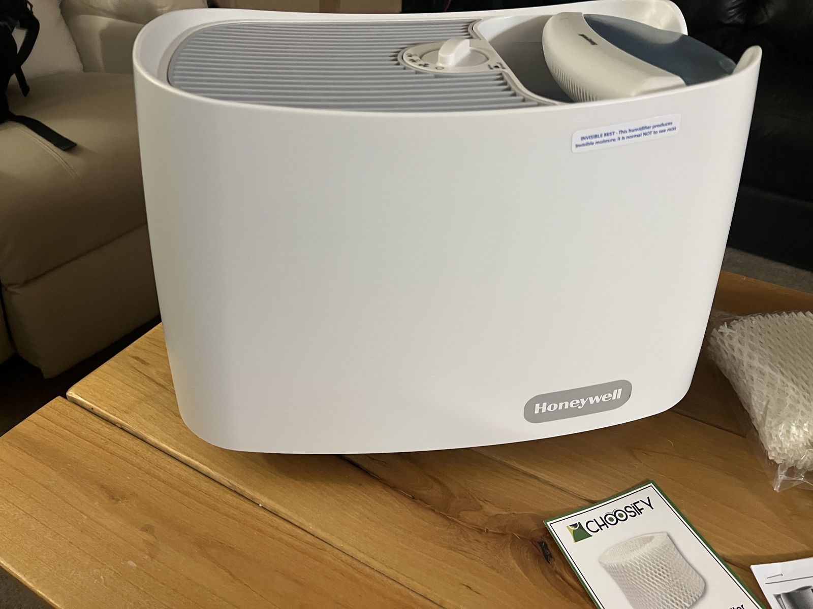 Brand: Honeywell Type: Cool Moisture (Invisible Mist) Humidifier Tank Size: 1 Gallon Room Size: Medium rooms Price: $35