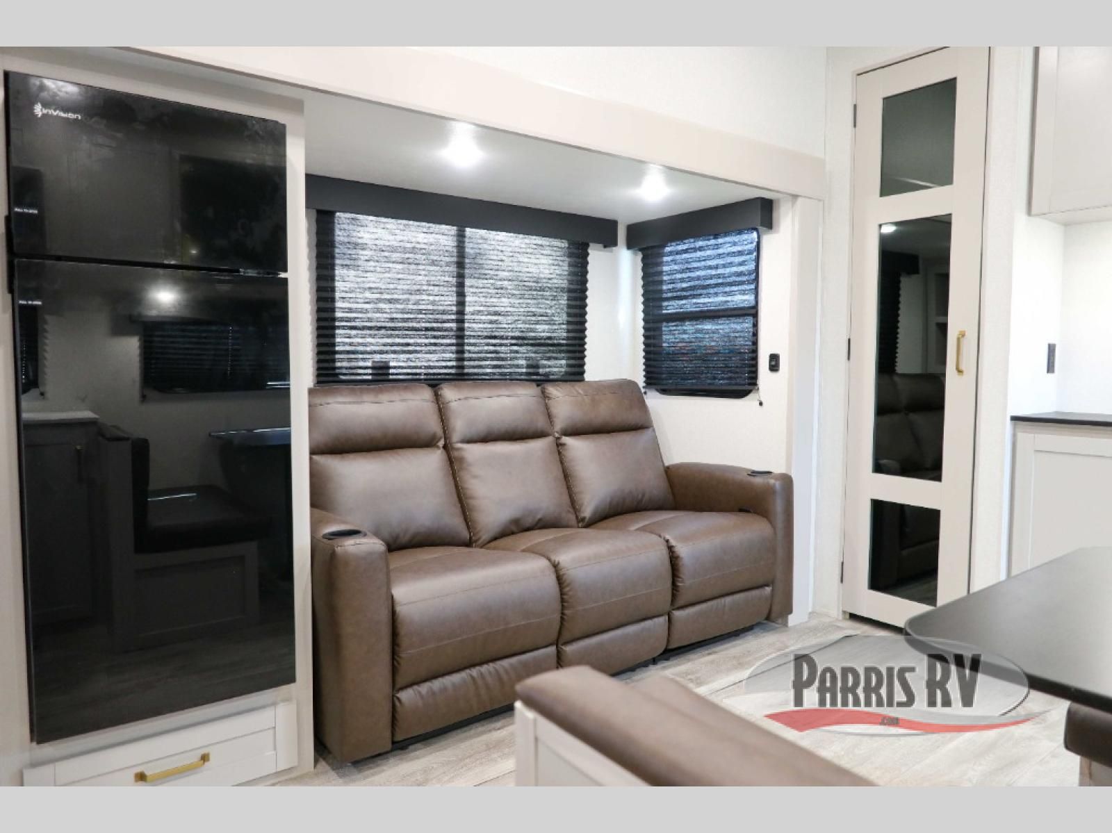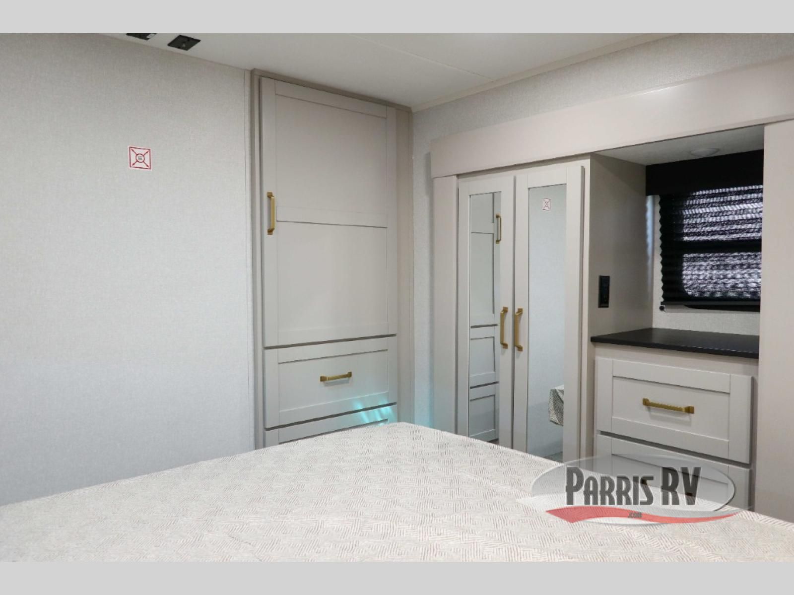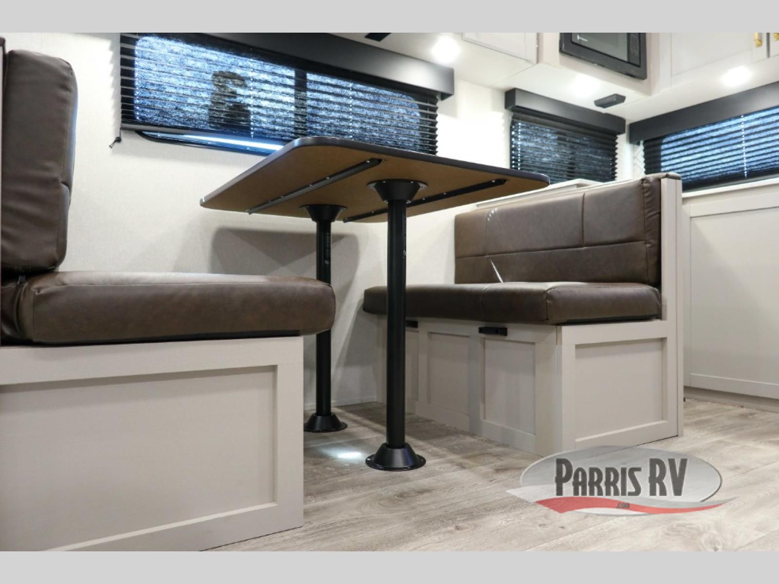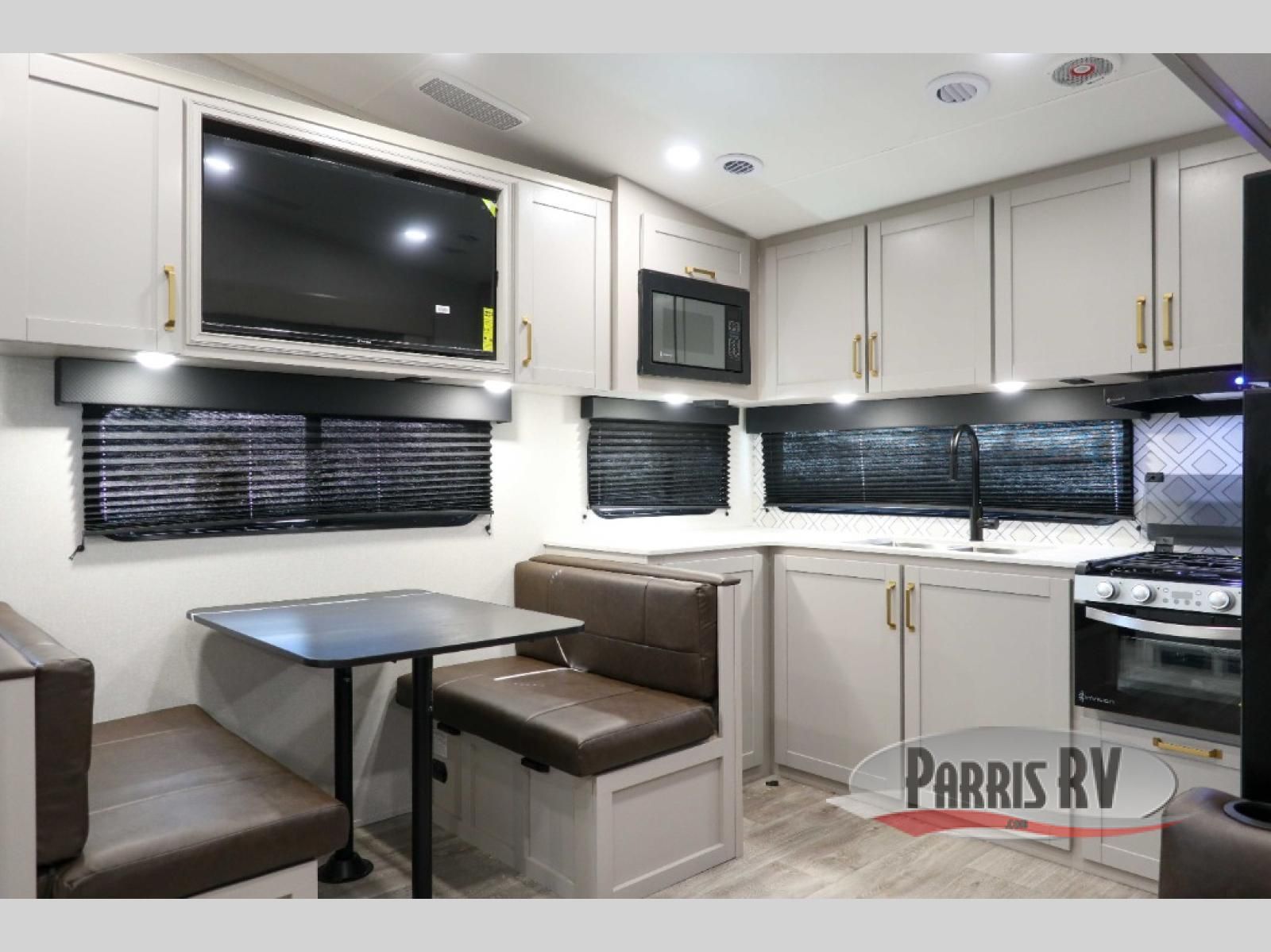 The fifth wheel you were waiting for! The spacious rear kitchen is equipped with a three-burner cooktop, microwave, booth dinette, 12V refrigerator, and sink, providing ample space for meal preparation. Overhead cabinets and a pantry provide ample storage for cookware, dishes, and other essential kitchen items. The living area features a trifold sofa, perfect for relaxation and entertainment. The full bathroom's thoughtful design ensures that everyone has their own space, and the front bedroom is a retreat from the world, featuring a plush queen bed, a spacious wardrobe, and a closet.