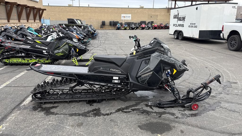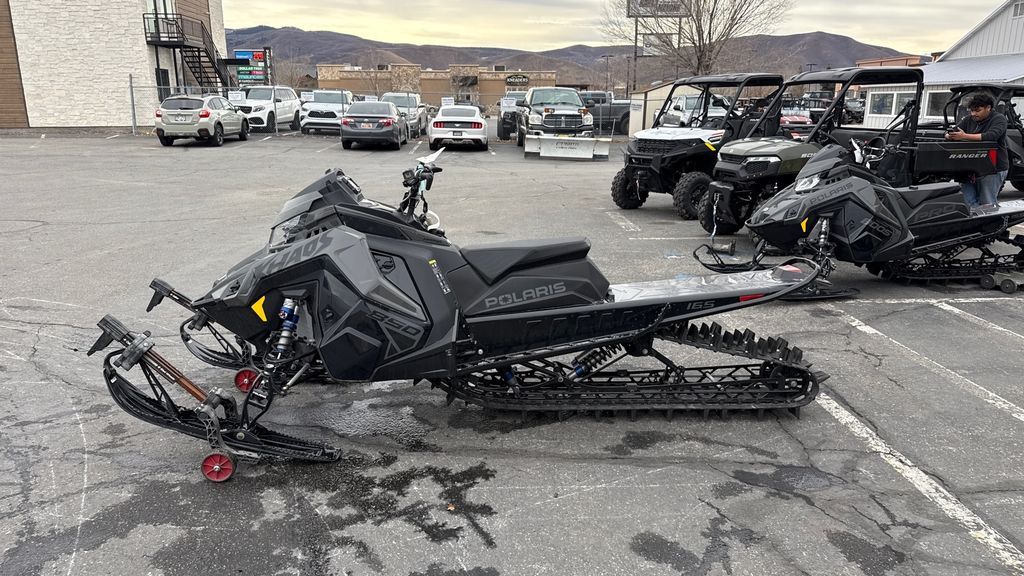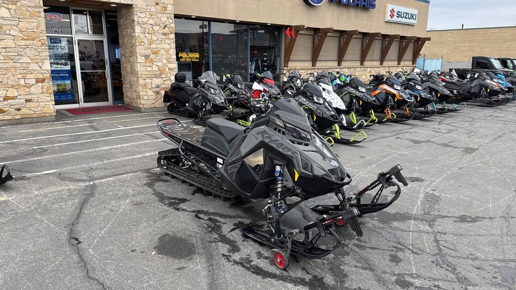 2025 Polaris® 850 RMK KHAOS 146 Shadow Gray / Gloss Black UNMATCHED FUN FACTOR IN ANY TERRAIN. The RMK Khaos delivers a wild child attitude, dynamic and agile performance. Features may include: THE BEST MOUNTAIN SLED JUST GOT BETTER - AND EVEN LIGHTER The RMK Khaos delivers transfer and traction for a wild ride. 2025 Boost and 9R RMK Khaos models are up to 6.5 lbs. lighter and have a redesigned throttle system, 1" lower seat, improved running board clean-out, and a lightweight headlight for improved connection and control to deliver the best RMK experience yet. Rider First Design. Effortless Control. The Matryx RMK platform includes a narrow seat, tank and console that provide improved rider connection to the sled while the narrow bodywork enables more agility and less drag in the snow. The new seat design and running boards further improves rider mobility on the sled while the new throttle system helps you feel connected to the sled on every ride. Float. And Fly. The RMK Khaos Rear Suspension features geometry that provides transfer and traction for light, playful handling, along with the best response and control in all riding zones. Available in 146, 155 and 165 lengths. Choose Your Power. Three engine choices from the Patriot Family to fit your riding style. Choose the legendary durability and relentless acceleration of the Patriot 850, or the Factory Mods… the ultra-responsive Patriot 9R or turbocharged Patriot Boost. PURPOSE-BUILT RIDE & HANDLING FOR ALL-MOUNTAIN When we build a sled, we build it to be the best sled for each unique riding style, not simply a different sticker or name. Every part is scrutinized to deliver what you need as a rider. Ultimate Control The RMK Matryx Slash platform features a next-level rider interface and slashed, tapered tunnel. Combined they deliver minimized drag and maximum control. Lightning-Fast Response. Puts The Power Down. QuickDrive is the lightest drive system in the industry and produces the lowest inertia for optimum response. Choose between the 325 Series 9 Track for instant traction and forward drive in deep snow or the 275 Series 8 track for versatility and traction in varying snow conditions. Precise Steering. Confidence Inspiring. The RMK React Suspension lets riders effortlessly initiate sidehills and experience less fatigue with the most predictable ride. It includes a 36"-38" stance, a sway bar designed for predictable handling, and forged a-arms and spindles optimized for strength and durability. Big Time Shocks for Big Time Terrain. Ultra-premium Walker Evans Hi-Lo Shocks are the best of the best in extreme mountain conditions. They feature remote reservoirs for increased oil capacity to ensure all-day performance and durability, along with high and low-speed compression adjustment to dial in the ride. INDUSTRY-LEADING TECHNOLOGY Polaris sleds lead the way in technology that enhances your ride. Technology built to help you plan rides, track your group, keep your sled cool in tough conditions, and see your way from dusk til dawn. Built to Stay Cool and Light. The shortened centralized cooling system on the RMK Matryx Slash platform features reduced dry weight and delivers improved cooling capability while reducing snow and ice build up. Reversible scratchers will help to keep your Patriot power running within spec.