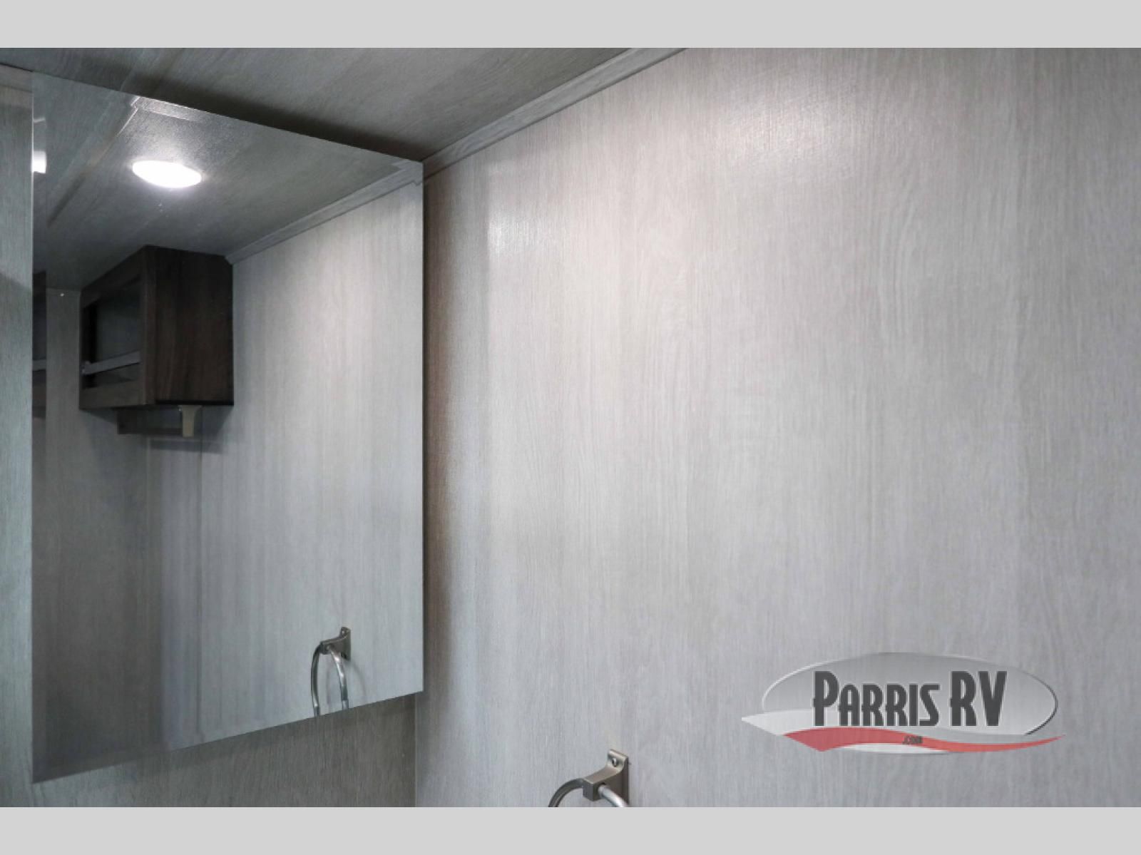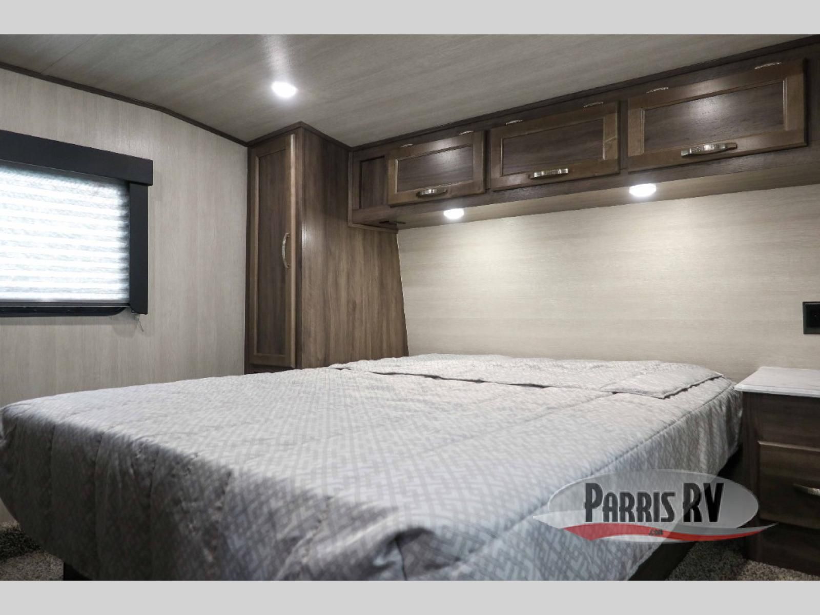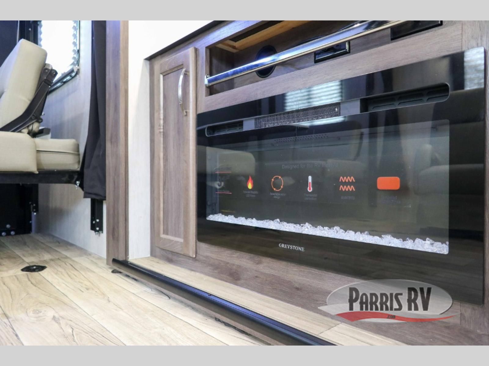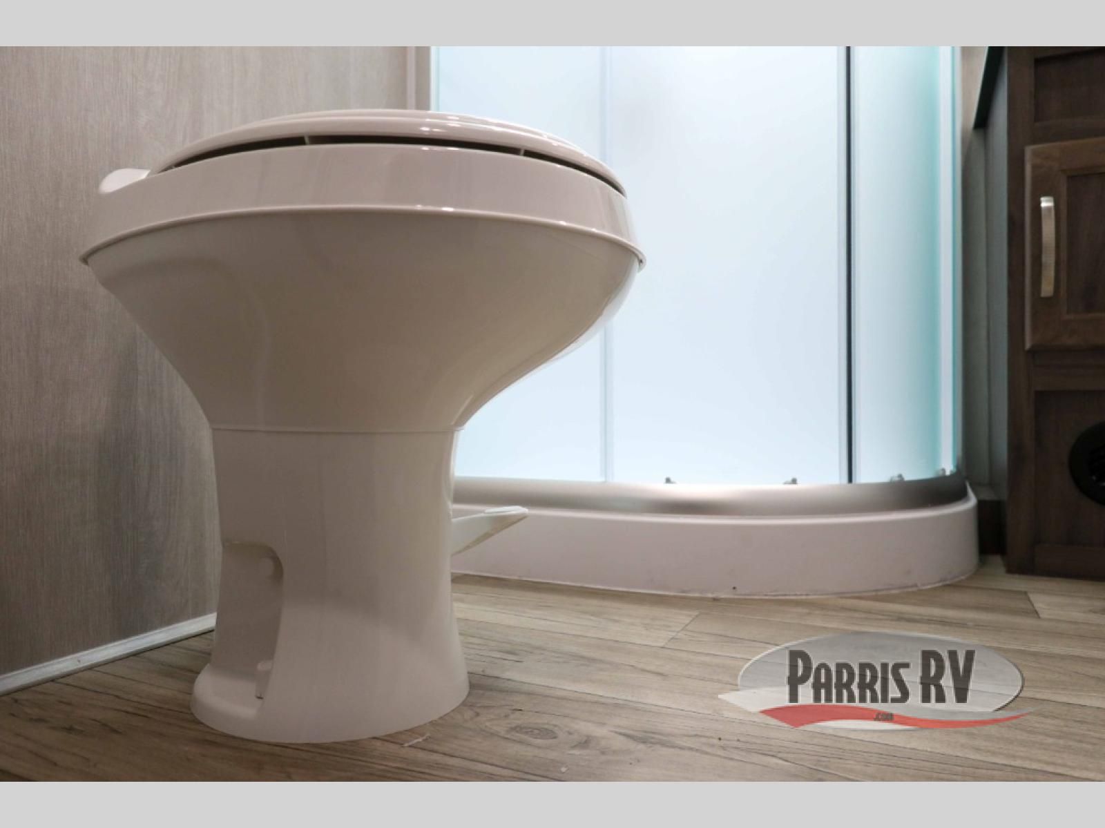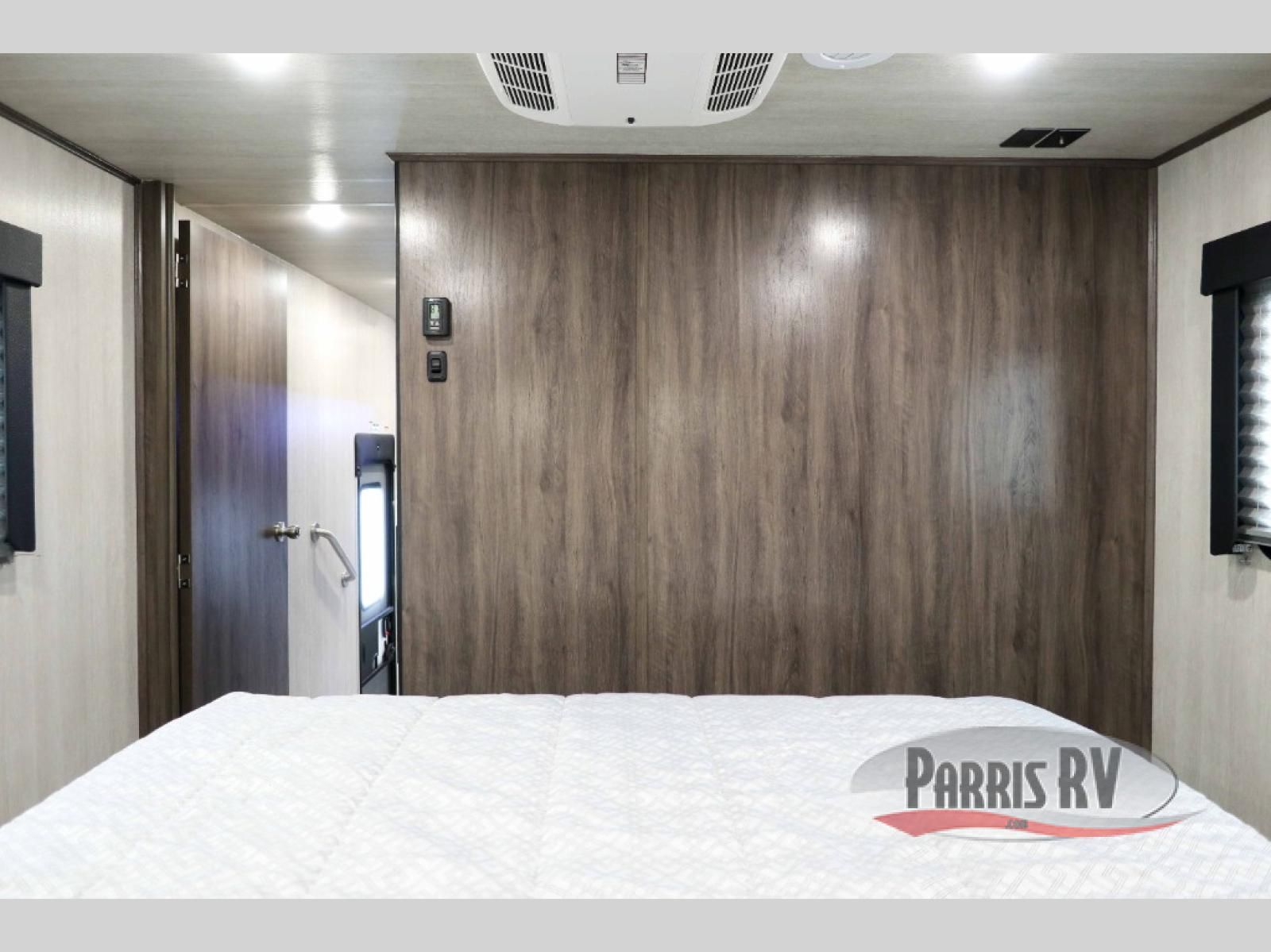 This toy hauler is ready for adventure when you are! There are two swivel/rocker chairs with a table and picture window where you can enjoy your coffee at each morning. The entertainment center slide out also includes a fireplace and pantry to keep dry goods. A 7' laminated ramp door will make it easy to unload your toys, and there is an opposing rear power dinette in the garage area that will provide more sleeping space for guests. The full kitchen and bath are sure to come in handy when you're camping all weekend, and you'll love having a private bedroom up front, complete with a queen bed, nightstand, and a dresser!