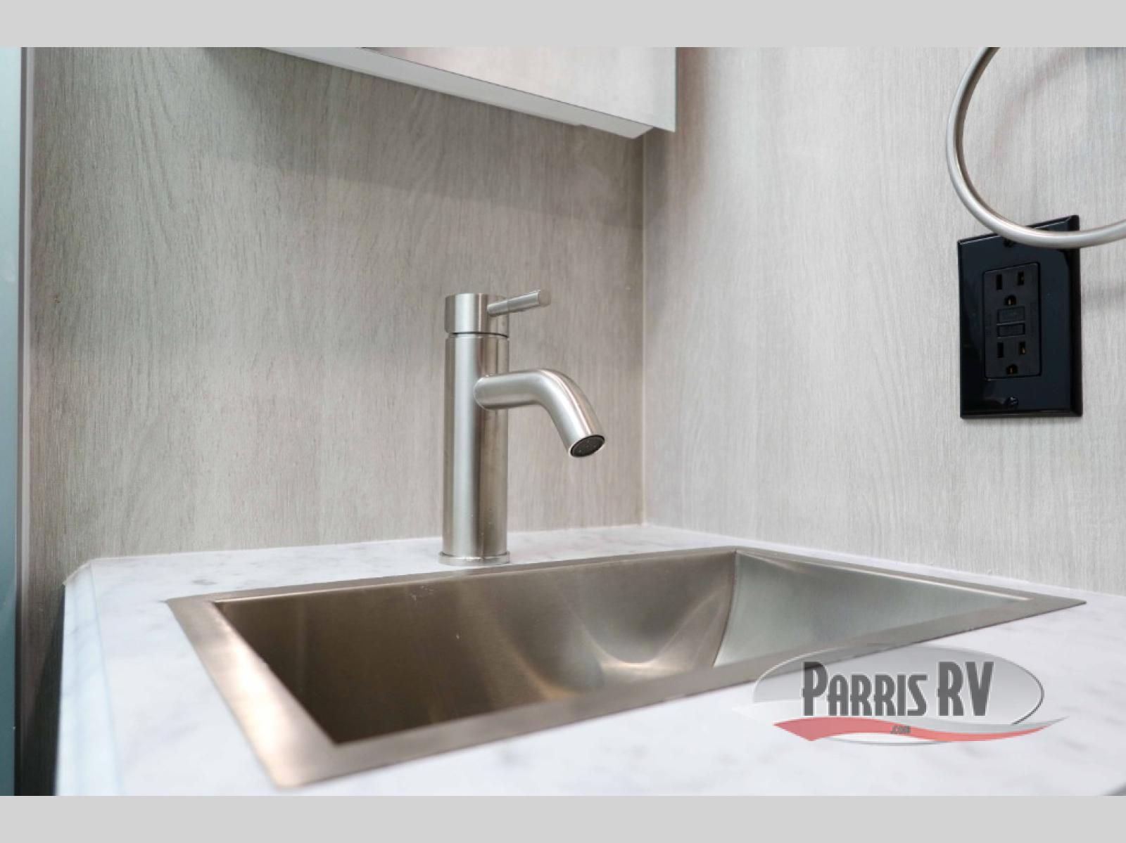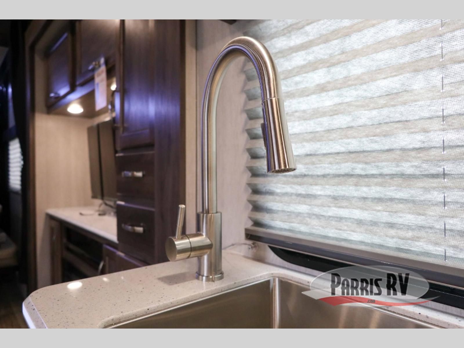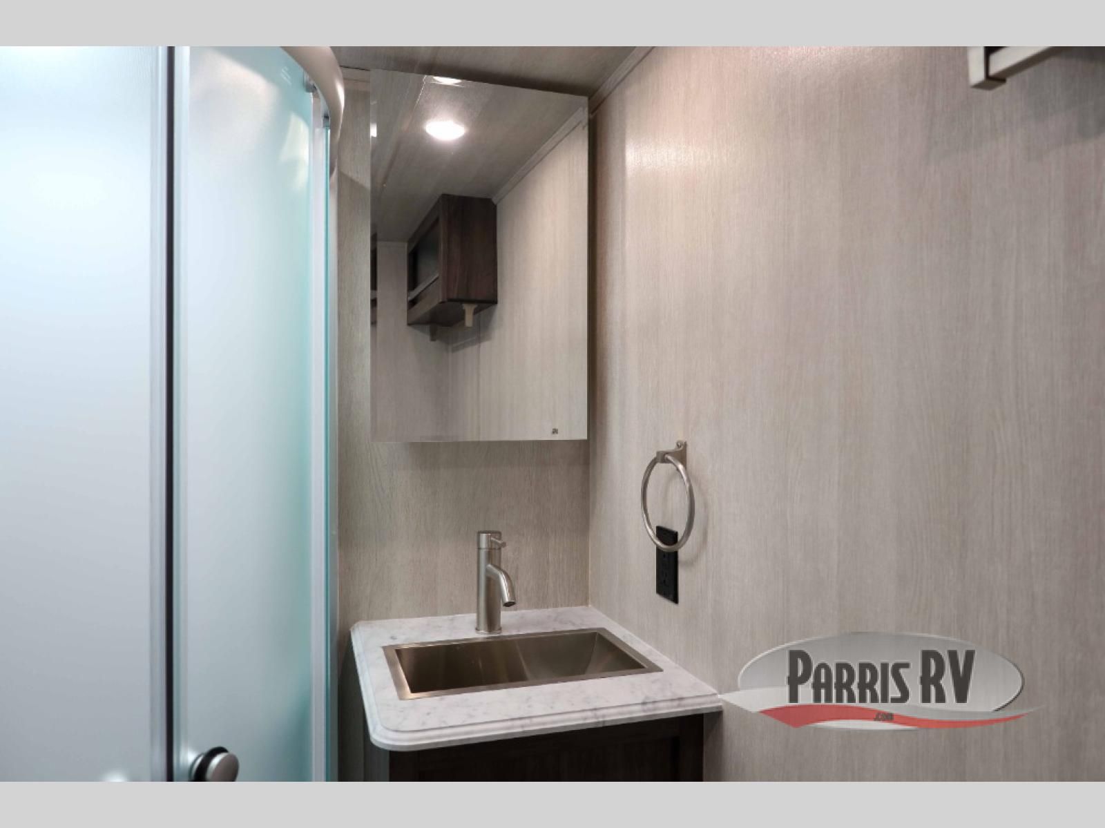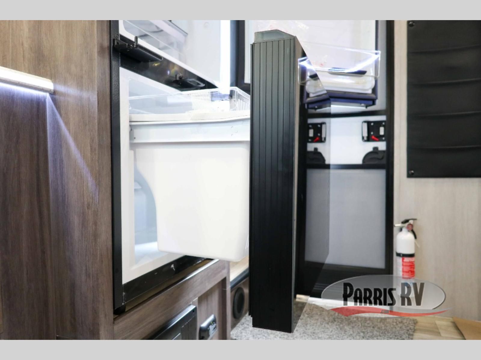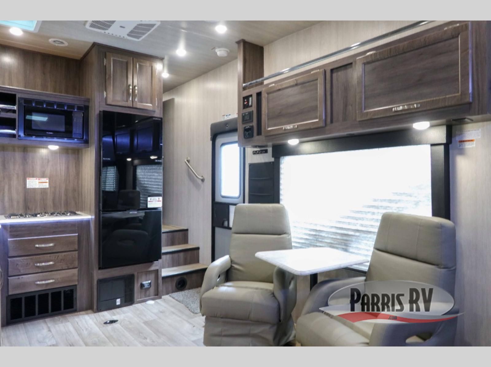 Your camping life is going to be a blast with the Genesis Supreme Vortex toy hauler! These work horses get the job done but also make it fun. You will be able to use the 40-gallon fuel station to gas up your toys when you come back from the trails, and the power awning with LED lights will give you protection as you use the exterior features. The 16" deluxe aluminum alloy wheels will get you to and from your destination with confidence, and the 30,000 or 35,000 BTU furnace will ensure that you don't freeze while you sleep on cool nights. You can keep power flowing with the 4.0kW generator with transfer switch, and you'll also enjoy the function and the style of the solid-surface countertops in the kitchen.