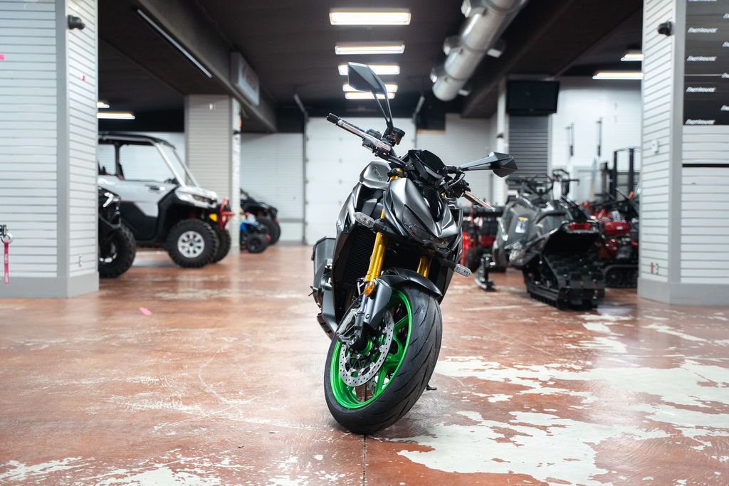 The Z1100 is the pinnacle of Kawasaki's unique Sugomi™ performance and styling philosophy condensed into our largest-displacement supernaked Z model, taking its rightful place as the new leader of Kawasaki's naturally aspirated Z family. This crouching predator is ready to strike with a torquier 1,099cc engine combined with an impressive suite of advanced rider support technologies appealing to performance-focused and sport-minded riders who are looking to experience the ultimate in excitement and sensory stimulation. FEATURING: FIERCE AND INTENSE SUGOMI™ DESIGN NEW 1,099cc LIQUID-COOLED IN-LINE 4-CYLINDER ENGINE NEW IMU-EQUIPPED ELECTRONIC RIDING SUPPORT TECHNOLOGY WITH ADDITION OF ELECTRONIC THROTTLE VALVES (ETV) NEW DUAL-DIRECTION KAWASAKI QUICK SHIFTER (KQS) NEW 5-IN TFT COLOR INSTRUMENTATION WITH LEAN-ANGLE INDICATOR NEW SMARTPHONE CONNECTIVITY VIA RIDEOLOGY THE APP MOTORCYCLE† WITH AVAILABLE VOICE COMMAND AND TURN-BY-TURN NAVIGATION