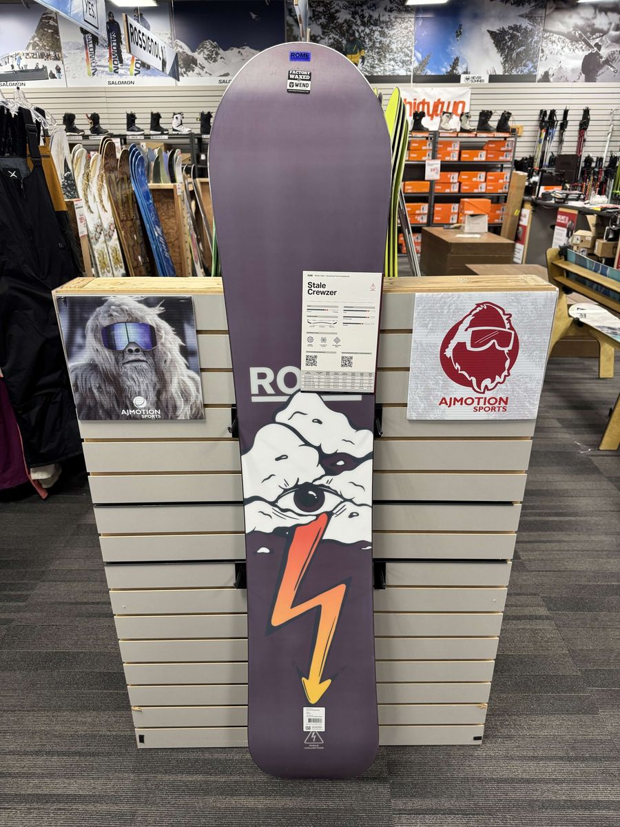 Shop online or in-store, all items can be purchased at ajmotion.com and shipped right to your door! Condition: Like New – Looks and feels nearly unused with minimal or no signs of wear. Topsheet Condition: Like-New – Nearly flawless with minimal or no marks. Base Condition: Like-New – Smooth, freshly tuned base with no visible damage. Edge Condition: Like-New – Sharp, clean edges with no rust, dings, or wear. Specs: Year: 2026 Brand: Rome Model: Stale Crewzer Type: Snowboard Size: 164CM About AJ Motion Sports: Aspen Plaza 867 East 9400 South, Sandy, UT 84094 Stop by for unbeatable deals! Feel free to call us at 385-262-3644 for more info. Reliable Used Gear Find hidden gems in our constantly updated collection of used rental gear, including skis, snowboards, boots, bindings, and poles. Check back often—new arrivals drop regularly! Savings on New Gear Get deals on the essentials, from gloves and boots to facemasks, helmets, clothing, goggles, and flat skis.