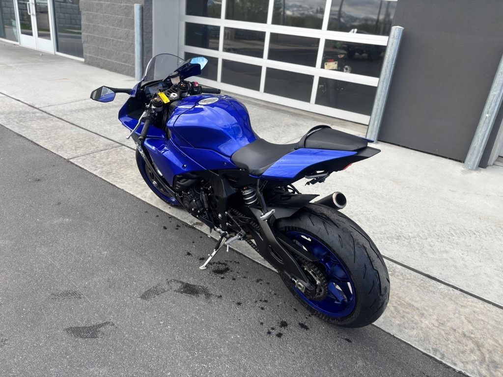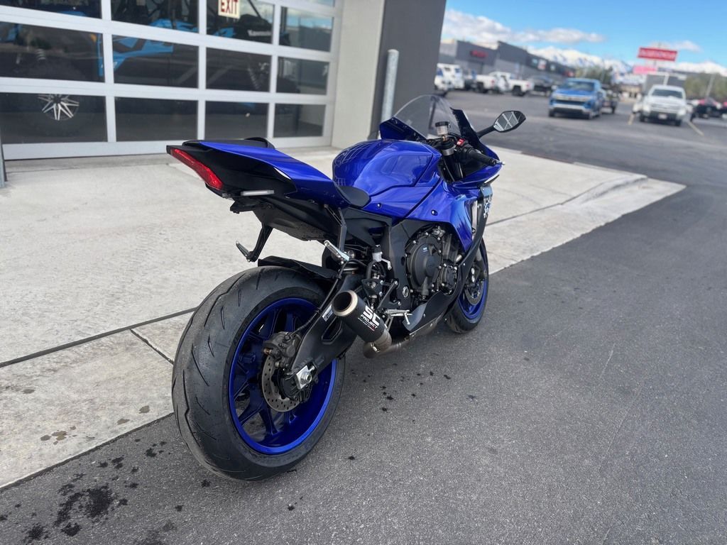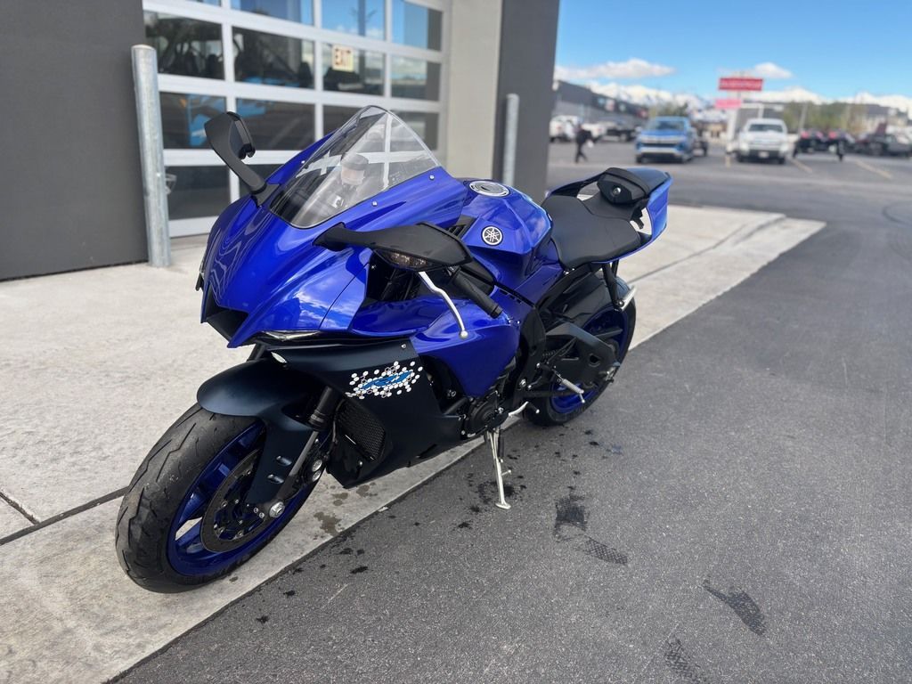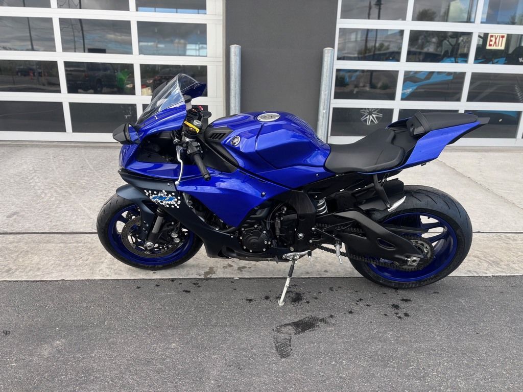 2023 Yamaha YZF-R1 R HISTORY. YOUR FUTURE. WE R1. Featuring next-generation R-Series styling, sophisticated electronic control, supersport braking and suspension performance and a high-performance crossplane engine. Features may include: TOP FEATURES MotoGP®-Derived Crossplane Crankshaft Engine The 998cc inline-four-cylinder engine features Yamaha’s exclusive crossplane crankshaft technology derived from Yamaha's YZR-M1 MotoGP® race bike. Every aspect of this unique engine is built to thrill. ENGINE Cutting-Edge CP4® Engine The R1’s 998cc inline-four-cylinder engine features Yamaha’s exclusive crossplane crankshaft technology derived from Yamaha's YZR-M1 MotoGP® race bike. By equalizing inertial forces at the crankshaft, the CP4 motor delivers a direct feeling of linear torque, giving the rider the ultimate connection between throttle grip and the rear wheel. High-Output Engine Technology Titanium connecting rods use Yamaha’s precision fracture-split method to ensure maximum reliability with minimal weight. Combined with titanium intake valves and forged pistons, these lightweight parts help achieve the CP4’s high redline and over-rev capability. The cylinder block is also offset from the crankshaft, reducing friction loads on the pistons and bores. CHASSIS/SUSPENSION Brake Control (BC) System with ABS Developed on racetracks around the world, Yamaha’s Brake Control (BC) System works with an Anti-lock Braking System (ABS) to minimize brake slip under aggressive braking or on less than ideal surfaces. The adjustable BC System uses the IMU to provide progressive brake force intervention as lean angle increases which boosts rider confidence when braking mid-corner. ADDITIONAL FEATURES Sleek Styling The YZF-R1 features beautifully integrated bodywork and sleek, stylish lines which create an unmistakably aggressive, aerodynamic profile. ELECTRONICS Ride-by-Wire Throttle System The R1 features a ride-by-wire Yamaha Chip Controlled Throttle (YCC-T®) system built around the Accelerator Position Sensor with Grip (APSG), which eliminates the throttle cables. As before, YCC-T precisely senses throttle input by the rider and actuates the throttle valves to actively control intake volume, allowing for cutting-edge computerized engine management but in a lighter package. This model comes equipped all ready with a full system SC Project exhaust and a NRC tail tidy!