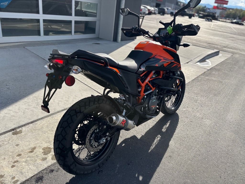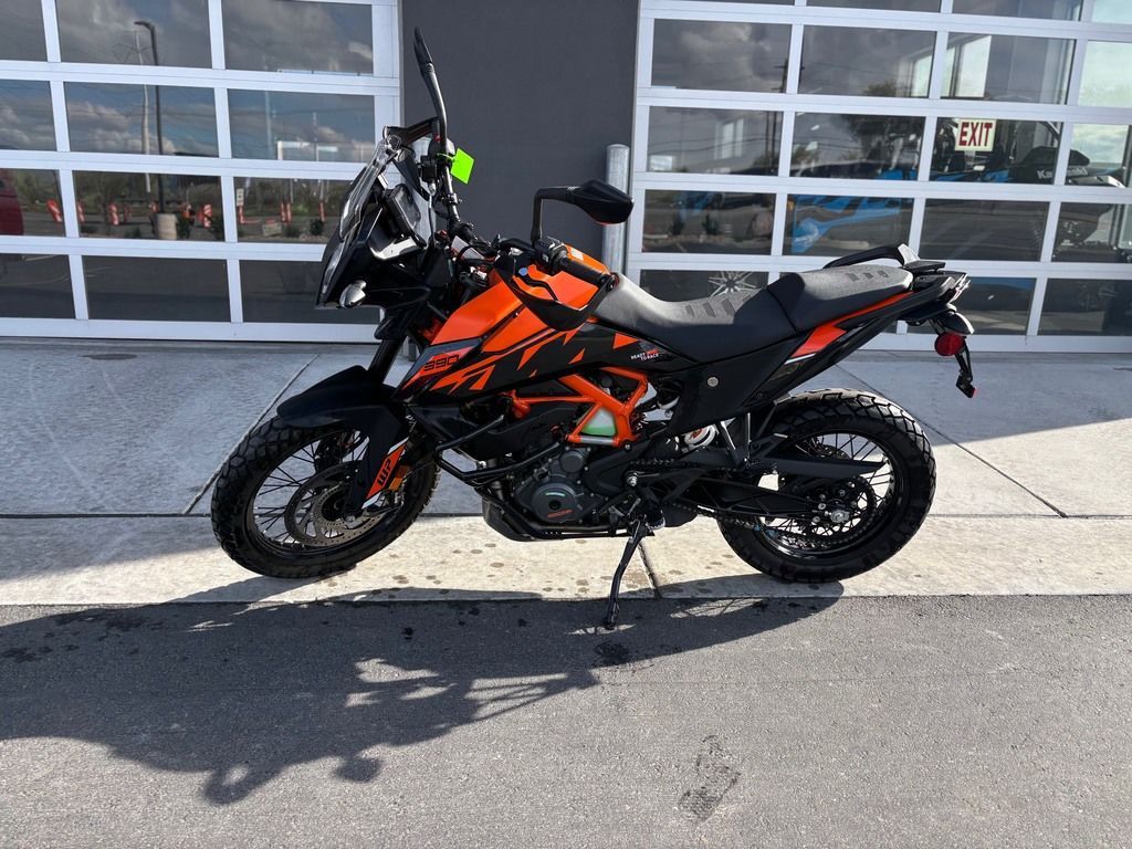 2024 KTM 390 Adventure Gone are the days when going from A to B. The 2024 KTM 390 ADVENTURE rewrites the rulebook on what the daily commute needs to be. Merging all-road versatility and proven reliability with real-world performance, not to mention adventure-ready spoked wheels, a proven 373 cc powerplant, and a class-leading chassis, the KTM 390 ADVENTURE not only seeks out new adventures - it leaves no path unexplored. Features may include: ON-ROAD CONFIDENCE Engine The KTM 390 ADVENTURE might seem small in stature, but twist the throttle and you'll awaken eager horses ready to gallop toward the horizon. Merge that with a robust 6-speed sequential gearbox, optional QUICKSHIFTER +, and carefully tuned gear ratios, and the KTM 390 ADVENTURE quickly charges along with a smooth, uninhibited power spread for any terrain. HIT THE HARD TRACK Wheels The KTM 390 ADVENTURE boasts heavy-duty spoked wheels at each end, making it extremely ready to tackle the toughest of dirt trails. No more worries about cracked or chipped rims, these tube-type spoked setups perfectly compliment the offroad-orientated tires to provide unmatched confidence when charging off into the wilderness. SUPERIOR CONTROL Bodywork The KTM 390 ADVENTURE features distinctive KTM-style bodywork and graphics, providing excellent ergonomics and an aggressive look inspired by KTM's vast Rally racing heritage. This can be seen in everything from the headlight mask to the low front fender. The tank spoilers and rear side panels are slightly wider than the seat for optimized control when standing on the pegs, while the shape of the fuel tank is optimized to offer freedom of movement when tackling tricky technical terrain. A robust engine guard also makes its intentions known by protecting the engine and exhaust when venturing off the tarmac into the dirt. ALL-ROUND COMFORT Frame KTM 390 ADVENTURE features an ultra-lightweight, yet extremely stable trellis frame - just like the multi-championship winning KTM 450 RALLY. It provides the backbone to the KTM 390 ADVENTURE and is a major element that accounts for its nimble handling, and forgiving the balance of flex and stiffness. This, combined with a wheelbase of 1430 mm and a 63.5-degree steering head angle, means it was built to tackle the dirtiest of trails in the great outdoors.
