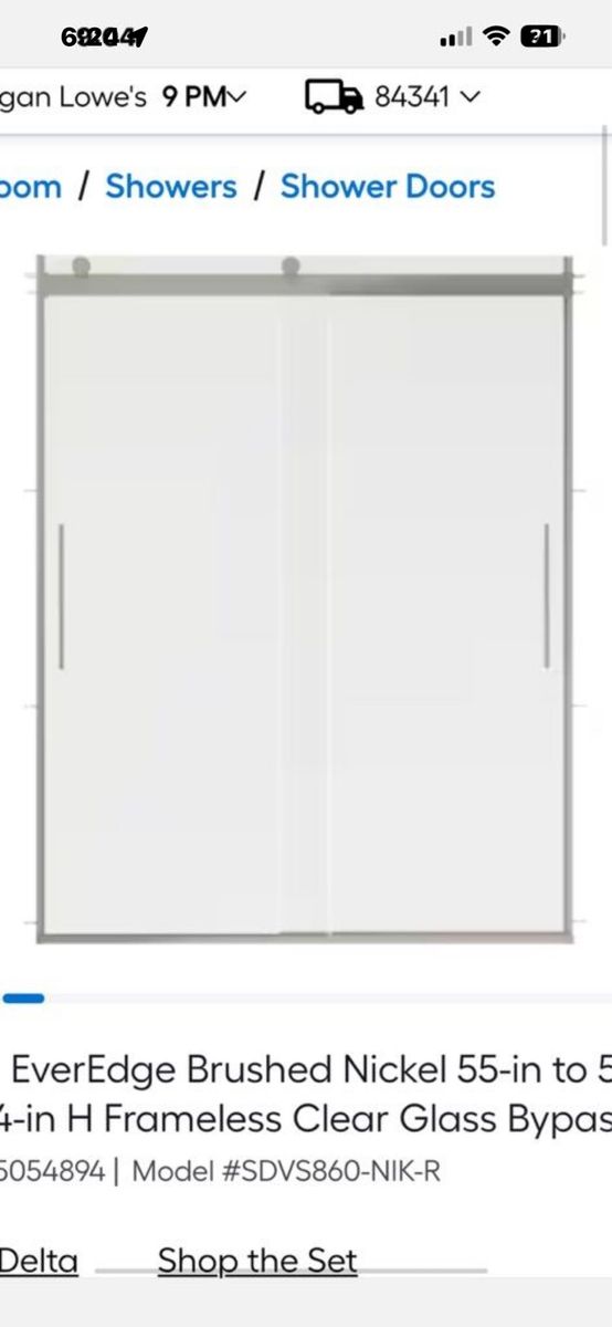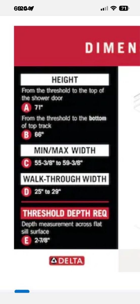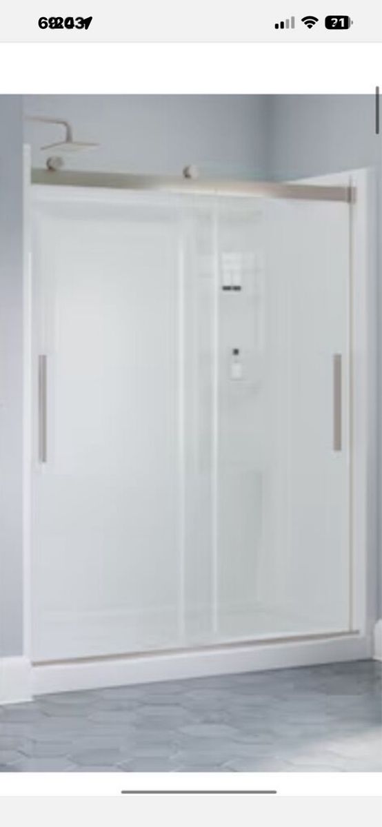 The EverEdge shower door draws on the precision and crisp forms of modern architecture. Clean lines, slim vertical handles, and plenty of transparency lend a bright airiness to your bathroom. Upgraded 8mm glass panels provide a substantial feel with a comfortable slide. Spot Guard technology keeps your glass sparkling. This proprietary coating resists water spots and other unsightly build-up to make cleaning effortless. UPGRADED GLASS: 5/16-in (8 mm) certified tempered glass shower door feels sturdy but moves smoothly KEEP THE SHINE: Water-repelling Spot Guard coating resists hard water stains, soap scum, and lime scale for a quicker clean and lasting shine SMOOTH GLIDE: Center track guide comes standard on all doors for smoother, quieter slide FIT: Requires opening width of 55-3/8-in minimum to 59-3/8-in maximum (140.7-150.8 cm) and 71-in (180.3 cm) threshold to top of door; Offers walk-in width of 25 to 29 in (64-74 cm), 66-in height threshold to the bottom of the top track ATTENTION: Studs required 2-1/2-in from front surface of the sill for support, minimum threshold (sill) depth: 2-7/8-in (7.2 cm), minimum height clearance (sill to ceiling): 73-in (185 cm); design allows for out-of-plumb conditions up to 3/8-in CLEAR GLASS: Crystal-clear glass gives the most open and spacious feel STYLISH HANDLE: Vertical handles provide a streamlined look WHAT’S INCLUDED: All hardware and install instructions included.