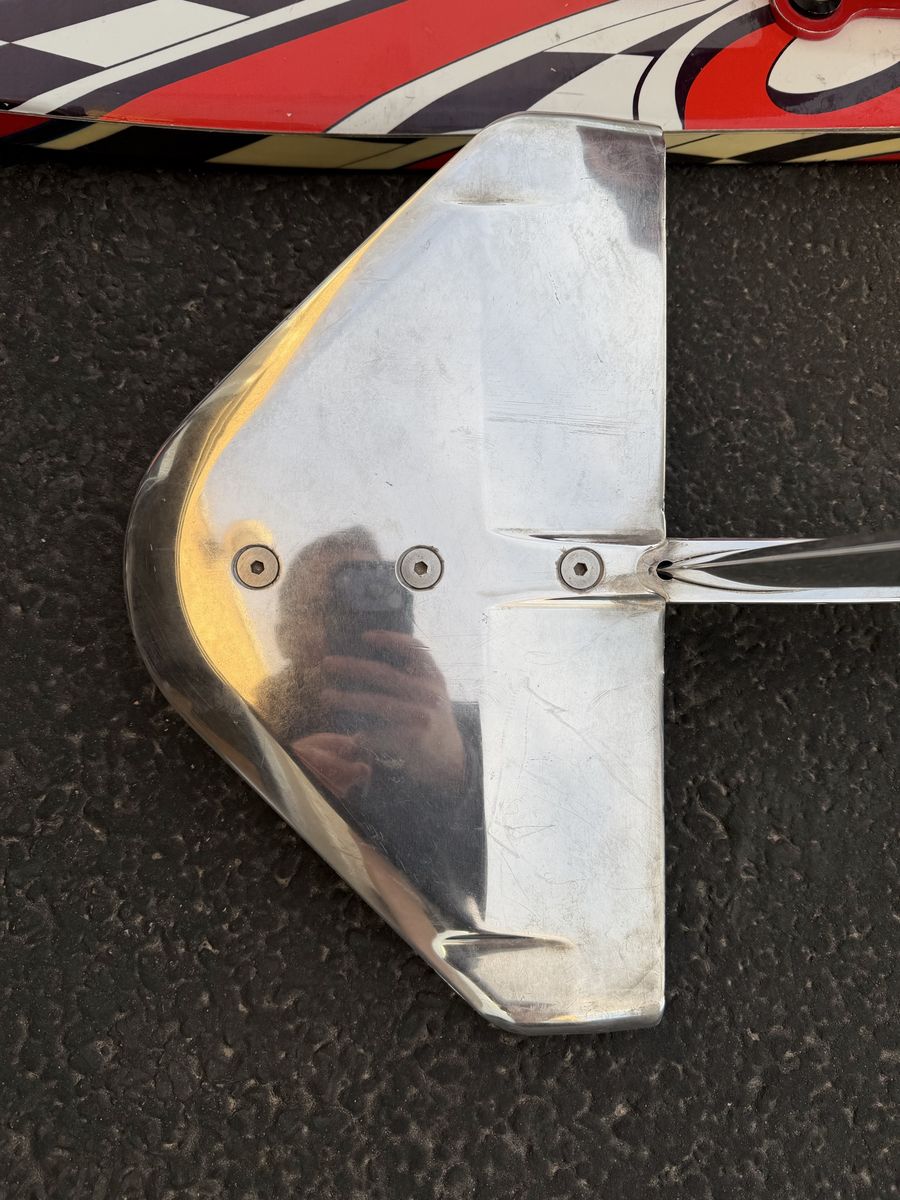 Board has a few minor blemishes. Mast and wing have a few minor blemishes, but can still mirror your reflection. Overall this is in good shape. I’m only getting rid of it because I bought a bigger one. You won’t regret this purchase.