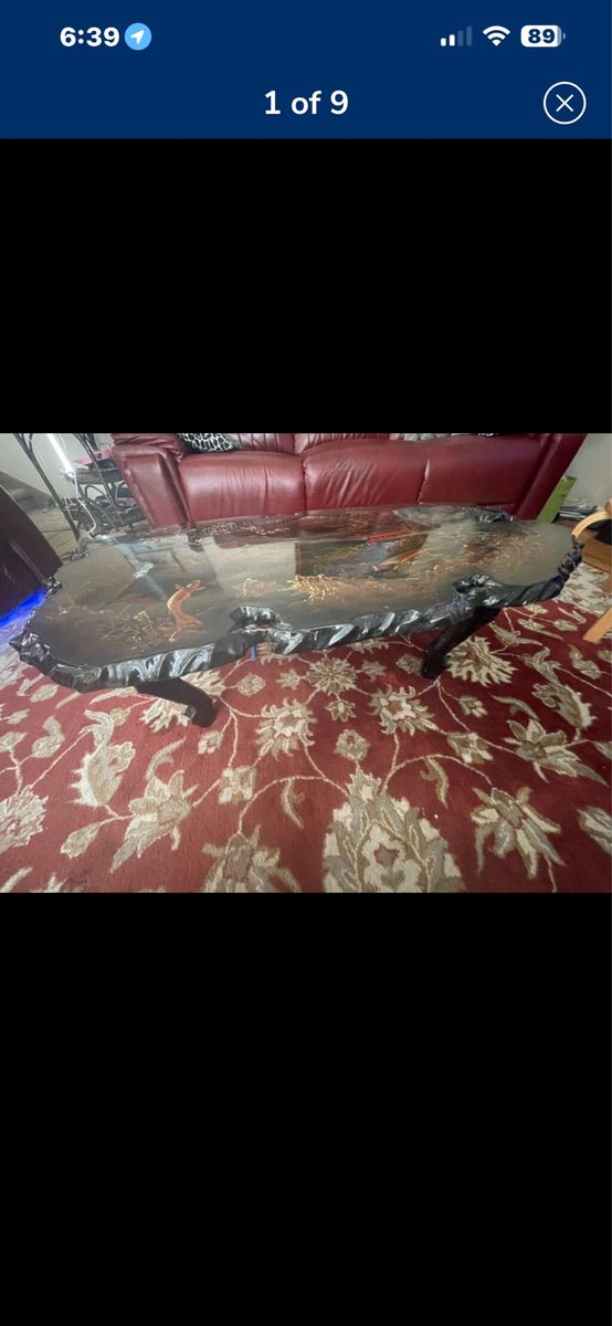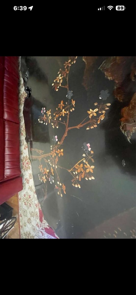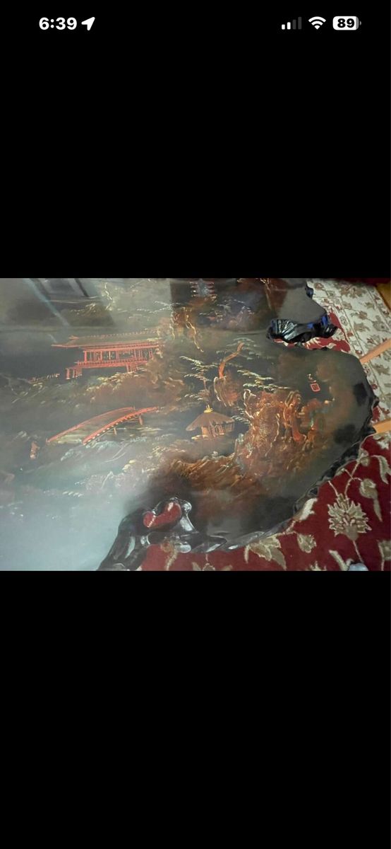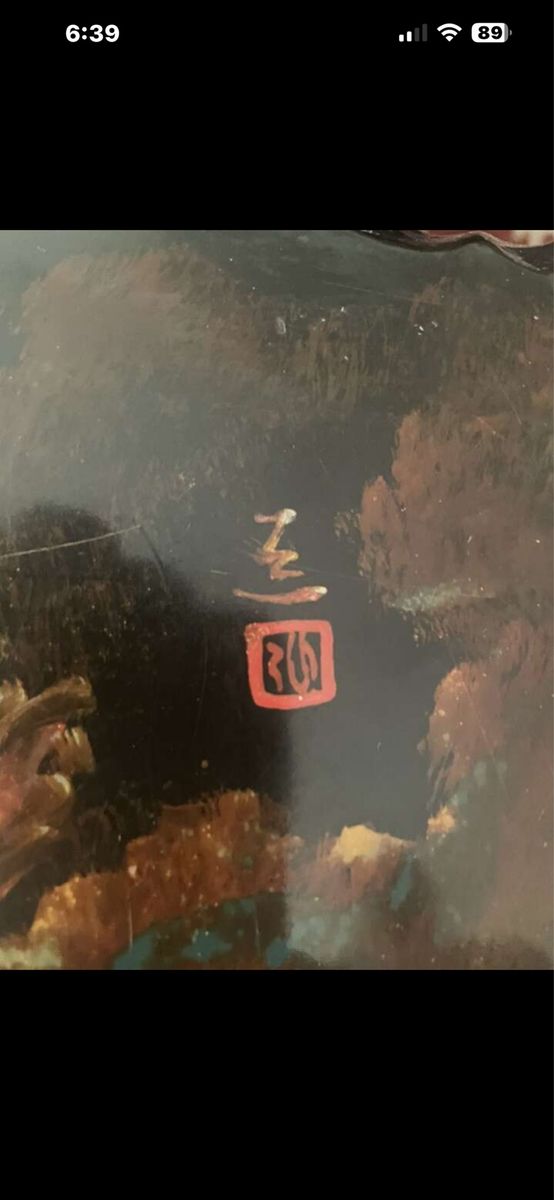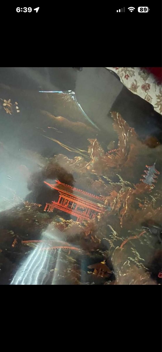 VenmoAntique black lacquered MOP Chinese or Korean very good looking and well made piece, the top is in hardwood burl slab the table has been beautifully hand painted and lacquered.