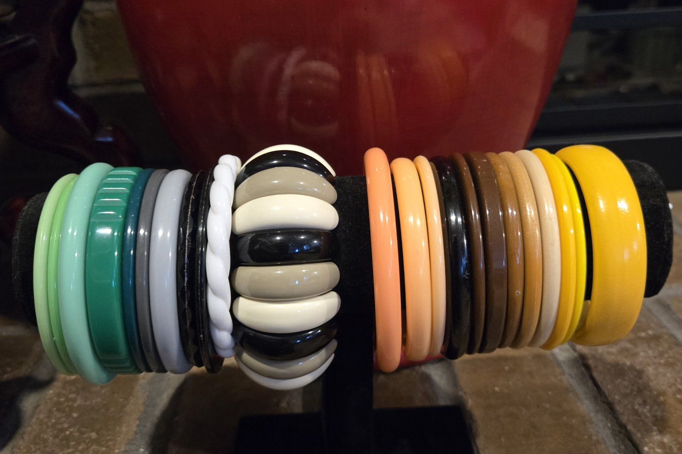 Vintage Bangle Bracelets Mixed Bold Colors and Sizes Styles Lot of 23 Preowned